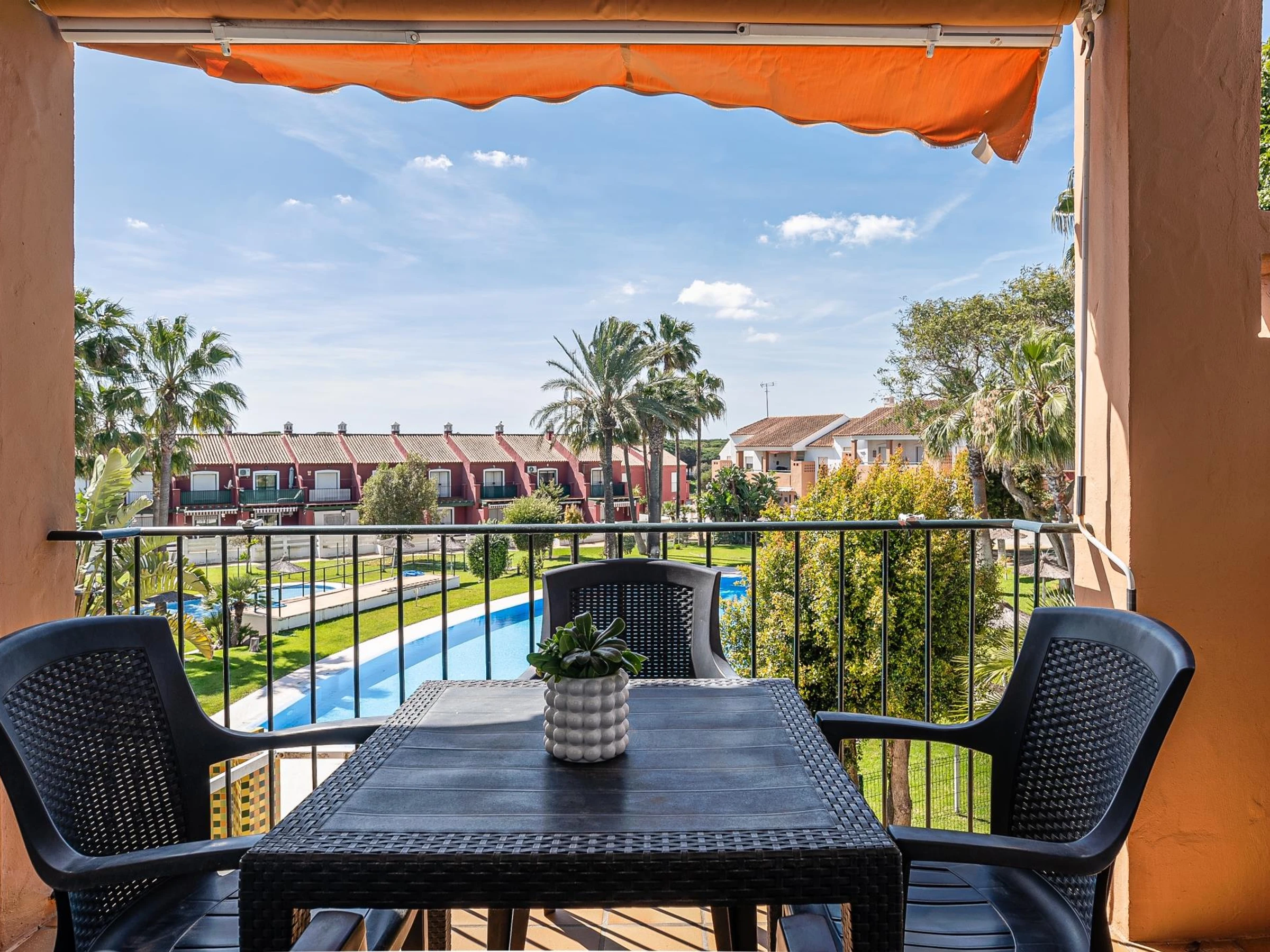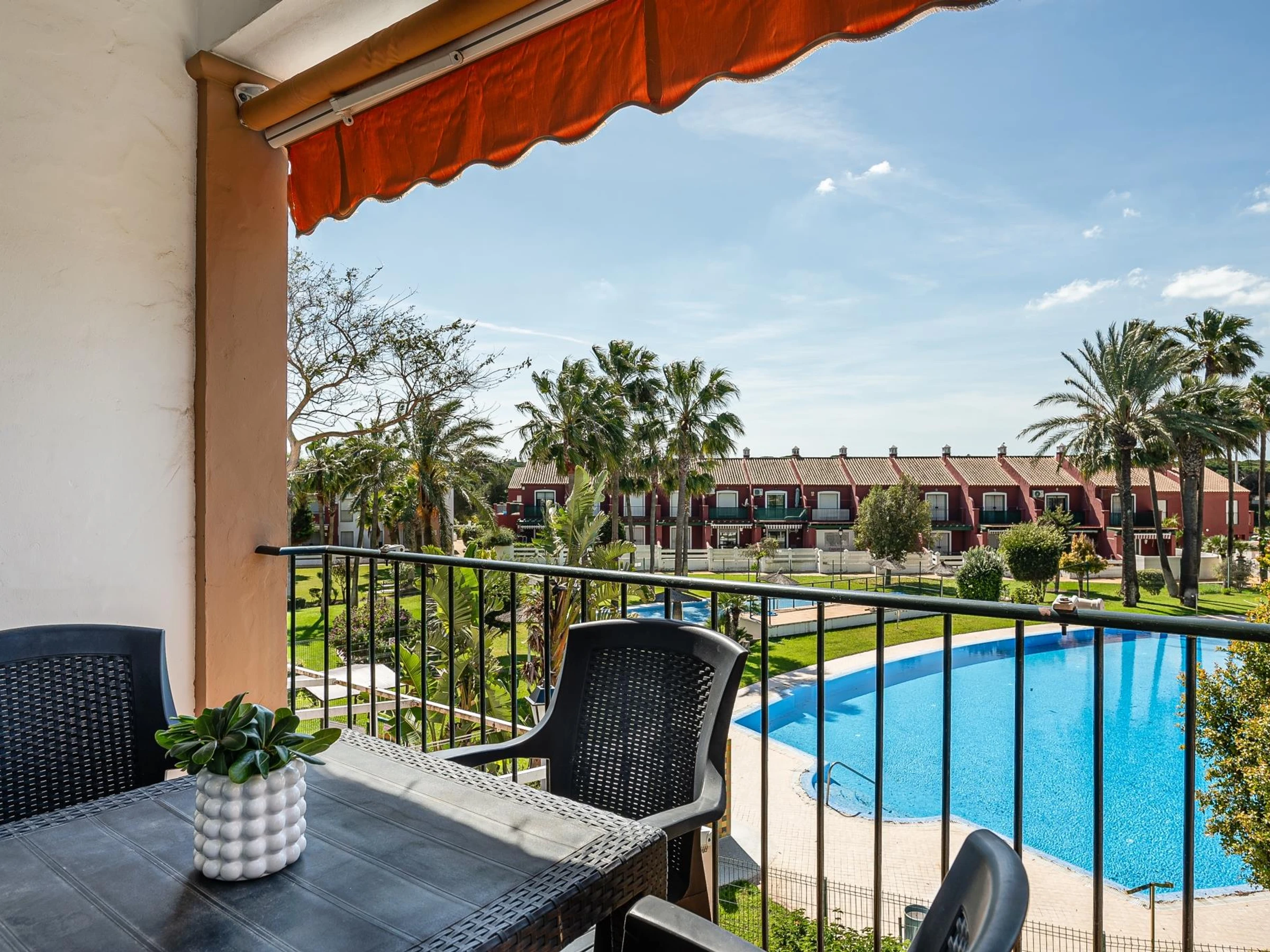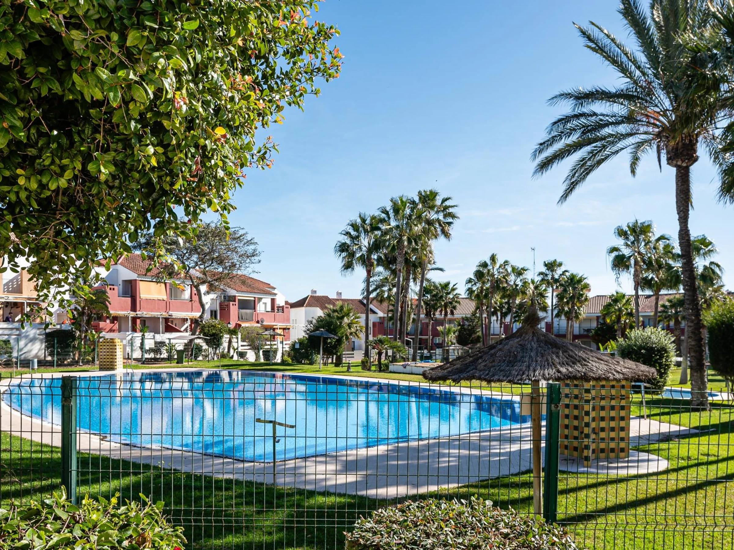 À seulement 1,5 km, vous trouverez un centre commercial animé avec des boutiques, des restaurants, des bars et des cafés ainsi que des possibilités de divertissement pour toute la famille. Explorez les trésors naturels de la région : observation des oiseaux dans les parcs à proximité, sentiers de randonnée et de vélo, ou sports nautiques comme le kayak, le surf, la plongée et la voile. Jouez au golf sur des parcours de renommée mondiale, détendez-vous dans les bains arabes ou profitez des couchers de soleil magiques sur la plage de La Barrosa avec l'imposant château de Sancti Petri en arrière-plan.