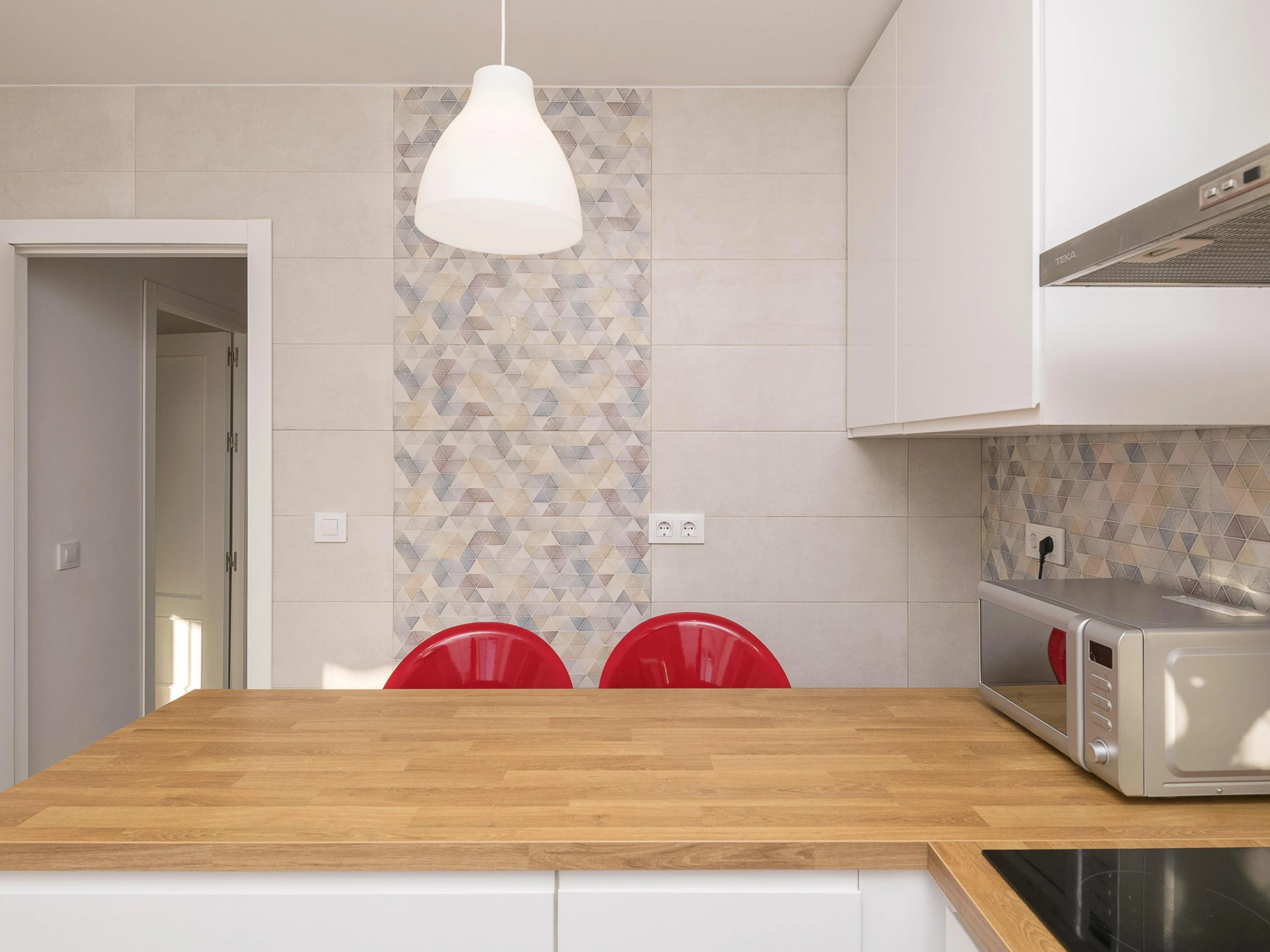 La cuisine, est équipée avec réfrigérateur, micro-ondes, congélateur, lave-vaisselle, cafetière et grille pain.