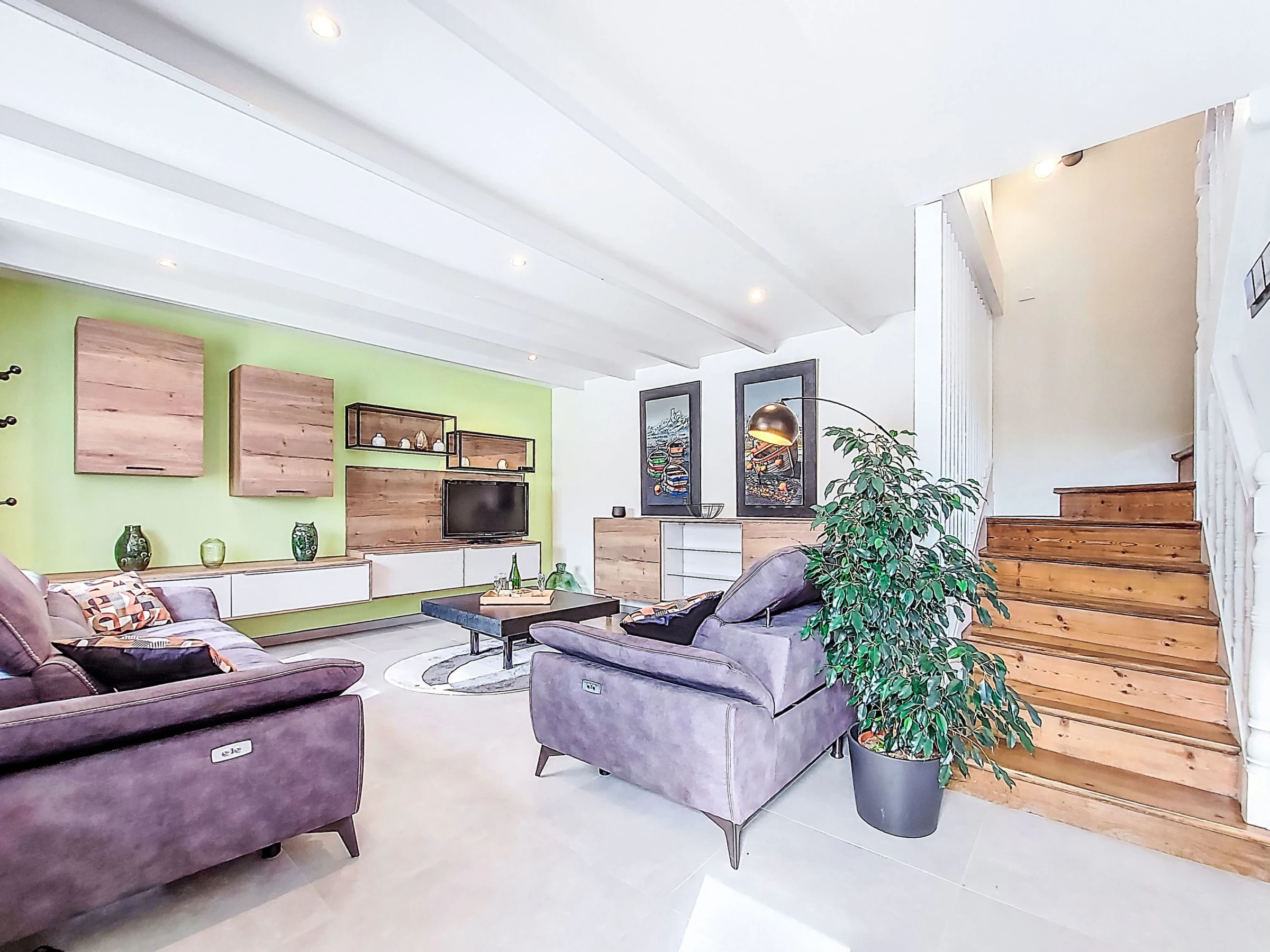 "De cap en cap", maison 5 pièces 90 m2, situation sud. Aménagement confortable et agréable: séjour/salle à manger avec TV et chaînes de TV internationales (écran plat). Cuisine ouverte (four, lave-vaisselle, 3 plaques à induction, grille-pain, bouilloire électrique, micro-ondes, congélateur, cafetière électrique, Capsules pour machine à café (Senseo) (NON INCLUSES)). Douche, WC séparé. À l'étage supérieur: 1 chambre avec 1 grand-lit (160 cm, longueur 200 cm). 1 chambre avec 1 grand-lit (180 cm, longueur 200 cm). Douche/WC. Chauffage électrique. 2ème étage: 1 chambre avec 2 lits (90 cm, longueur 200 cm). Salon. Grande terrasse 25 m2, situation sud. Meubles de terrasse, barbecue (portable), chaises longues (4). A disposition: lave-linge, sèche-linge, fer à repasser, sèche-cheveux. Internet (Connexion WIFI, gratuit). Veuillez noter: maison non-fumeur. Détecteur de fumée. Annonce d'un particulier (art 155, IV du CGI).