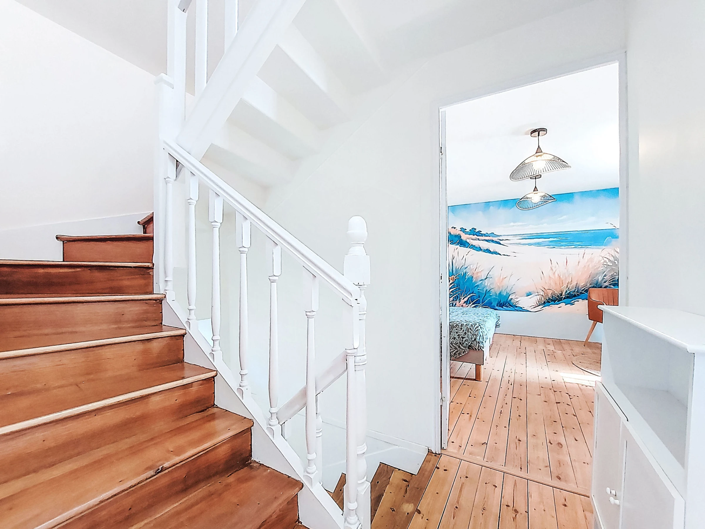 Maison individuelle "De cap en cap", rénovée en 2024. Dans le hameau de Lannuet, à 2.7 km du centre de Cléden-Cap Sizun, situation tranquille, à 1.5 km de la mer, à 5 km de la plage. A usage privé: terrain 1'000 m2, jardin avec pelouse et arbres, place de parking (pour 2 voitures) sur le terrain. Supermarché 5 km, boulangerie 2.7 km, arrêt de bus 3 km, plage de sable "Pors Theolen, Plage du Loch" 5 km. Port plaisance 12 km, ecole de surf 10 km, ecole de voile 12 km, centre équestre 6 km, chemins de randonnées pédestres depuis la maison 100 m. Attractions à proximité: Pointe du Raz, Pont Croix 13 km, Audierne, Pointe du Van 8 km, Douarnenez 25 km, Quimper 45 km. Région de randonnées: GR 34, Cap Sizun, Baie d'Audierne. Veuillez noter: voiture recommandée.