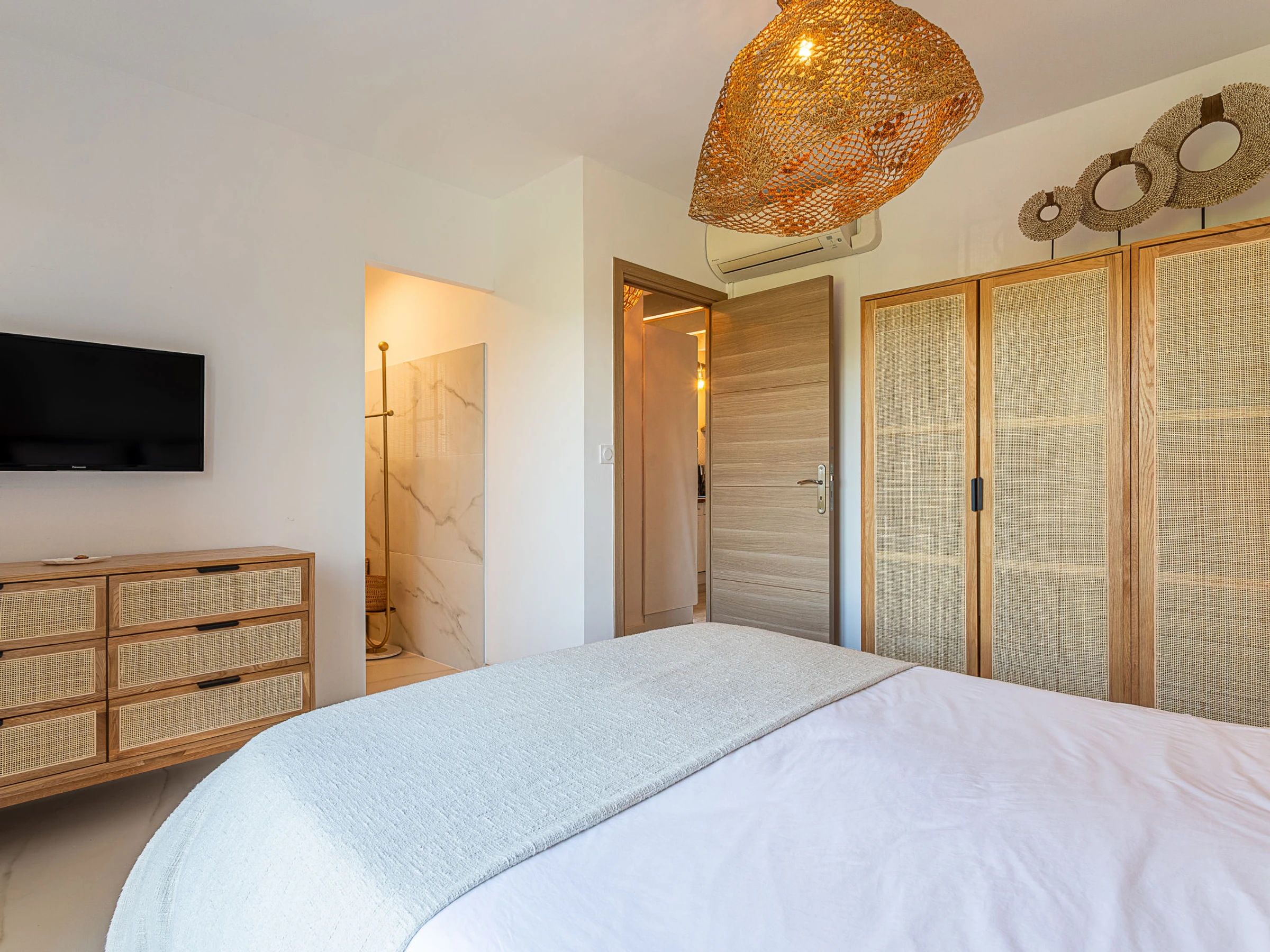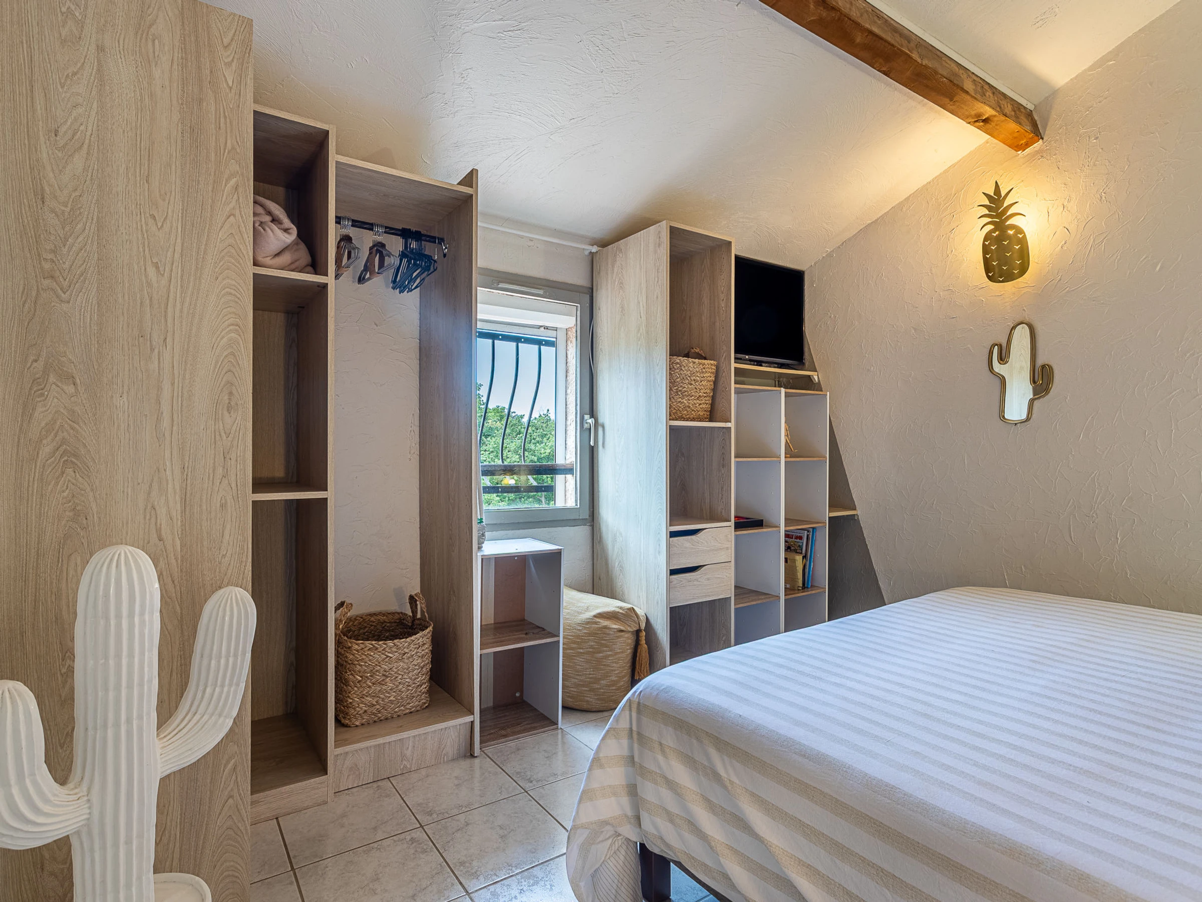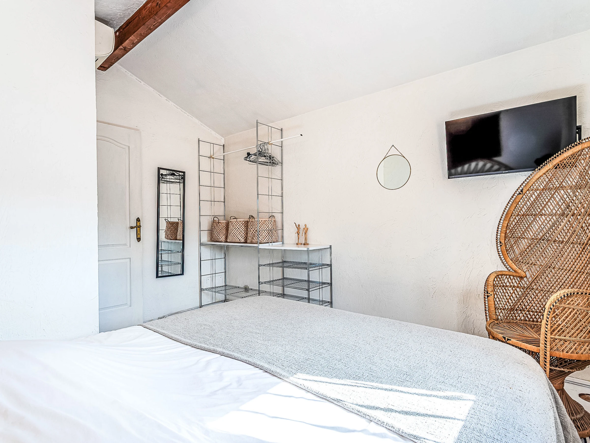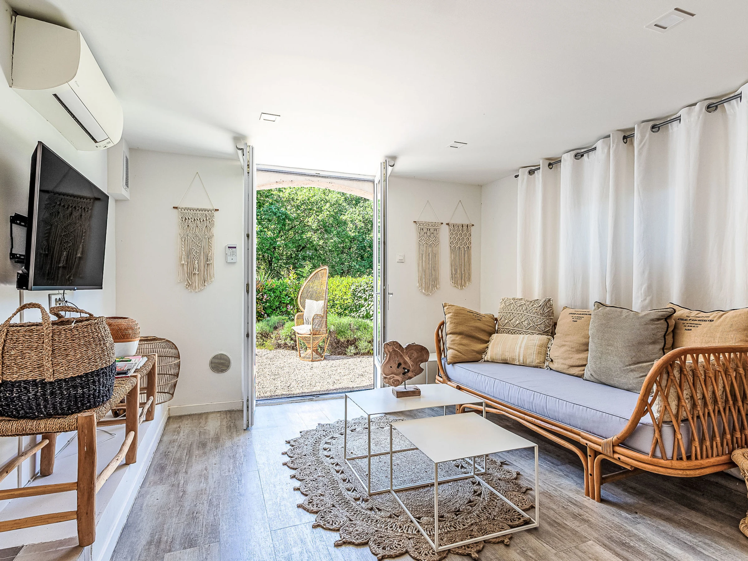 Villa 5 pièces 130 m2 sur 3 niveaux. Aménagement plaisant: séjour/salle à manger avec TV (écran plat). Sortie sur la terrasse. 1 chambre avec 1 grand-lit (160 cm, longueur 200 cm), douche et TV (écran plat). Cuisine ouverte (four, lave-vaisselle, 3 plaques à induction, grille-pain, bouilloire électrique, micro-ondes, congélateur, cafetière électrique, Capsules pour machine à café (Nespresso) (NON INCLUSES)). WC séparé. Air-conditionné. À l'étage inférieur: (escalier extérieur) Studio avec 1 grand-lit (140 cm, longueur 190 cm), TV (écran plat), air-conditionné. Sortie sur la terrasse. Petite cuisine (four, 1 plaques à induction, cafetière électrique). Sortie sur la terrasse. Bain/douche, WC séparé, double vasque. À l'étage supérieur: 1 chambre avec 1 grand-lit (180 cm, longueur 190 cm), TV (écran plat). 1 chambre avec 1 grand-lit (180 cm, longueur 200 cm), TV (écran plat). Douche/WC. Air-conditionné, chauffage à air chaud. 2 terrasses 40 m2, situation nord-ouest terrasse 25 m2 partiellement couverte, situation sud-ouest. Meubles de terrasse, barbecue, chaises longues (8). Vue sur les alentours. A disposition: lave-linge, sèche-linge, fer à repasser, chaise haute pour enfant, lit bébé jusqu'à 2 ans, sèche-cheveux. Internet (Connexion WIFI, gratuit). Place de parking (3 Voitures). Veuillez noter: maison non-fumeur. Détecteur de fumée. Annonce d'un particulier (art 155, IV du CGI).