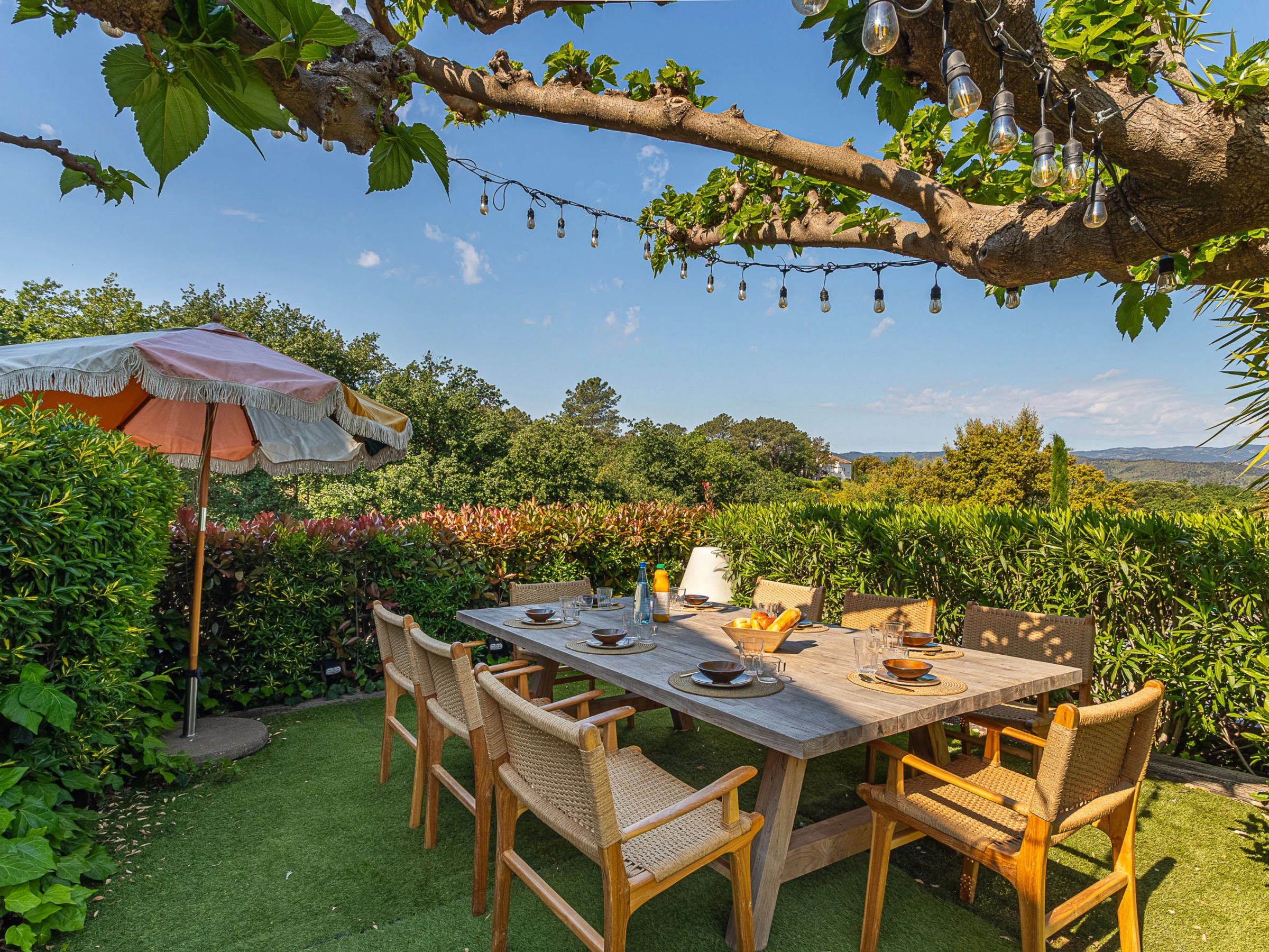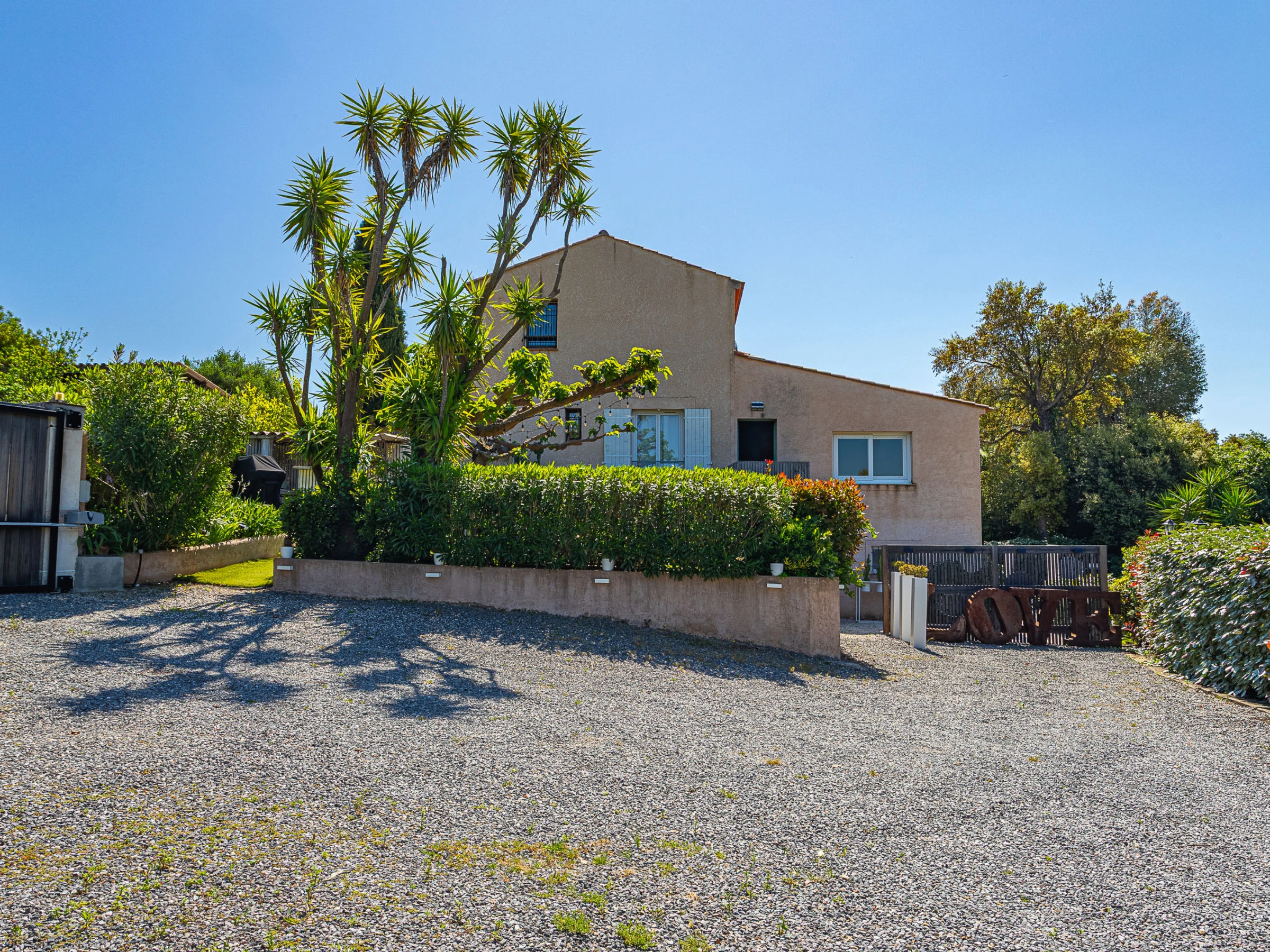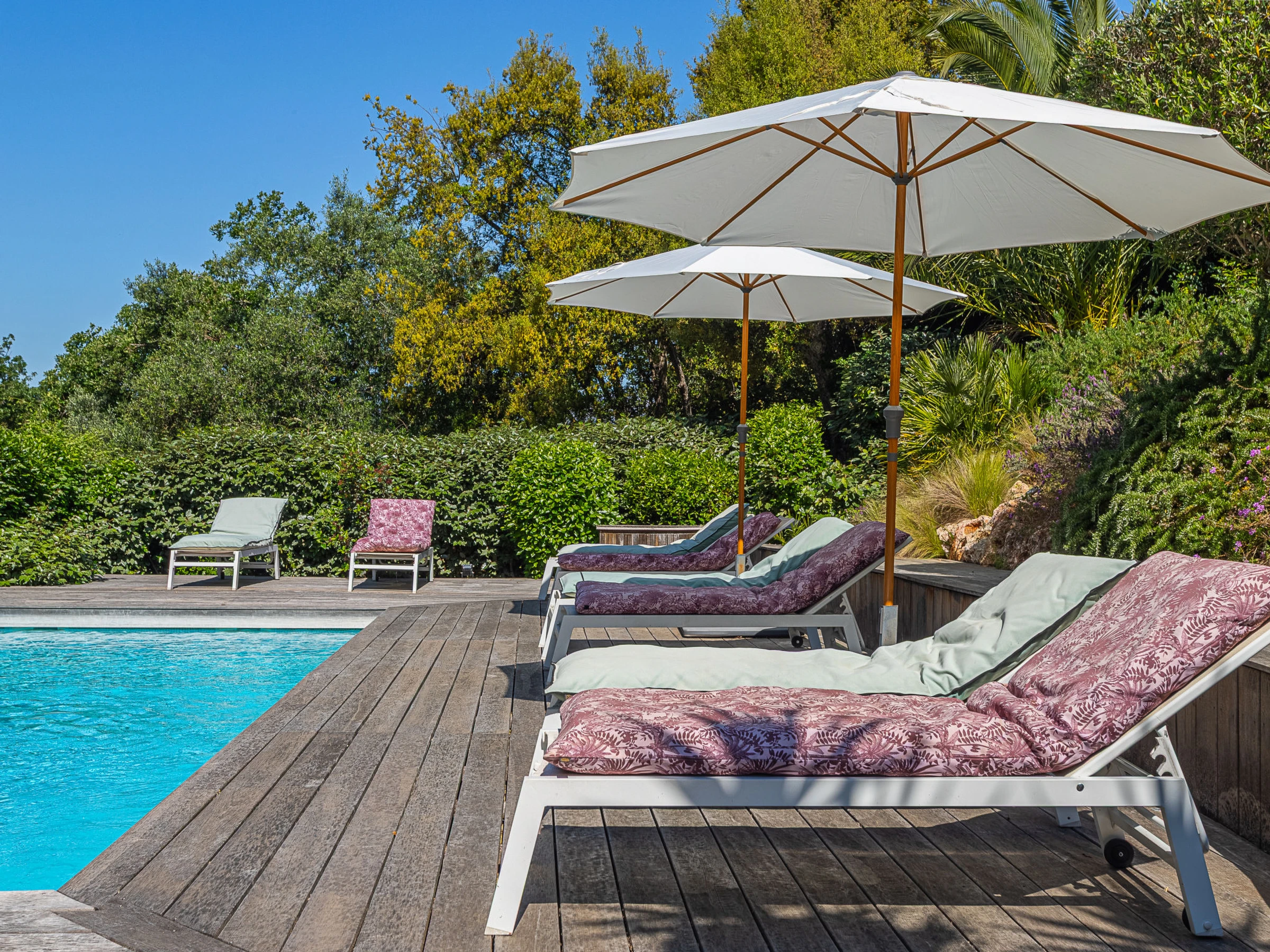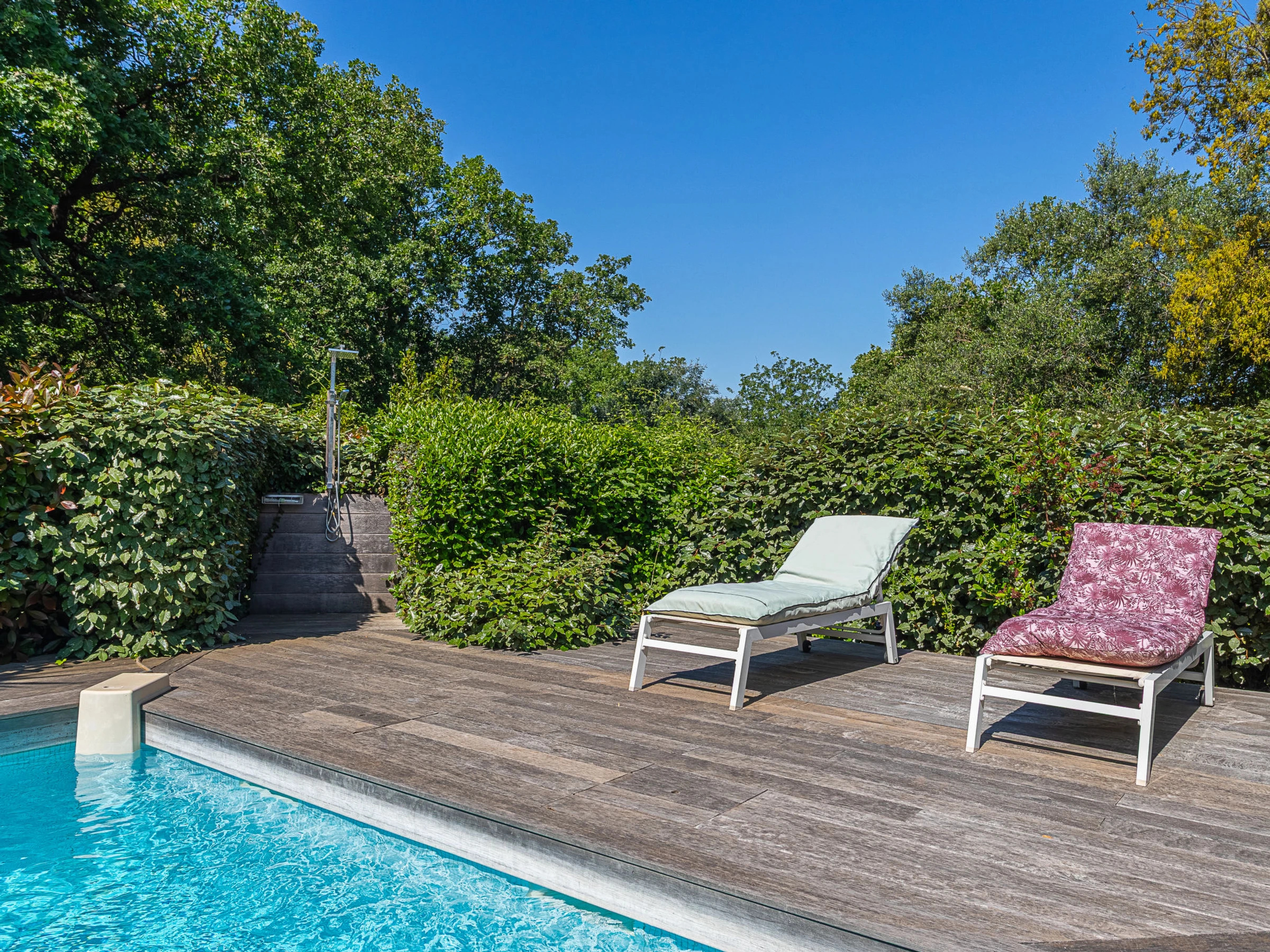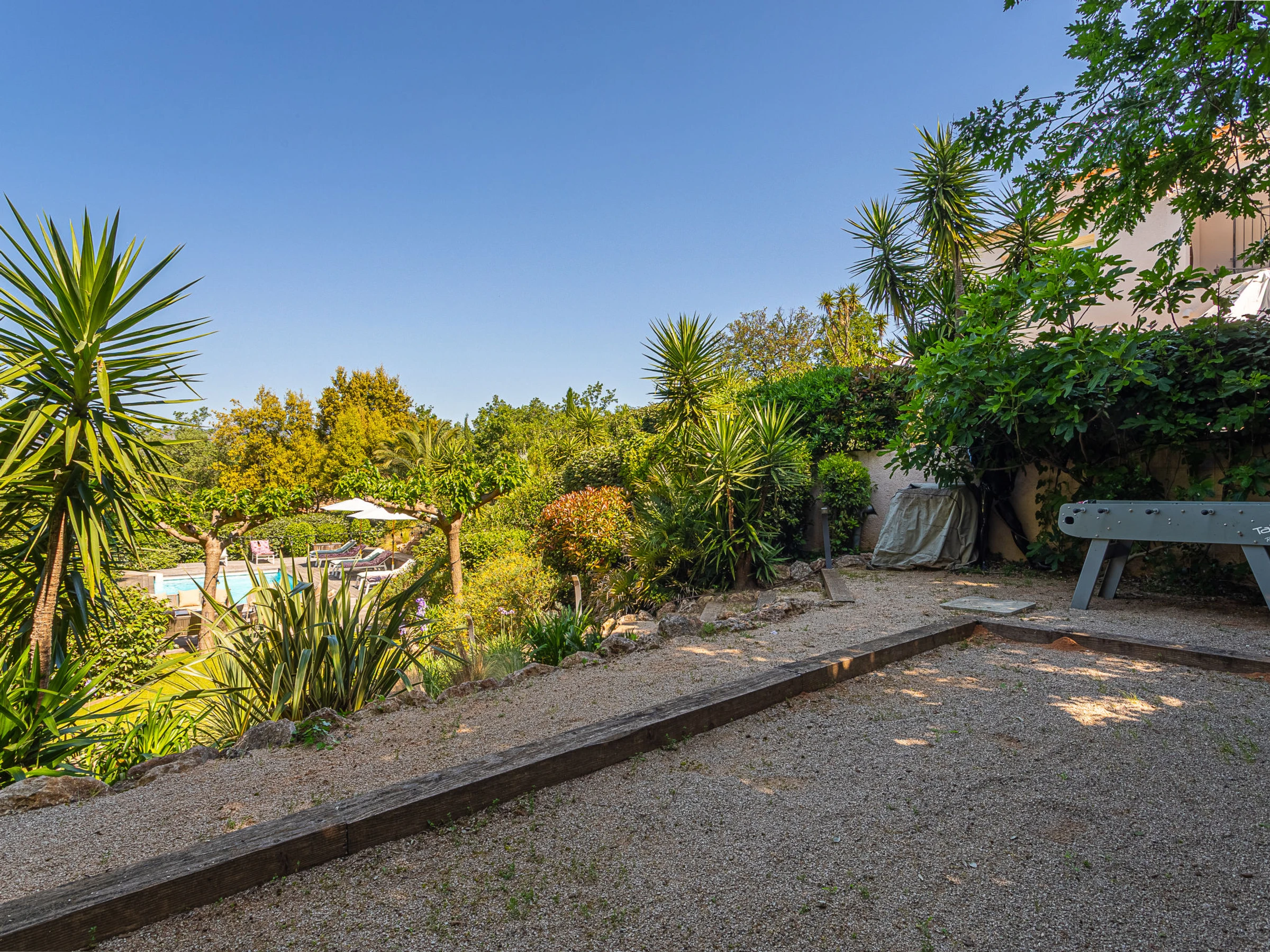 Belle villa "Le 444", de 2 étages. Dans la localité, à 1.9 km du centre de Cogolin, situation tranquille quartier résidentiel, à 8 km de la mer, à 8 km de la plage. A usage privé: jardin entretenu 1'400 m2 (clôturé), piscine (9 x 4 m, profondeur 80 - 200 cm, disponibilité saisonnière: [hidden] - [hidden] avec alarme de sécurité. Douche extérieure, ping-pong, terrain de pétanque. Magasins 1.9 km, magasin d'alimentation 1.9 km, supermarché 1.9 km, restaurant 1.9 km, boulangerie 1.7 km, arrêt de bus "Rond-point de Kock" 1.8 km, gare ferroviaire "Saint Raphaël" 40 km, plage de sable "Plage de Port Grimaud" 8.5 km. Port plaisance 6.8 km, terrain de golf (18 trous) 11 km, ecole de voile 8 km, golf miniature 7 km. Attractions à proximité: Port Grimaud 7 km, Parc d'attractions Azur Park 7 km, Saint Tropez 13 km, Plages de Pampelonne 18 km, Cannes 84 km, Nice 110 km. Les lacs connus sont facilement accessibles: Lac de Sainte Croix 92 km. Région de randonnées: Massif de l'Esterel 50 km. Veuillez noter: voiture recommandée. Le propriétaire n'accepte pas les groupes de jeunes. La remise des clés a lieu à l’agence de Gassin, 7 km. Environnement très sensible au bruit. Silence et bonne tenue exigés.