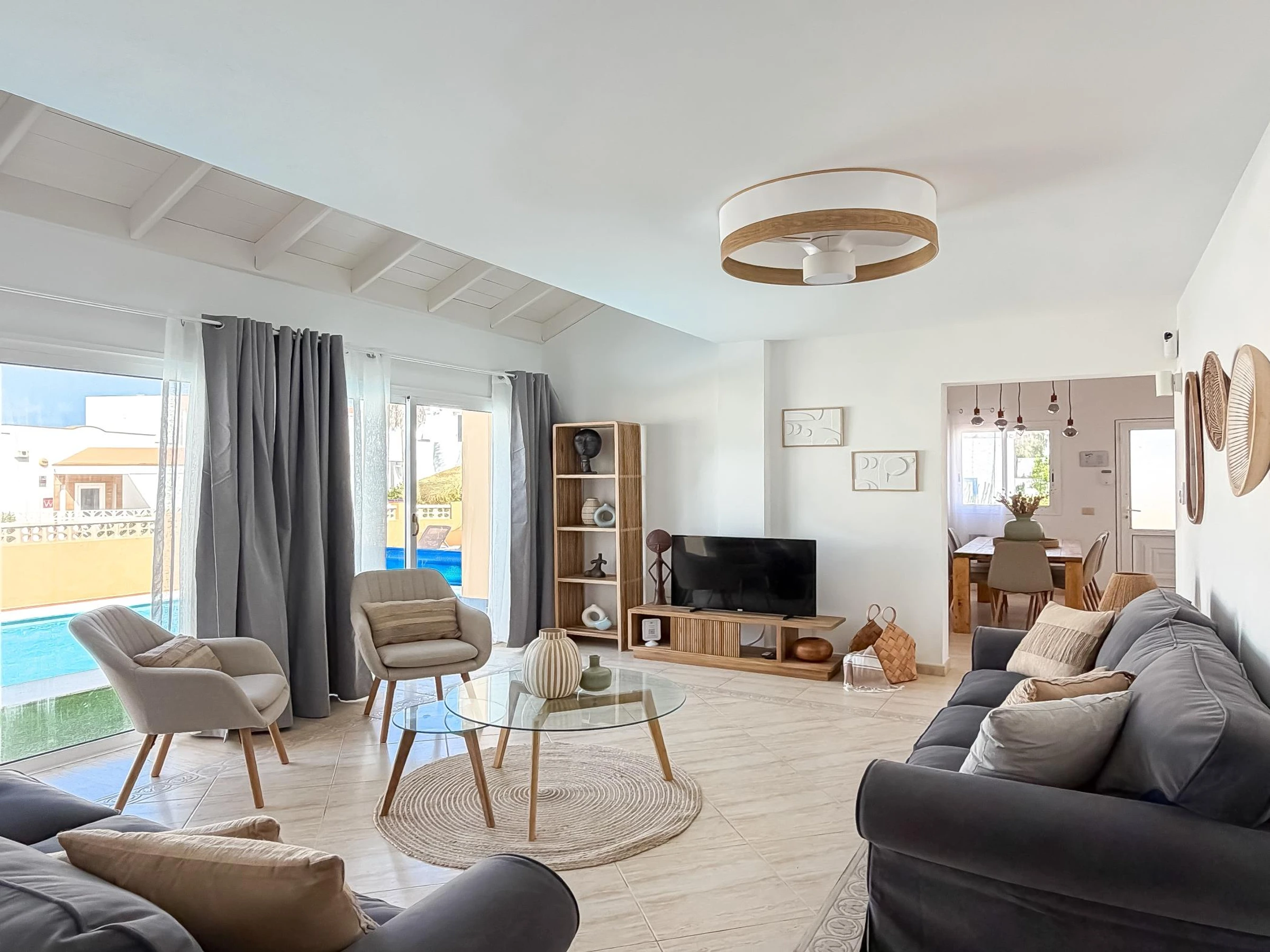 Casa Rayo Azul est une élégante maison proche de la mer, située dans l’un des plus beaux quartiers de Corralejo, idéale pour ceux qui recherchent confort, tranquillité et vues inoubliables sur l’océan et l’île de Lobos. Parfaite pour les familles ou les groupes d’amis qui souhaitent profiter d’un logement spacieux et lumineux à Fuerteventura, combinant détente, nature et proximité de la plage.