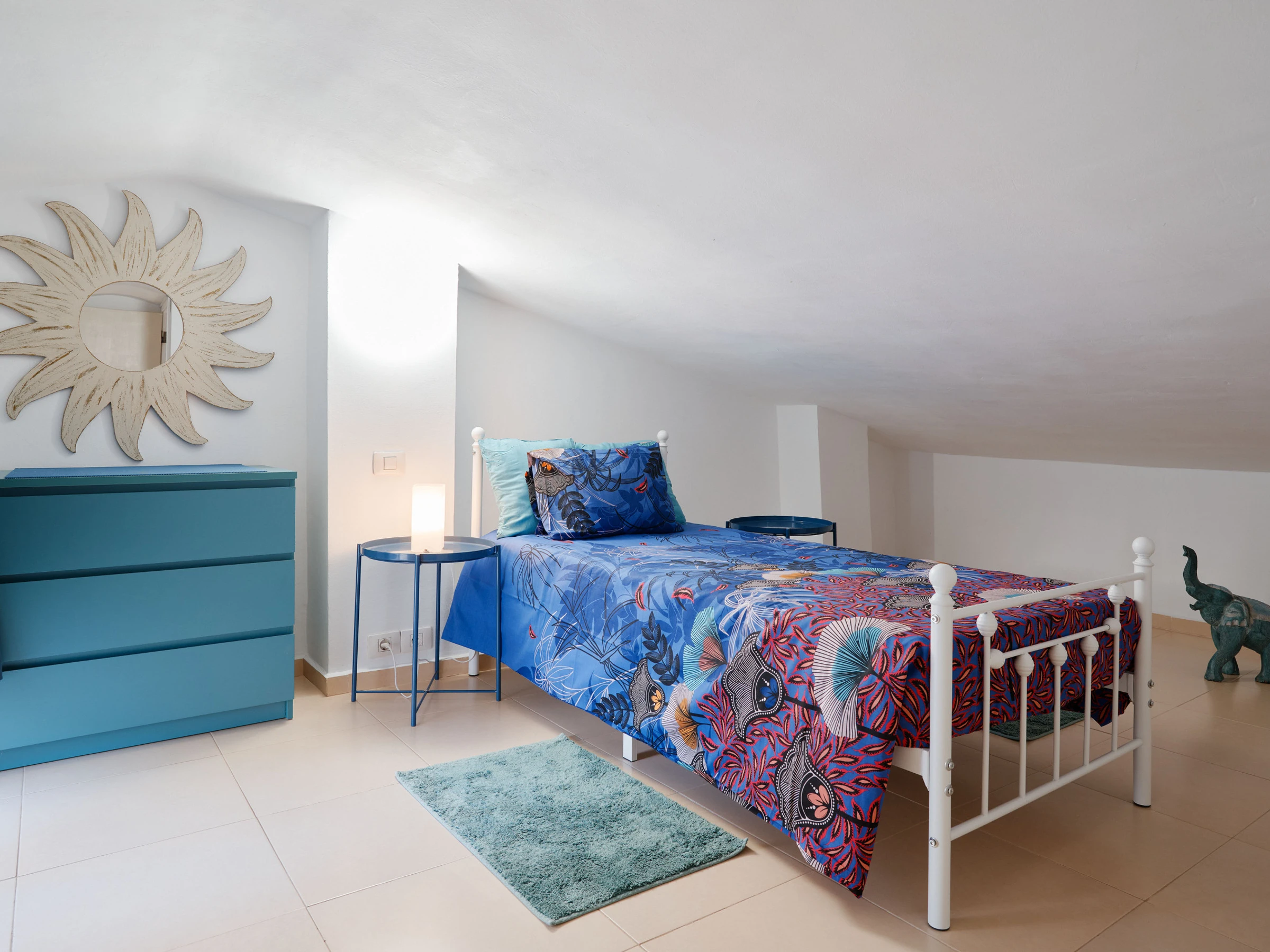 La zone de repos est répartie en deux chambres (dont une à l'étage supérieur) : une avec un lit double et l'autre avec un lit individuel, parfait pour les familles. La salle de bain privative dispose d'une douche.