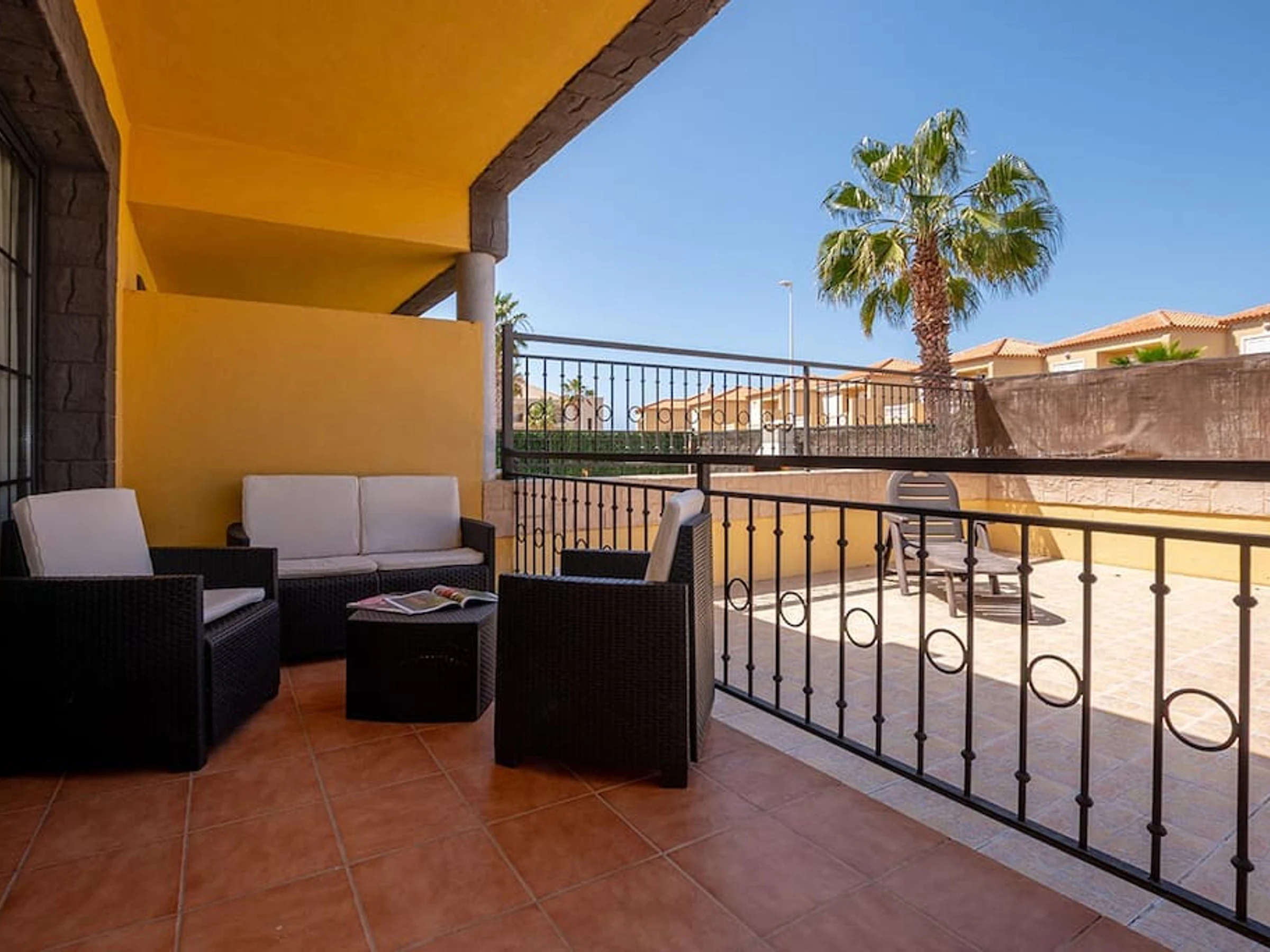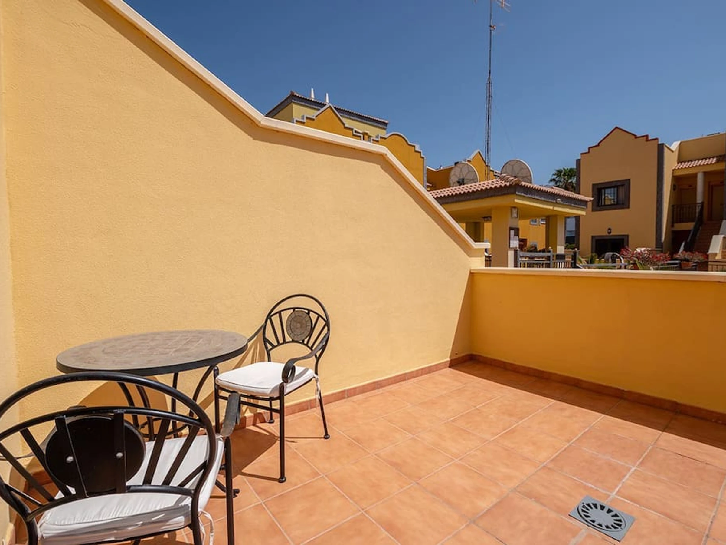 Elle dispose de terrasse, lave-linge, sèche-linge, fer à repasser, TV.