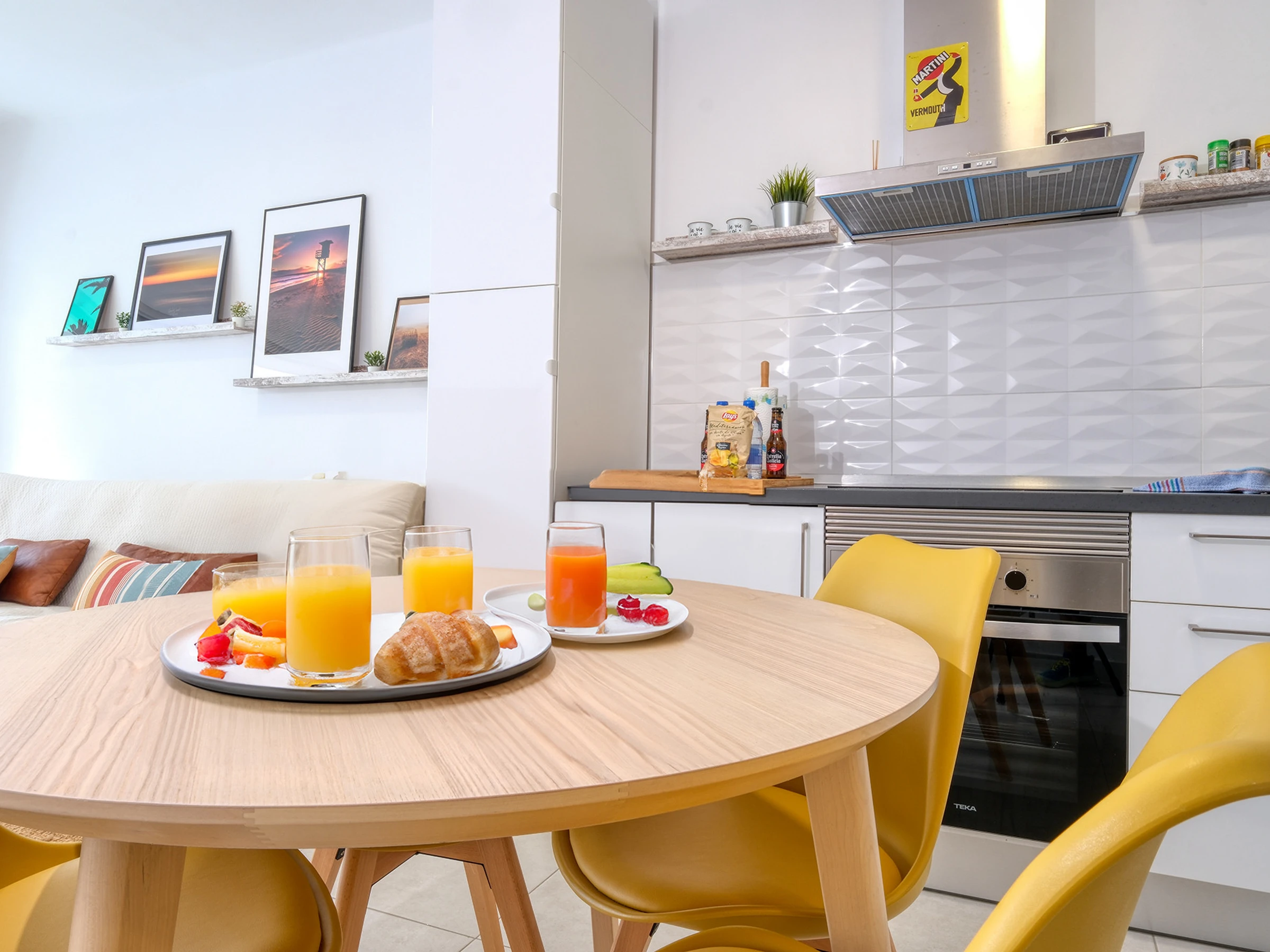 Exclusif Logement de Vacances Neuf dans un Complexe Tranquille avec Piscine Commune. Profitez d'un séjour inoubliable dans cette maison de vacances moderne, située au rez-de-chaussée d'un complexe résidentiel exclusif, idéal pour ceux qui recherchent tranquillité et confort. Elle dispose d'une chambre principale équipée d'un lit double avec linge de lit inclus, d'une grande armoire, d'un bureau et d'un miroir pleine longueur. La salle de bain est complète, avec une douche, un sèche-cheveux et des serviettes pour plus de confort. Le salon et la cuisine à concept ouvert offrent un espace lumineux et spacieux. La cuisine est entièrement équipée avec trois plaques de cuisson, un micro-ondes, un grille-pain, une bouilloire, une cafetière italienne et une machine à café à capsules Dolce Gusto, ainsi que de la vaisselle complète et une machine à laver avec étendoir. Le salon comprend un canapé-lit confortable et une SMART TV pour vos moments de détente. De plus, vous pourrez profiter d'une charmante terrasse privée, meublée avec un canapé, offrant une vue directe sur la piscine commune. Le logement dispose d'une connexion Wi-Fi à haut débit par fibre optique pour rester connecté à tout moment, et d'un accès à la piscine commune ainsi qu'à une zone commune avec chaises longues et fauteuils, idéale pour se détendre au soleil. Un parking gratuit dans la rue est disponible pour les invités. Ce logement a été conçu pour offrir une expérience de détente totale, avec tout le confort à votre disposition. Des serviettes de bain et de piscine ainsi que du linge de lit sont fournis.