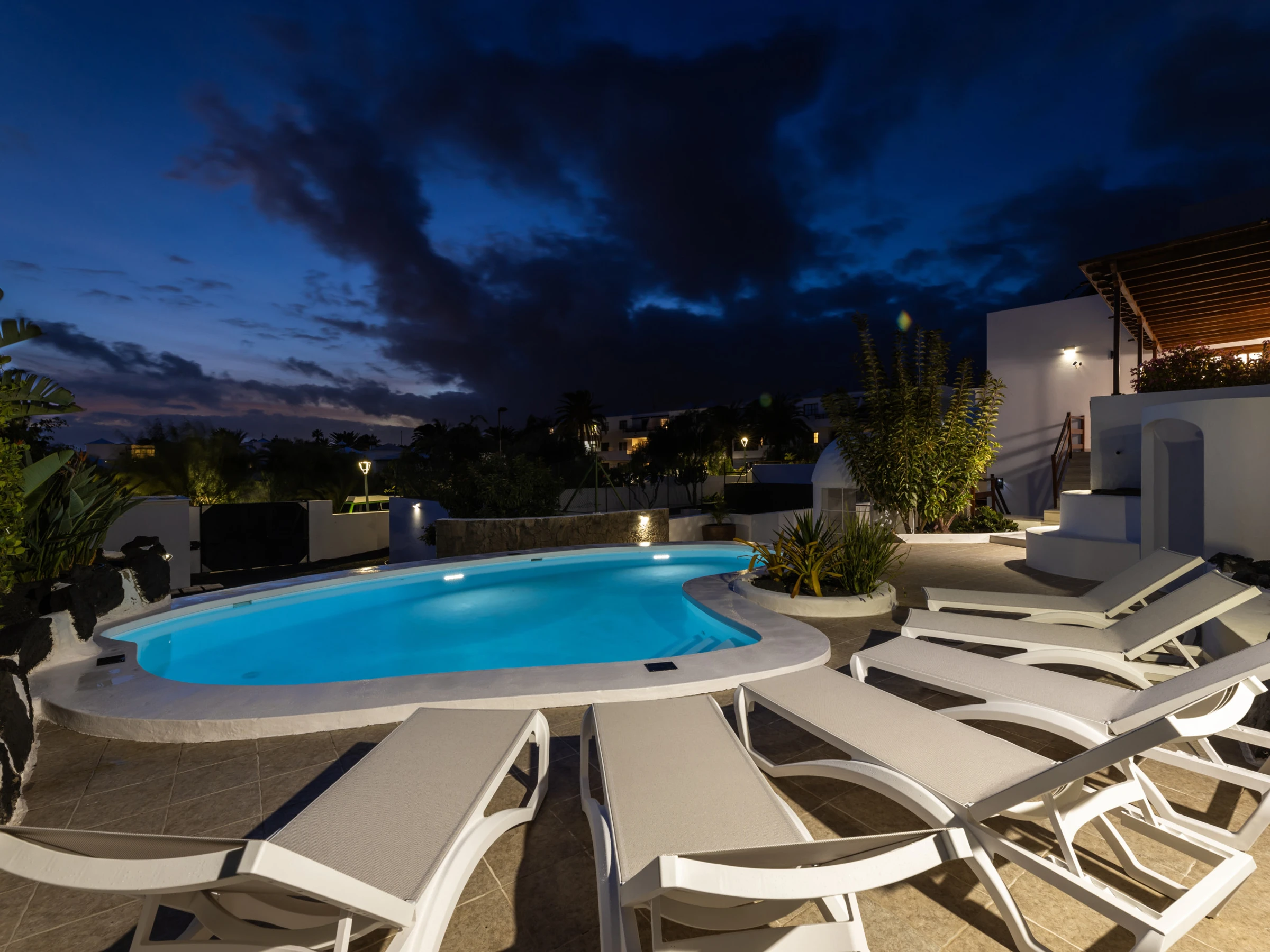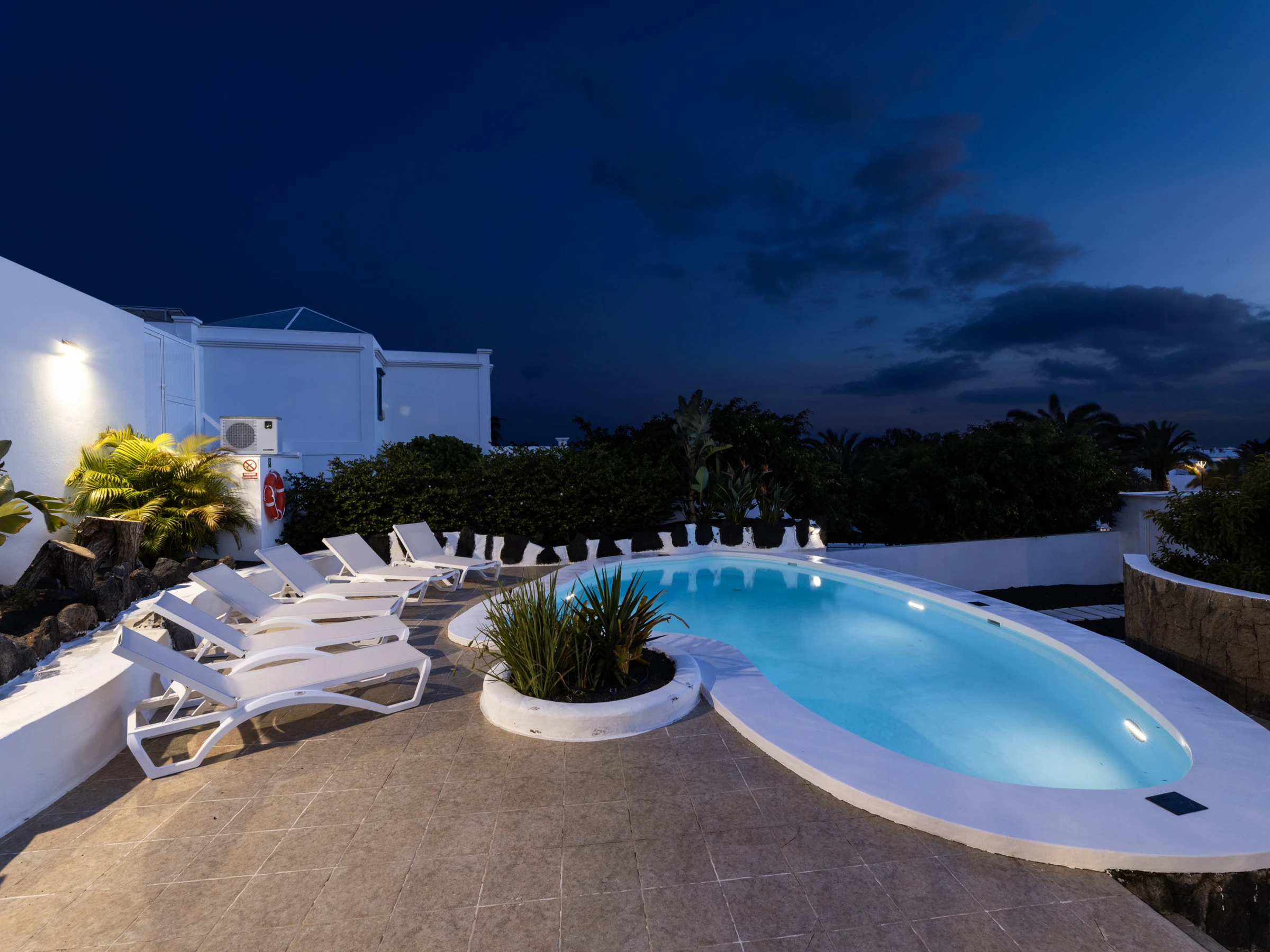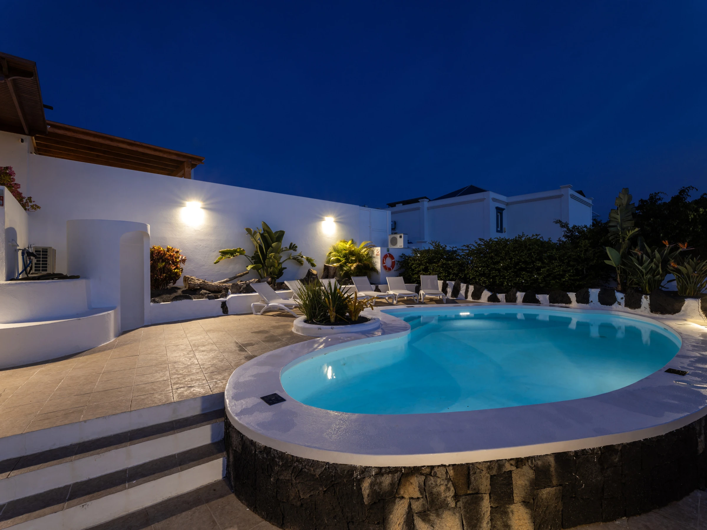 La villa s'organise autour d'un grand jardin avec de la végétation canarienne, des terrasses spacieuses sur deux niveaux et une piscine privée chauffée entourée de chaises longues pour prendre des bains de soleil. La zone de barbecue couverte, à côté de la cuisine, permet de profiter de repas en plein air toute l'année, en tirant parti du climat doux de Costa Teguise.