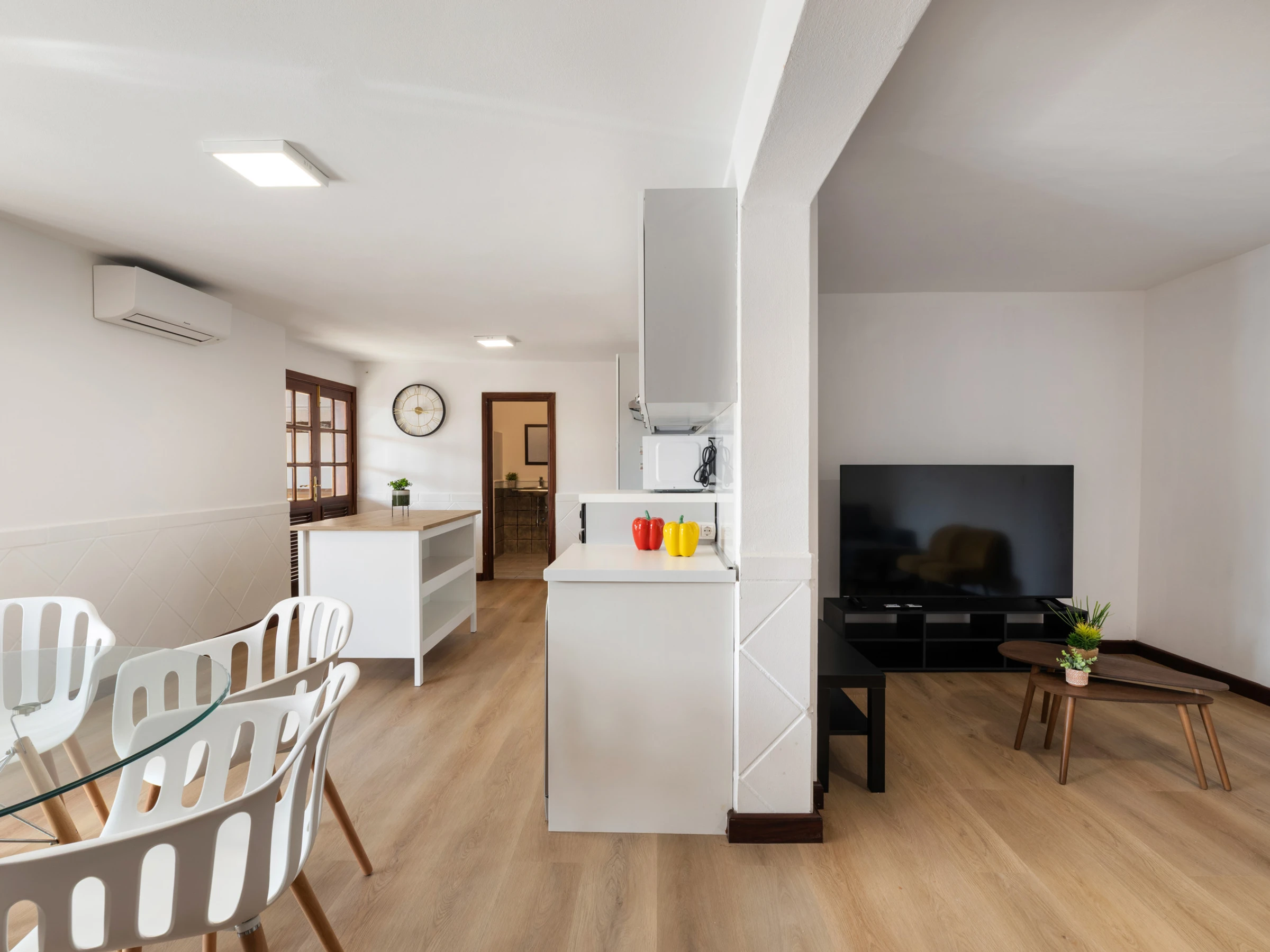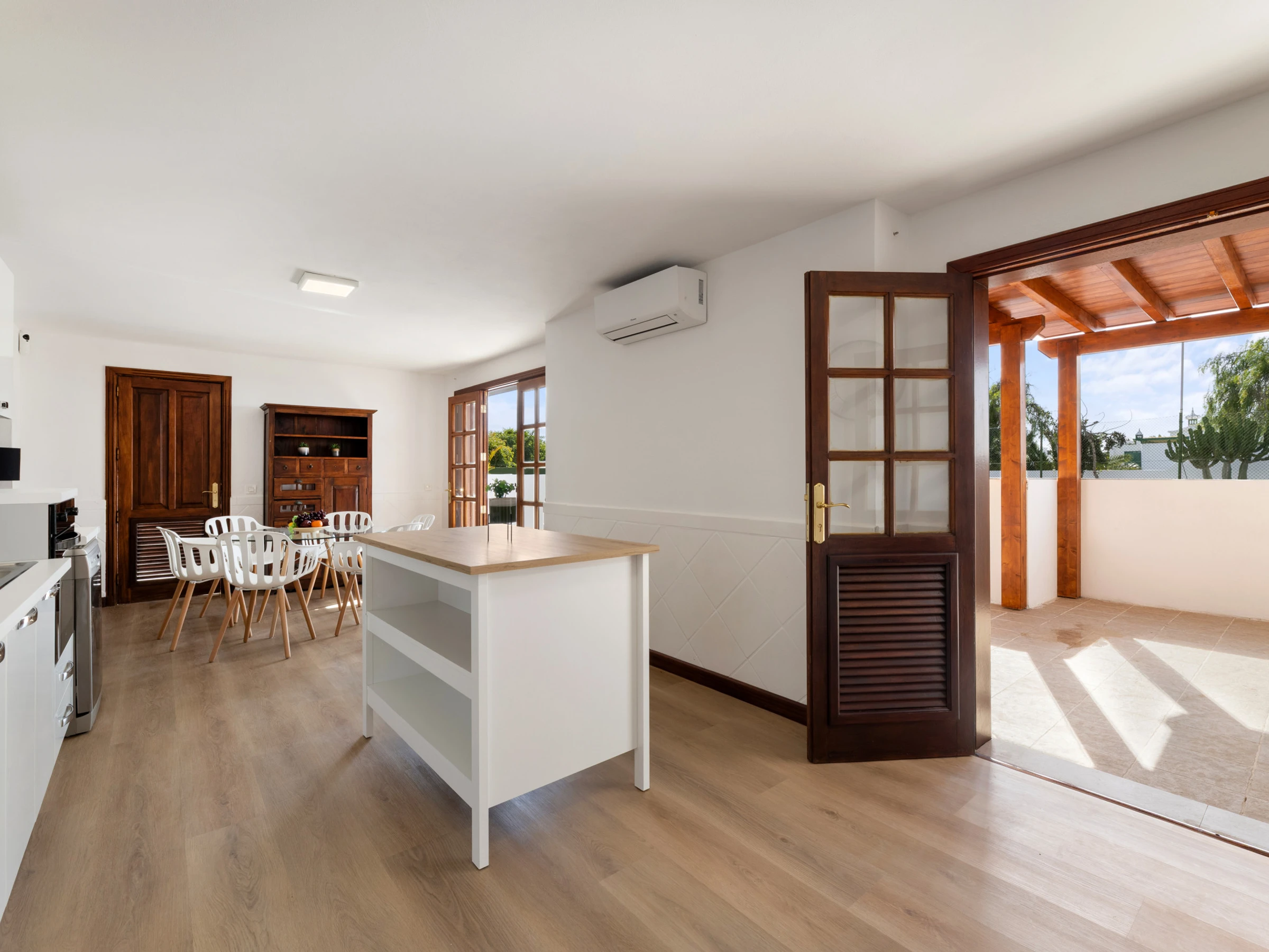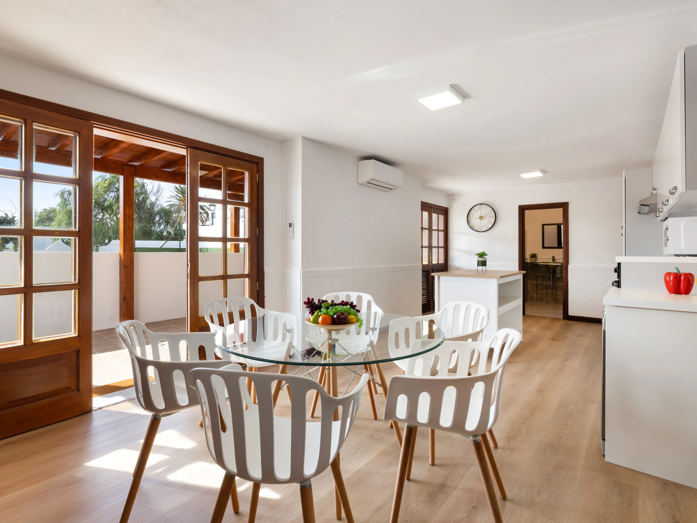 À l'intérieur, le logement offre un salon-salle à manger ouvert sur la terrasse, une cuisine entièrement équipée et trois chambres doubles avec climatisation individuelle, literie et ample espace de rangement. Tous les invités disposent du wifi haut débit et de la smart TV, idéal pour le télétravail ou profiter de leurs plateformes préférées après une journée de plage ou d'excursions.