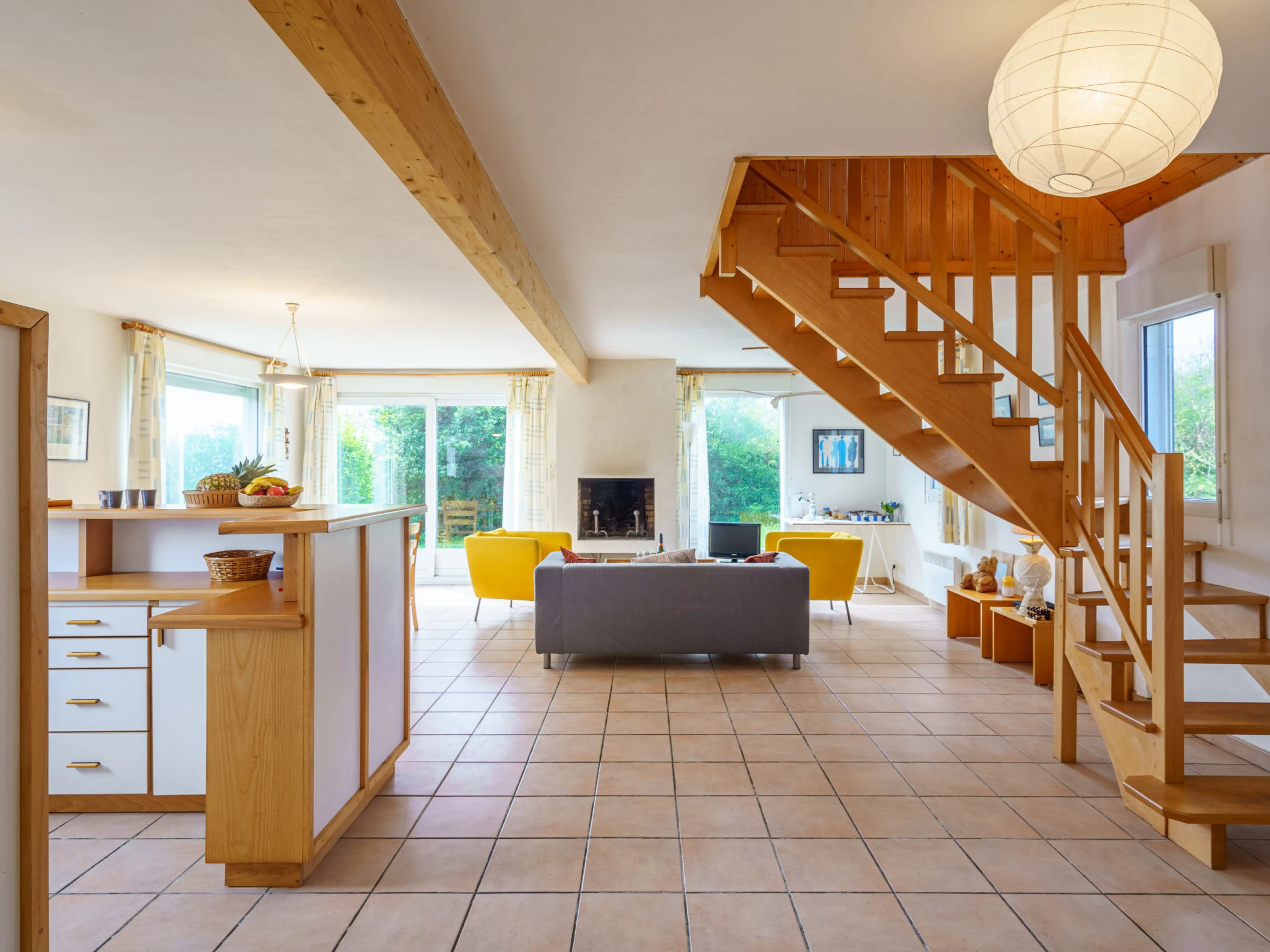 "maison bleue", maison 3 pièces 110 m2 sur 2 niveaux. Aménagement agréable: séjour/salle à manger avec cheminée (uniquement à titre de décoration), table pour les repas et TV (écran plat). Sortie sur la terrasse. 1 chambre avec 1 grand-lit (140 cm, longueur 190 cm). Cuisine ouverte (four, 4 feux, grille-pain, bouilloire électrique, micro-ondes, congélateur, cafetière électrique, Capsules pour machine à café (Nespresso) (NON INCLUSES)). Bain/WC. À l'étage supérieur: 1 chambre avec 1 lit (90 cm, longueur 190 cm), 1 grand-lit (140 cm, longueur 190 cm). Douche, WC séparé. Chauffage électrique. Terrasse 12 m2. Meubles de terrasse, barbecue, chaises longues (3). A disposition: lave-linge, chaise haute pour enfant, lit bébé jusqu'à 2 ans, sèche-cheveux. Internet (Connexion WIFI, gratuit). Veuillez noter: adapté(e) aux familles. Maison non-fumeur. Maximum 1 animal/ chien autorisé. Détecteur de fumée.