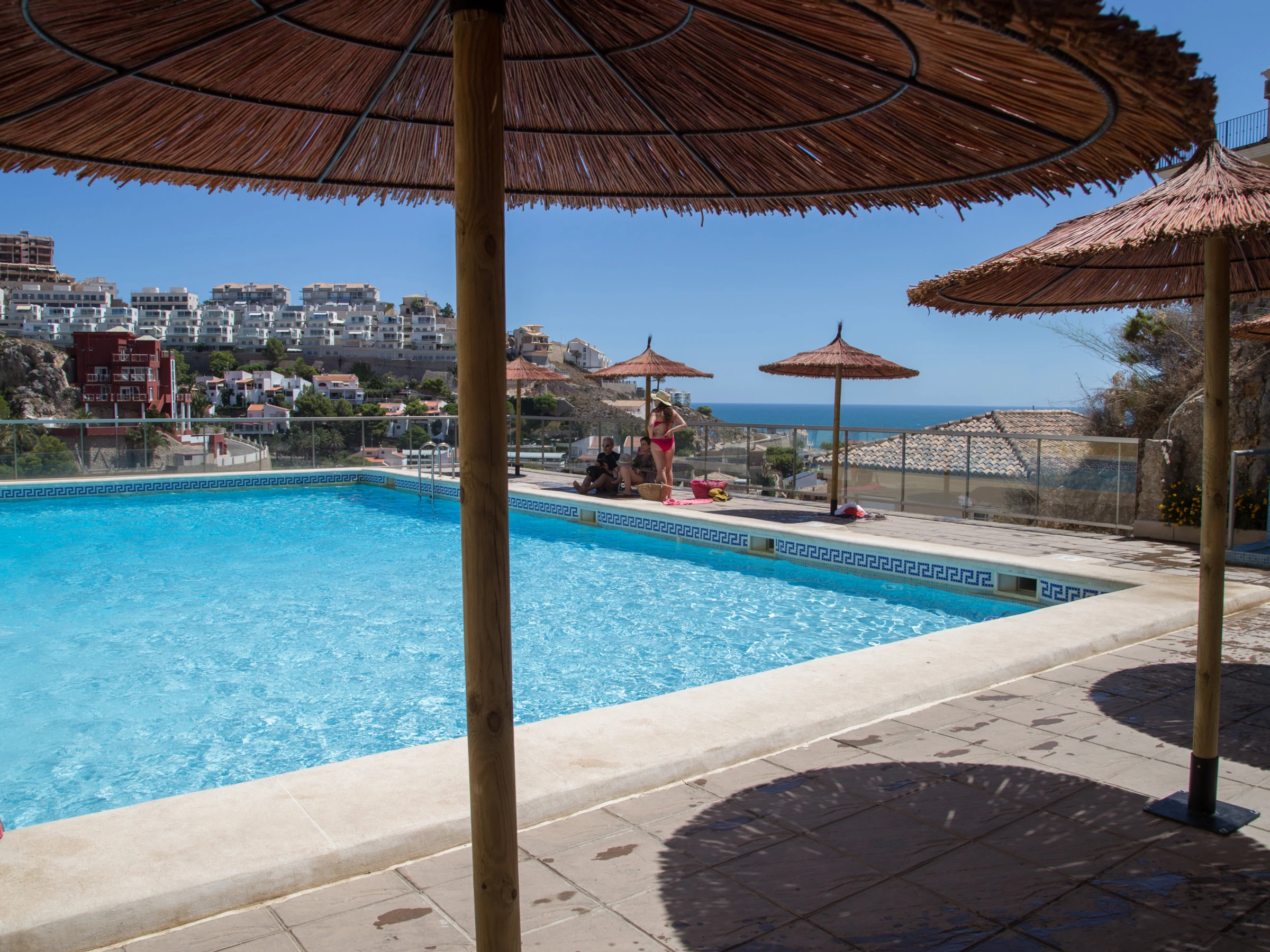 Dispose également d'une piscine commune, cours surplombant la mer et la montagne sur laquelle le bâtiment est construit. Cela a un parking privé réservé.