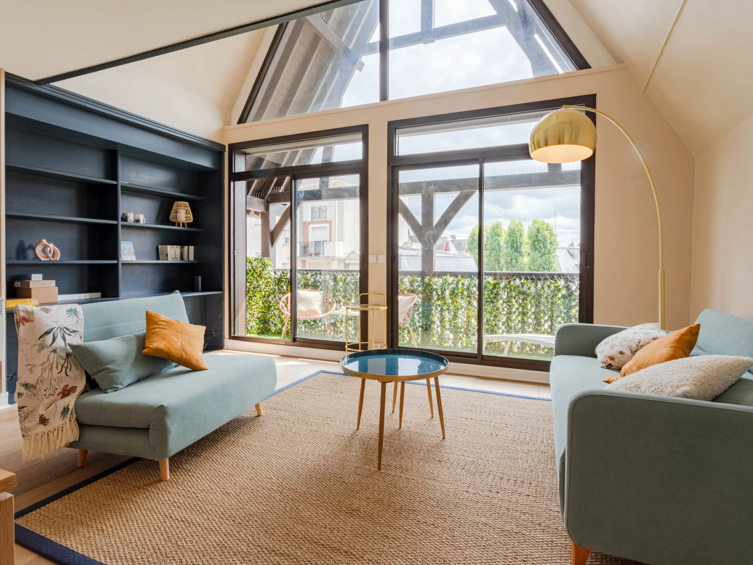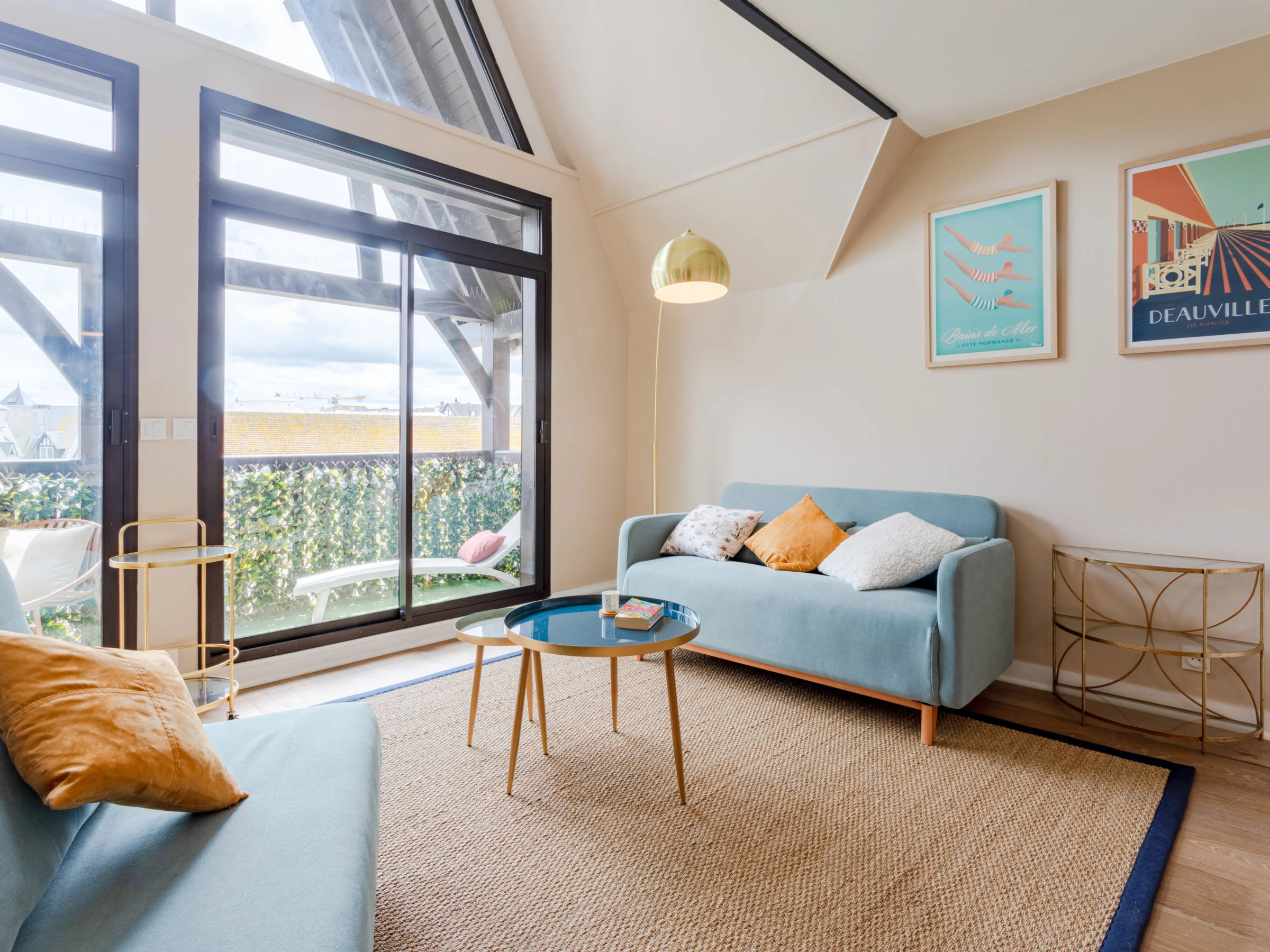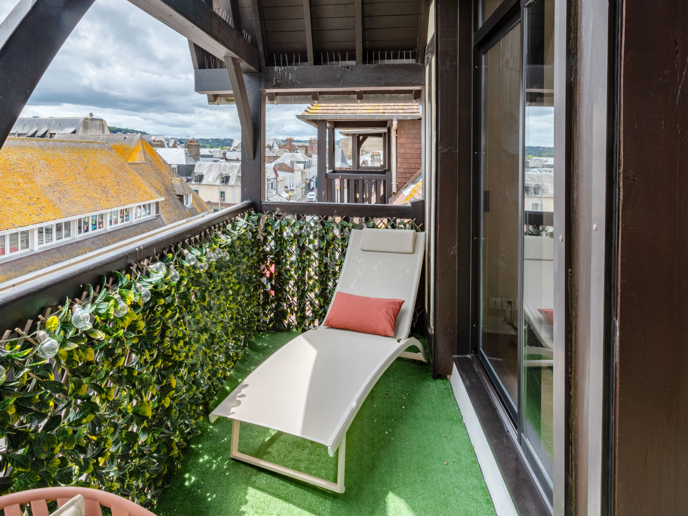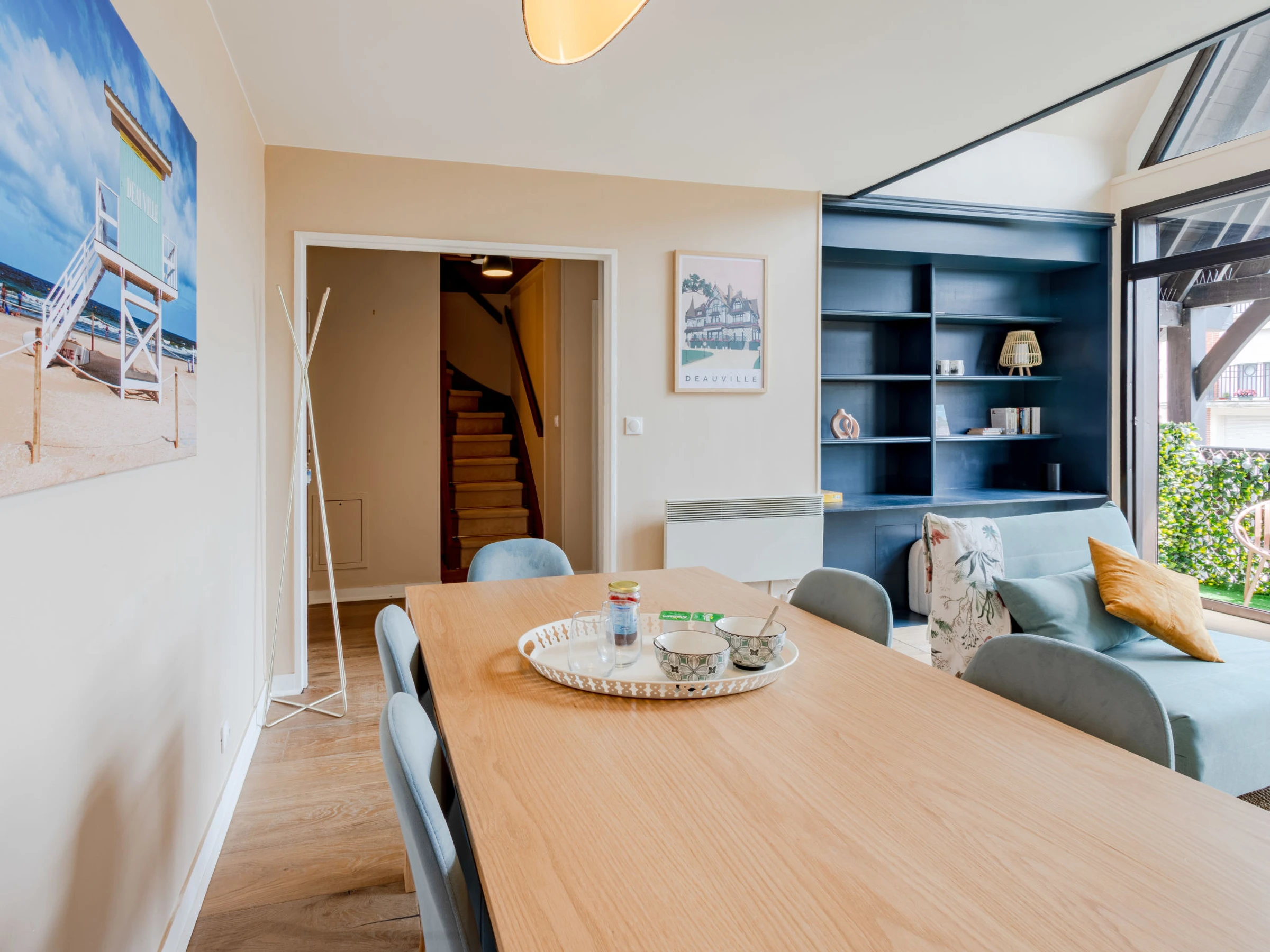 Deauville: Belle résidence "Les Jardins du Yacht Club". Situation centrale, à 900 m de la mer, à 900 m de la plage. Infrastructures de la résidence: ascenseur. (5 marches). Magasins, magasin d'alimentation 200 m, supermarché 400 m, restaurant 200 m, arrêt de bus "Yacht Club - Marché" 200 m, gare ferroviaire "Deauville - Trouville" 400 m, piscine couverte 1 km, centre thermal "Deauville" 1 km. Terrain de golf (18 trous) 3.9 km, tennis 1 km, centre équestre 1 km. Attractions à proximité: Centre International Deauville - CID 900 m, Hippodrome Deauville - La Touques 900 m, Mémorial de Caen 54 km, Plages du débarquement d'Arromanches 82 km. La remise des clés a lieu à l’agence de Deauville.