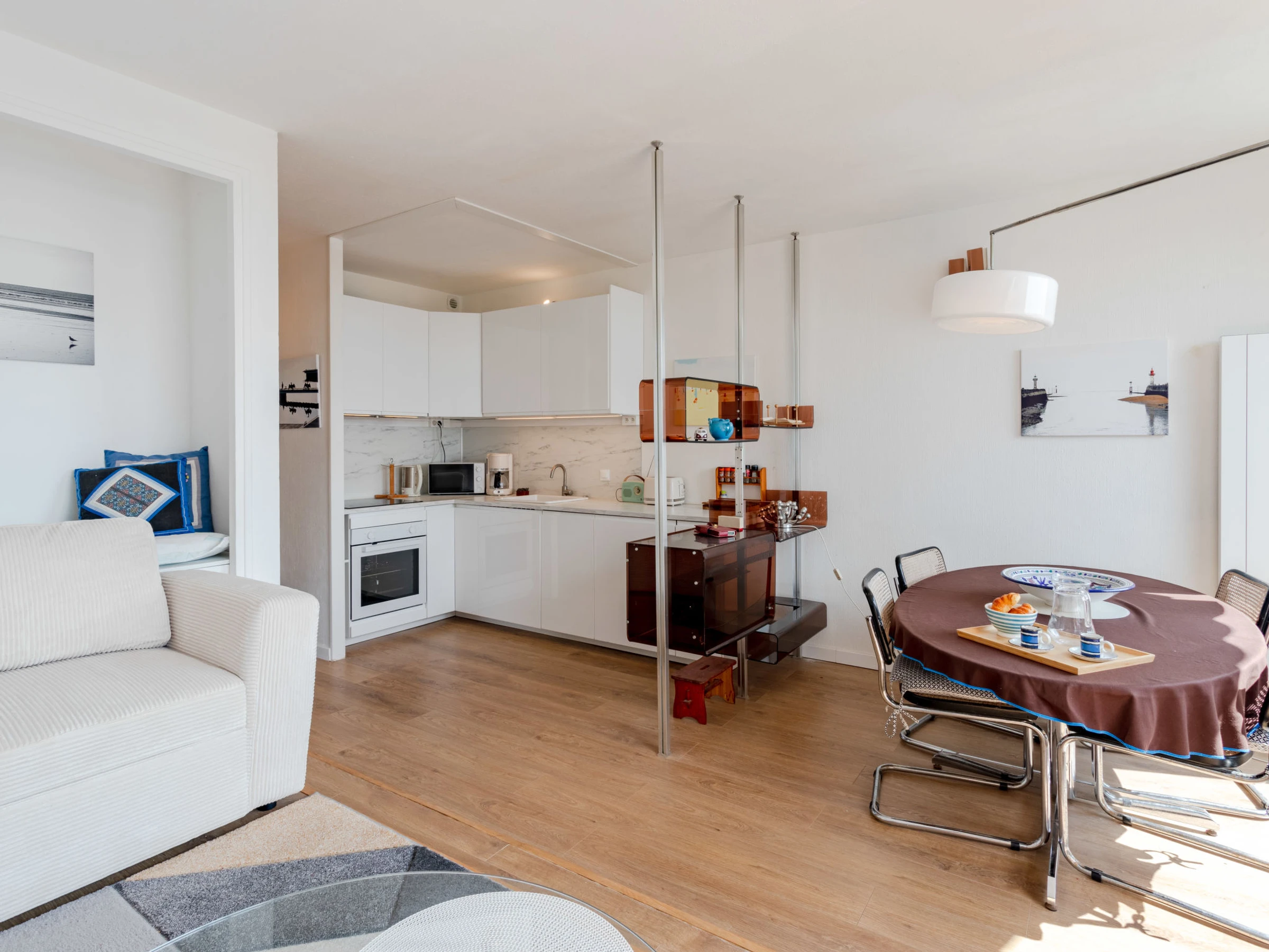 Deauville: Résidence "Les Marinas". Dans le quartier de Port Deauville, à 800 m du centre, à 500 m de la mer, à 500 m de la plage. Infrastructures de la résidence: ascenseur. (20 marches). Parking public possible dans la rue. Magasins 650 m, magasin d'alimentation, supermarché 950 m, restaurant 650 m, arrêt de bus 400 m, gare ferroviaire "Deauville-Trouville" 1.2 km, piscine couverte 1.1 km, centre thermal "Deauville" 1.1 km. Terrain de golf (18 trous) 4.1 km, tennis, centre équestre 750 m. Attractions à proximité: Centre International Deauville - CID 900 m, Hippodrome Deauville-La Touques 1.3 km, Mémorial de Caen 55 km, Plage du débarquement d'Arromanches 87 km. Veuillez noter: D’autres appartements sont également proposés à la location dans cette maison de vacances.