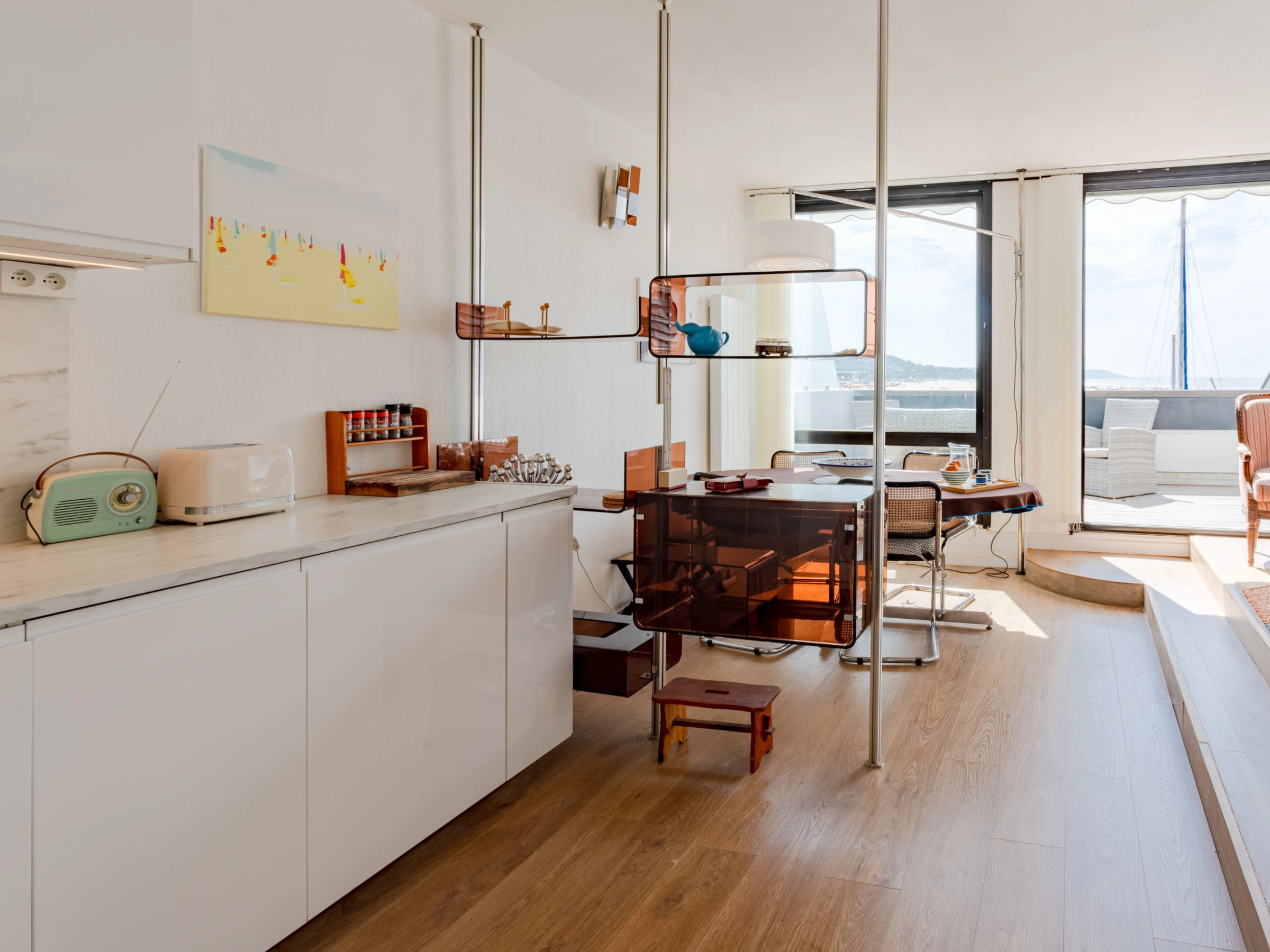 "Les Marinas", apt 2 pièces 50 m2 au 1er étage, situation sud-ouest. Clair: séjour/salle à manger. Sortie sur la terrasse, orientée sud et orientée ouest. 1 chambre avec 1 grand-lit (1 x 140 cm, longueur 190 cm), TV (écran plat). Cuisine ouverte (four, lave-vaisselle, 4 plaques à induction, grille-pain, bouilloire électrique, micro-ondes, cafetière électrique). Bain/douche, WC séparé. Chauffage électrique. Grande terrasse 7 m2. Meubles de terrasse. Très belle vue panoramique sur la mer. A disposition: lave-linge, lit bébé (en sus). Internet (Connexion WIFI, en sus). Place de parking. Veuillez noter: logement non-fumeur. Maximum 1 animal/ chien autorisé. Détecteur de fumée, sans ascenseur. Annonce d'un particulier (art 155, IV du CGI). [hidden]