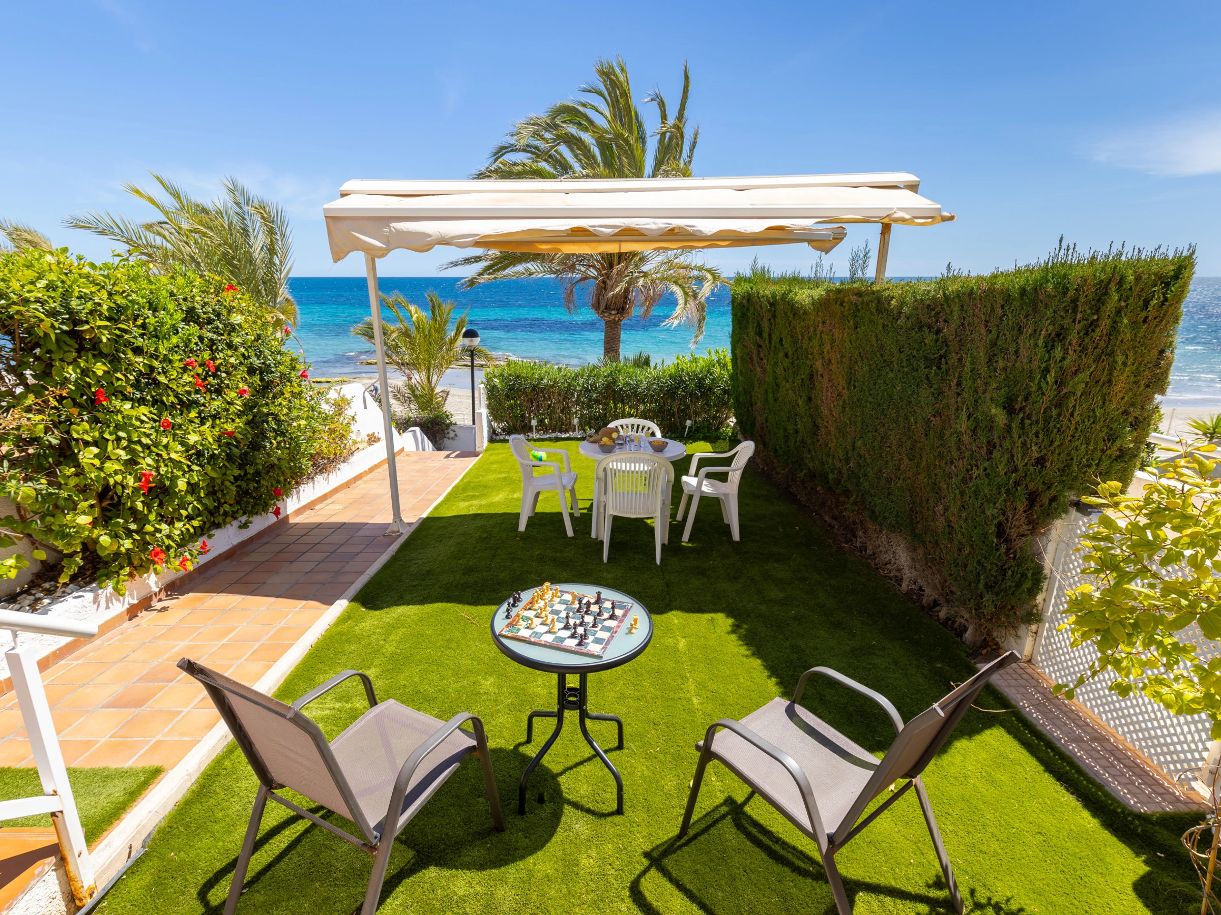 La maison se vante d'un emplacement privilégié, littéralement à côté de la Plage d'Aguamarina, avec des vues impressionnantes sur la mer et le jardin. Sa conception est pensée pour profiter de l'environnement, avec une terrasse, un balcon et du mobilier extérieur qui invite à la détente.