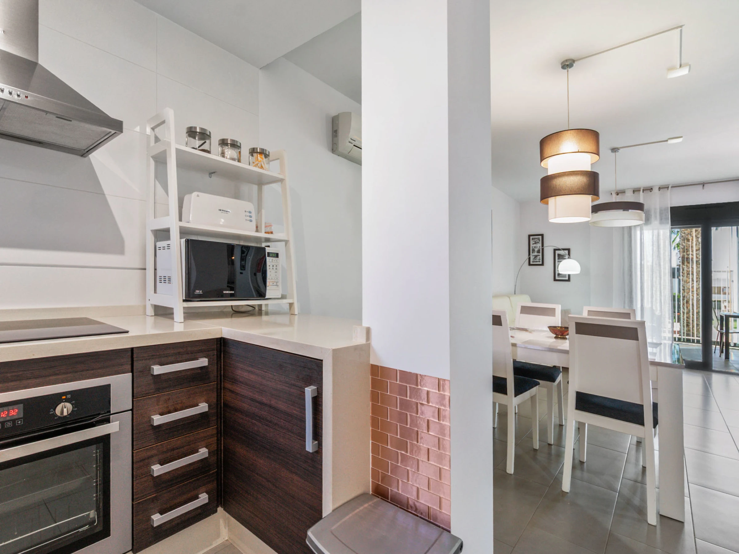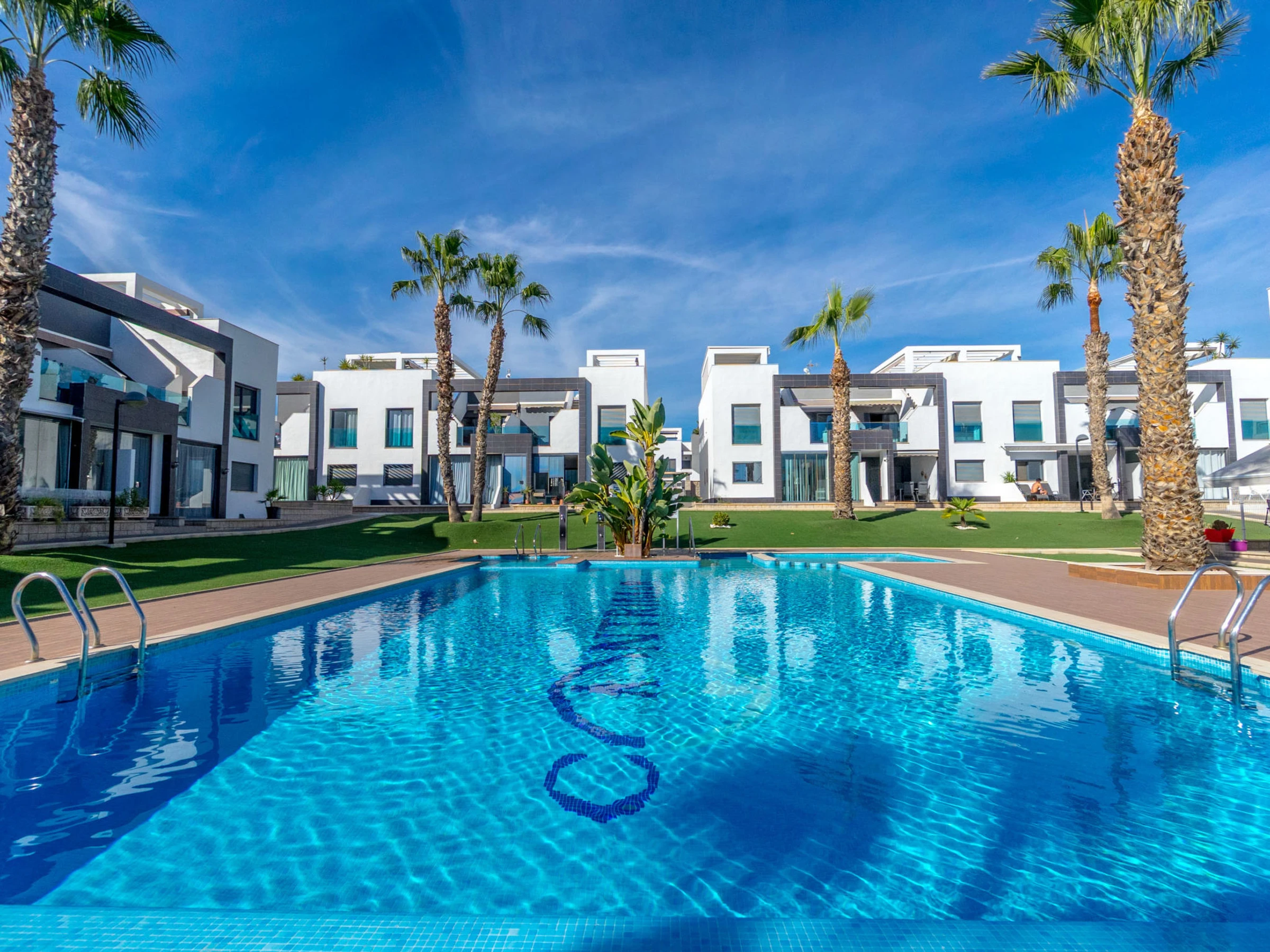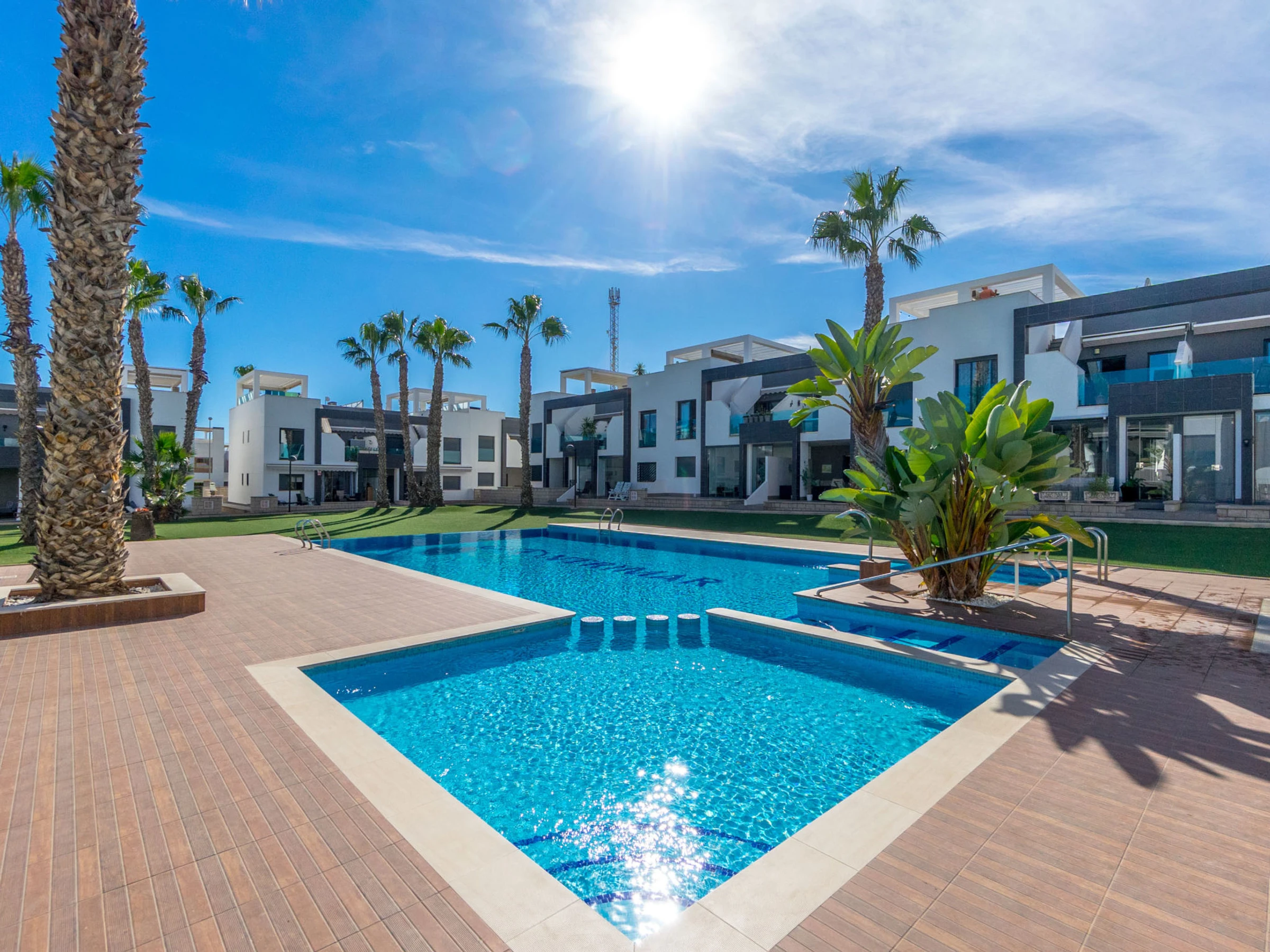 La Zenia: Belle petite résidence moderne "Oasis Beach II". À 1 km du centre de La Zenia, à 3 km du centre de Cabo Roig, situation tranquille, ensoleillée, zone avec peu de trafic, à 2 km de la mer, à 2 km de la plage. En commun: terrain (clôturé), pré, piscine (13 x 8 m, disponibilité saisonnière: [hidden] - [hidden] Bassin pour les enfants, douche extérieure, terrasse. Magasins 350 m, magasin d'alimentation, supermarché 140 m, centre commercial 350 m, arrêt de bus 300 m, plage de sable "Playa La Zenia" 2 km. Port plaisance 4 km, marina 4 km, terrain de golf (12 trous) 3 km. Le propriétaire n'accepte pas les groupes de jeunes.