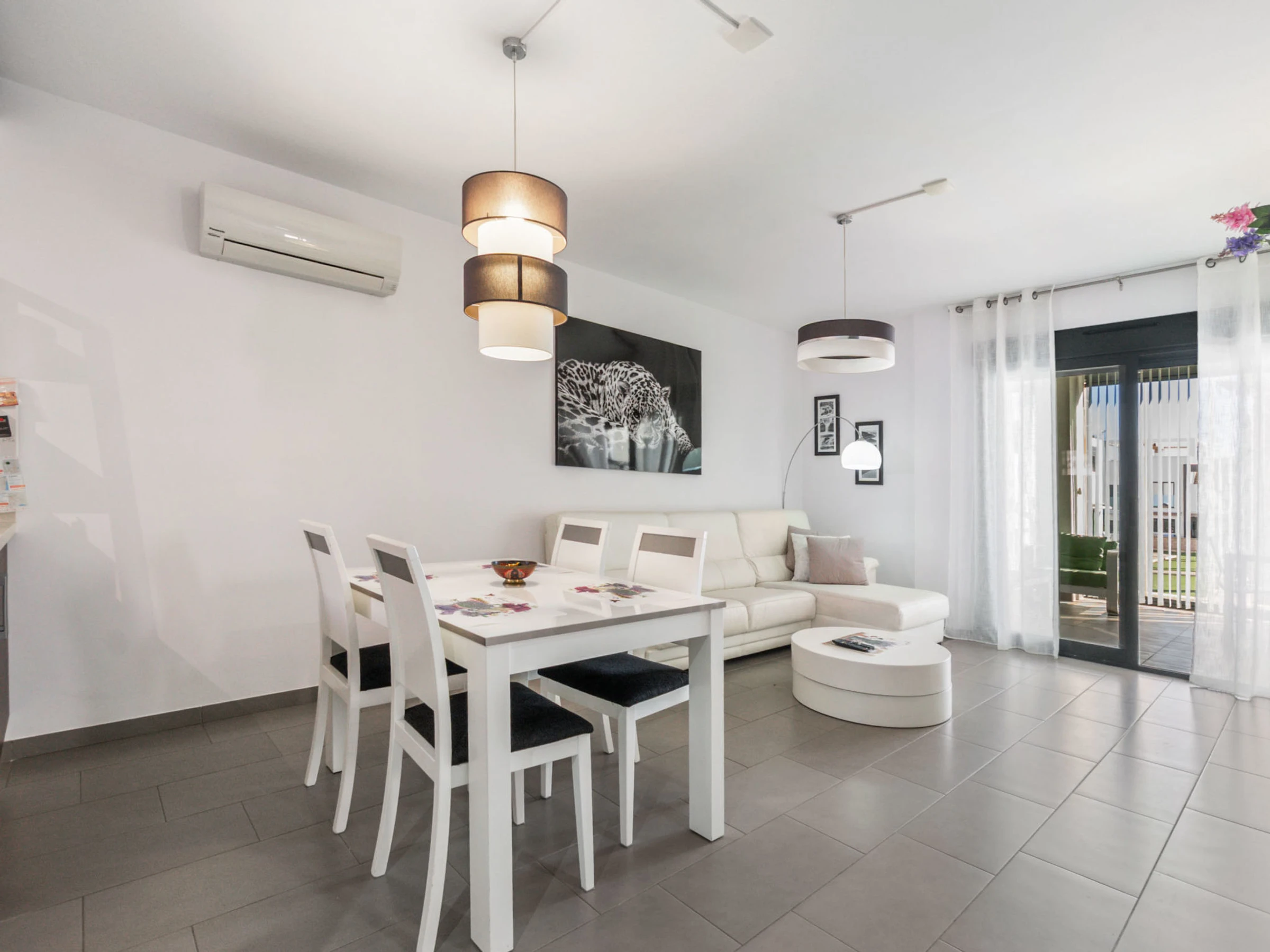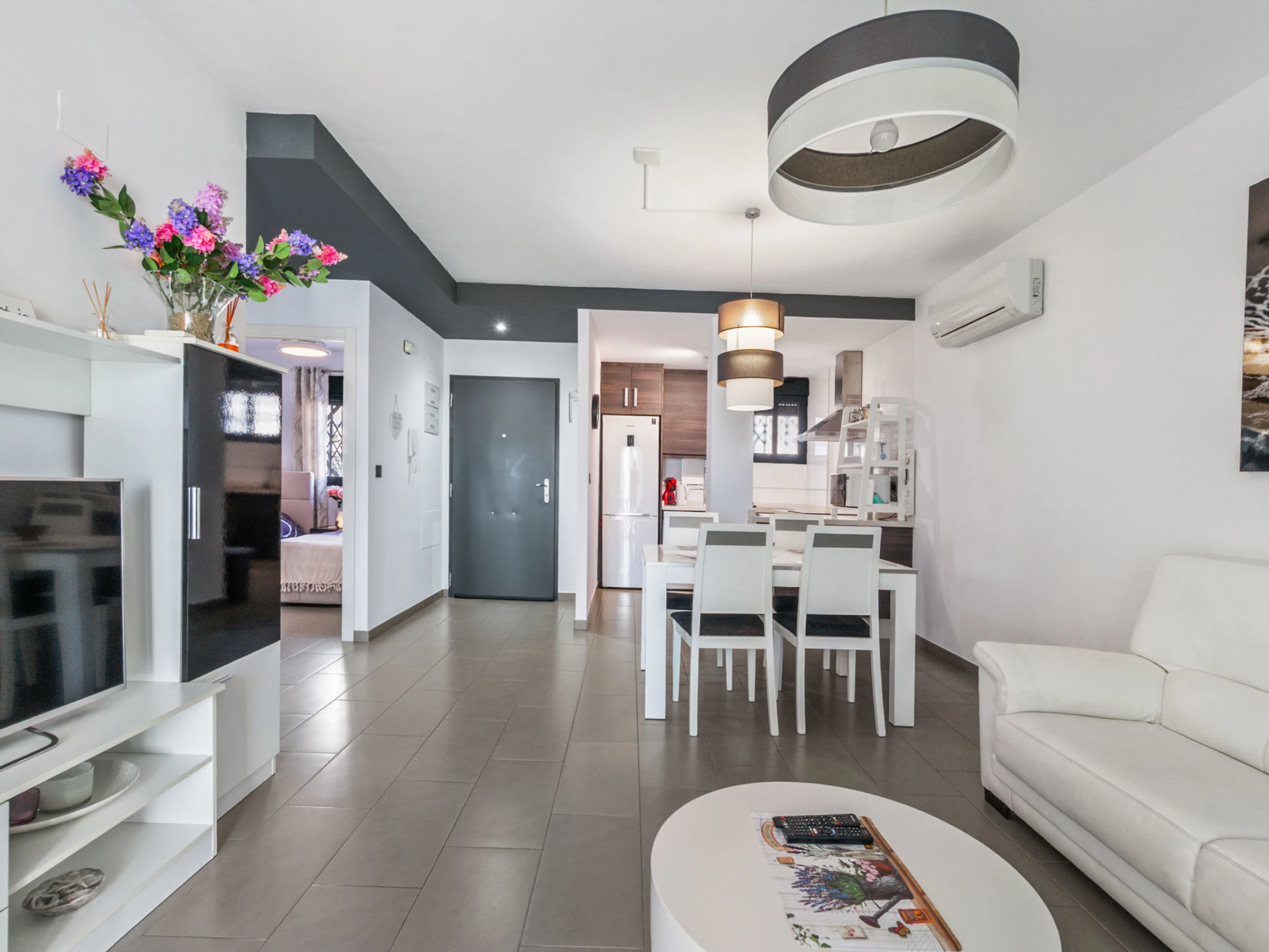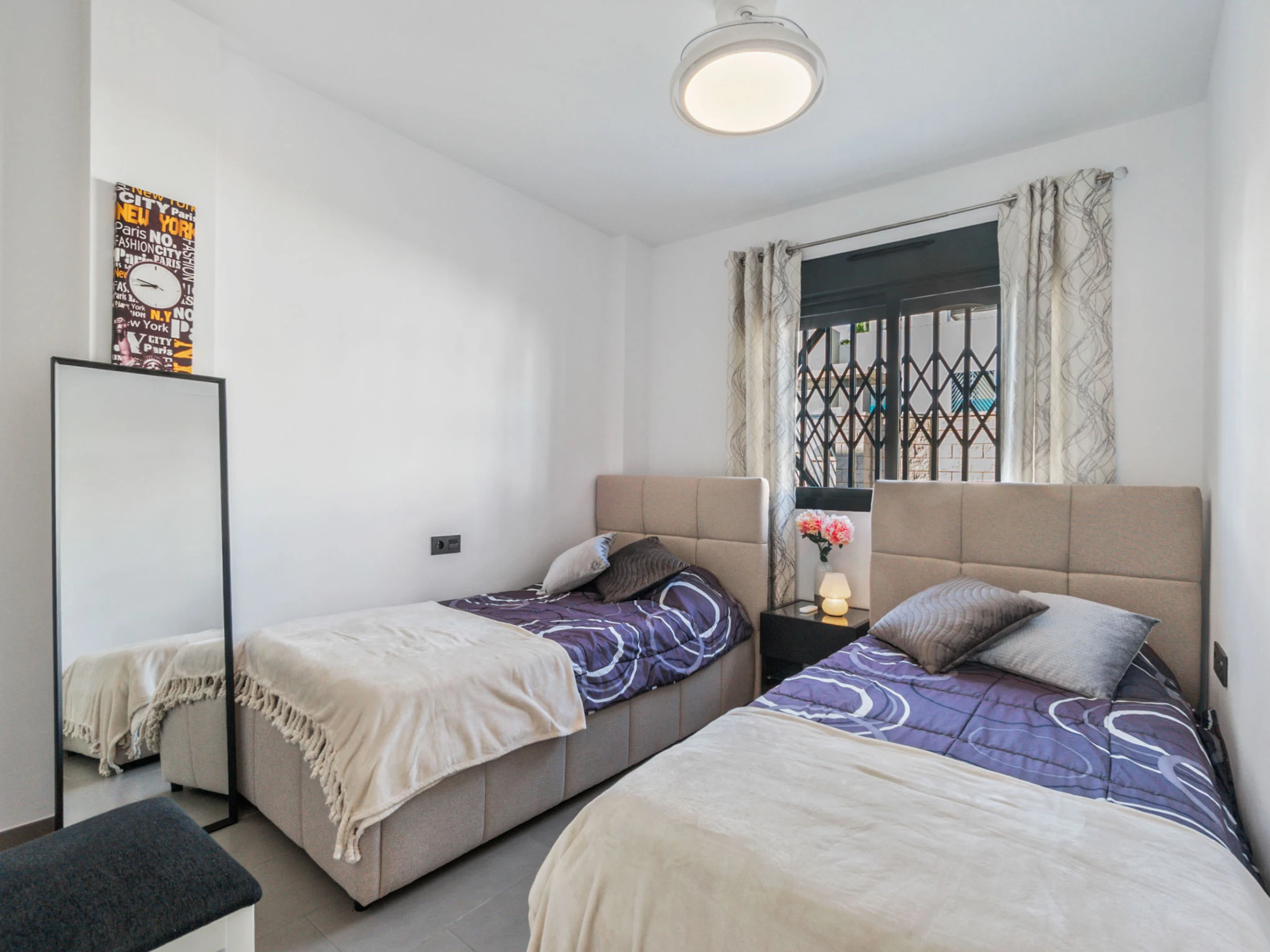 La Zenia: Belle petite résidence moderne "Oasis Beach II". À 1 km du centre de La Zenia, à 3 km du centre de Cabo Roig, situation tranquille, ensoleillée, zone avec peu de trafic, à 2 km de la mer, à 2 km de la plage. En commun: terrain (clôturé), pré, piscine (13 x 8 m, disponibilité saisonnière: [hidden] - [hidden] Bassin pour les enfants, douche extérieure, terrasse. Magasins 350 m, magasin d'alimentation, supermarché 140 m, centre commercial 350 m, arrêt de bus 300 m, plage de sable "Playa La Zenia" 2 km. Port plaisance 4 km, marina 4 km, terrain de golf (12 trous) 3 km. Le propriétaire n'accepte pas les groupes de jeunes.
