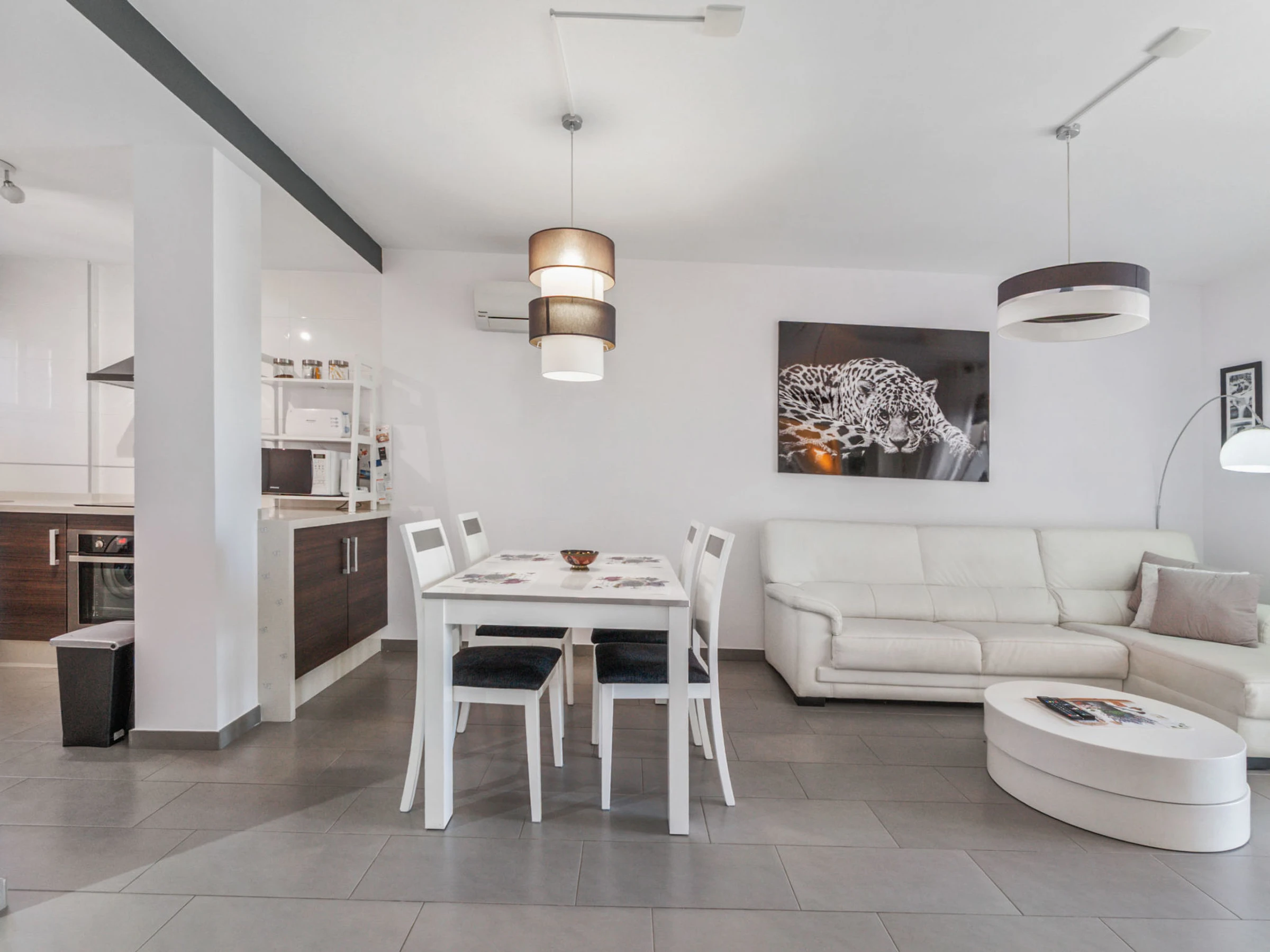 "Oasis Beach II", apt 3 pièces 88 m2, au rez-de-chaussée. Spacieux et clair, aménagement confortable et agréable: séjour/salle à manger avec Télévision numérique, air-conditionné et chauffage à air chaud. Sortie sur la terrasse, sur la piscine. 1 chambre avec 1 grand-lit (1 x 140 cm, longueur 190 cm), douche/WC, air-conditionné et chauffage à air chaud. 1 chambre avec 2 lits (90 cm, longueur 200 cm). Cuisine ouverte (four, 3 plaques vitrocéramiques, grille-pain, bouilloire électrique, micro-ondes, cafetière électrique). Bain/WC. Terrasse. Meubles de terrasse, place pour s'asseoir. Vue sur la piscine. A disposition: lave-linge, fer à repasser, sèche-cheveux. Internet (Connexion WIFI, gratuit). Veuillez noter: maison non-fumeur. [hidden] // Reg. Nr.: ESFCTU00000305800087446300000000000000000[hidden]8