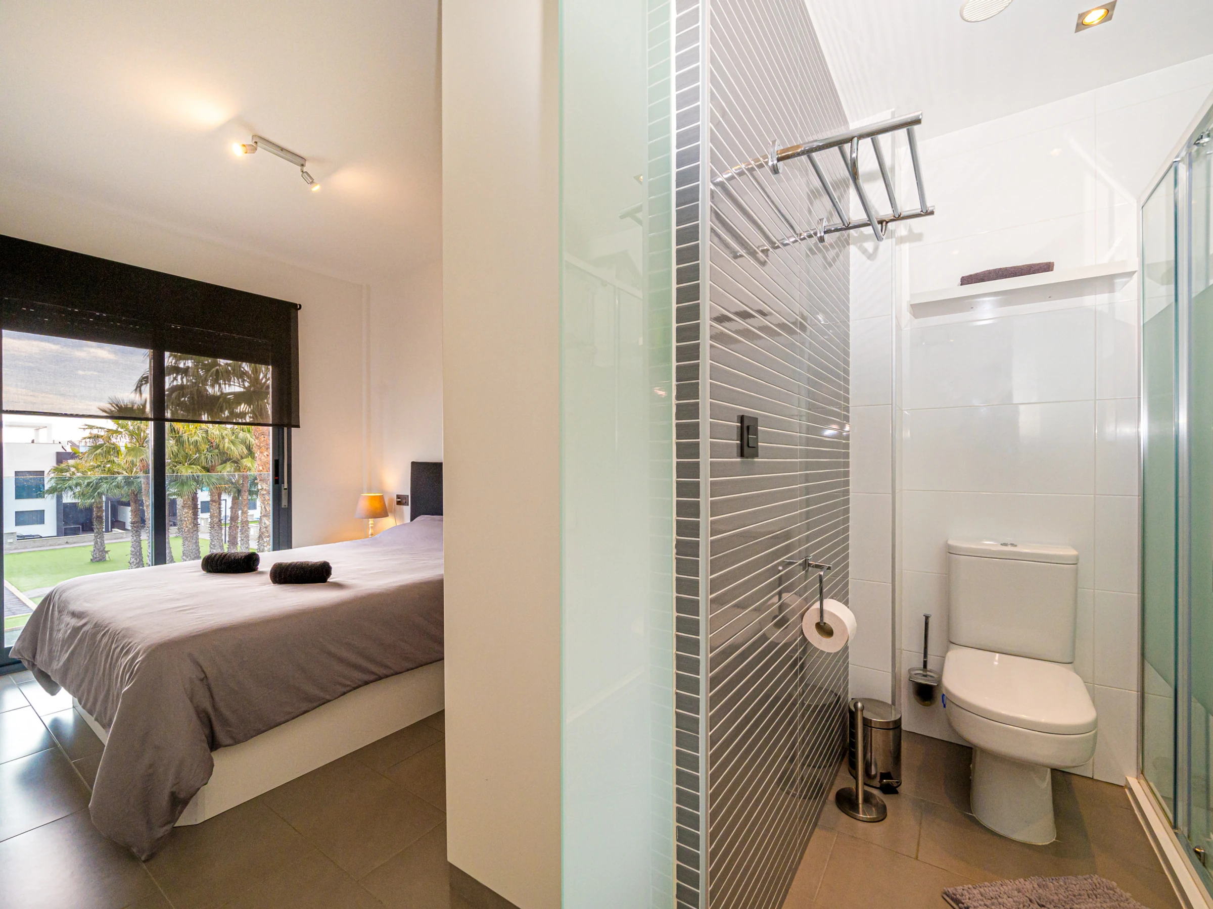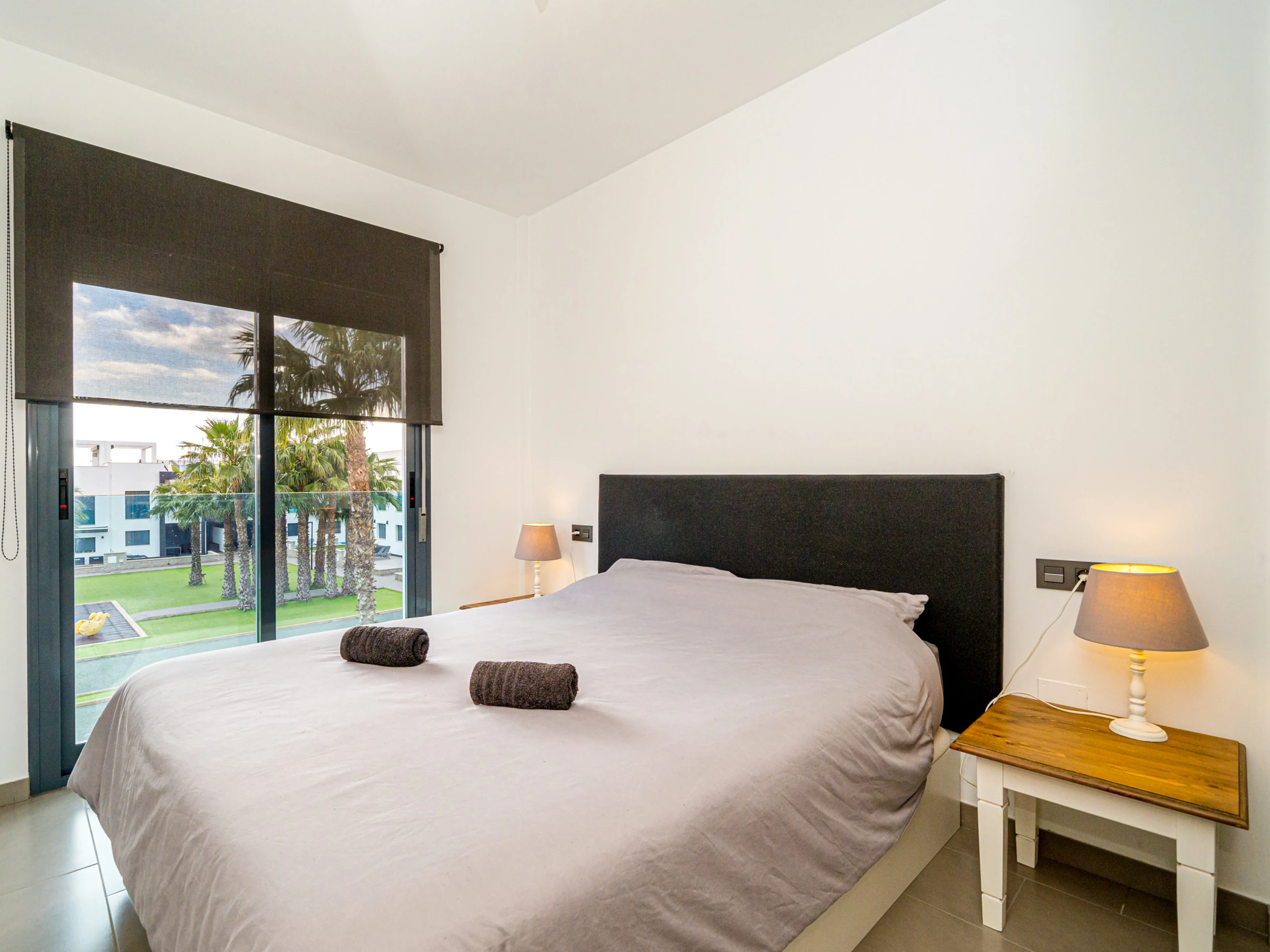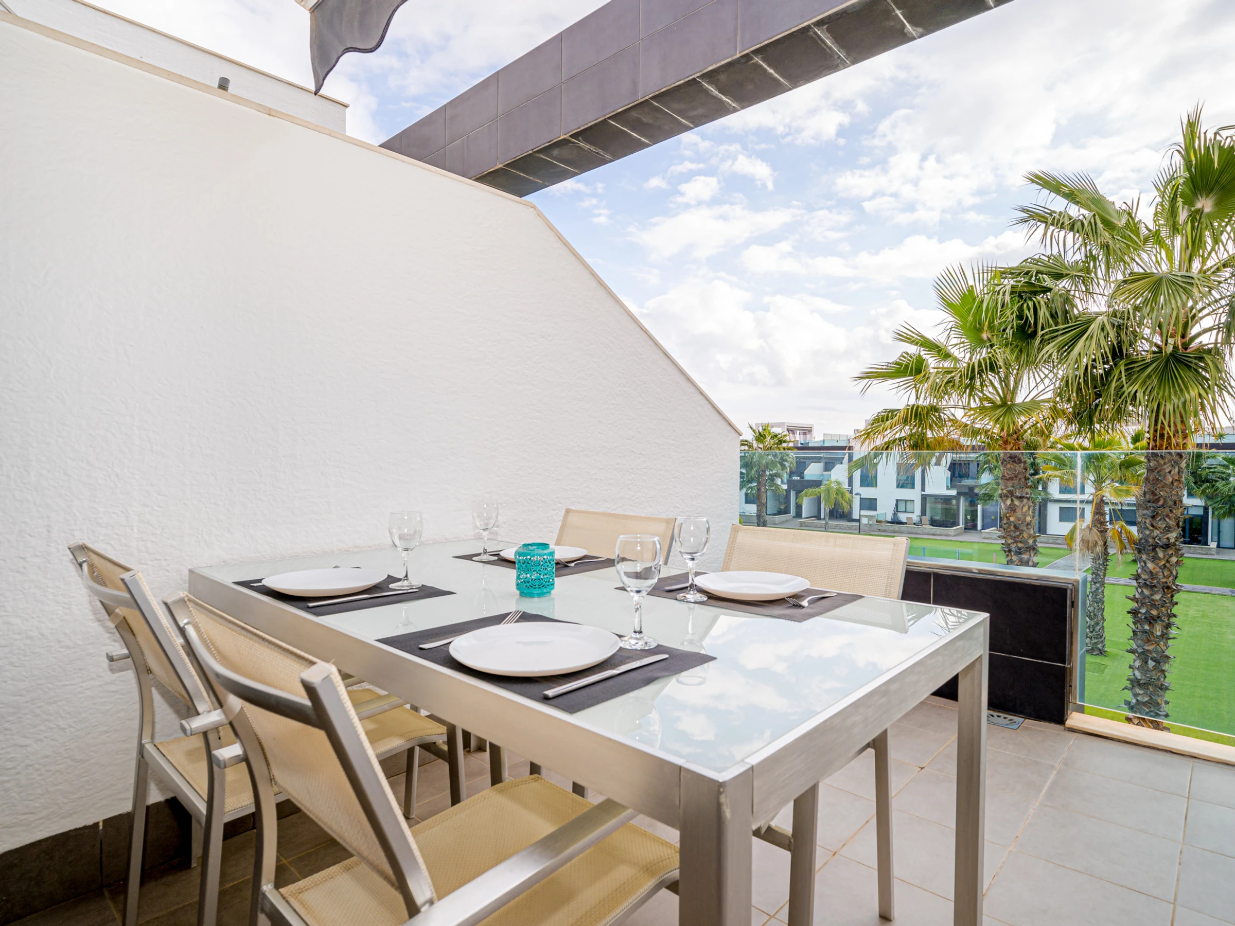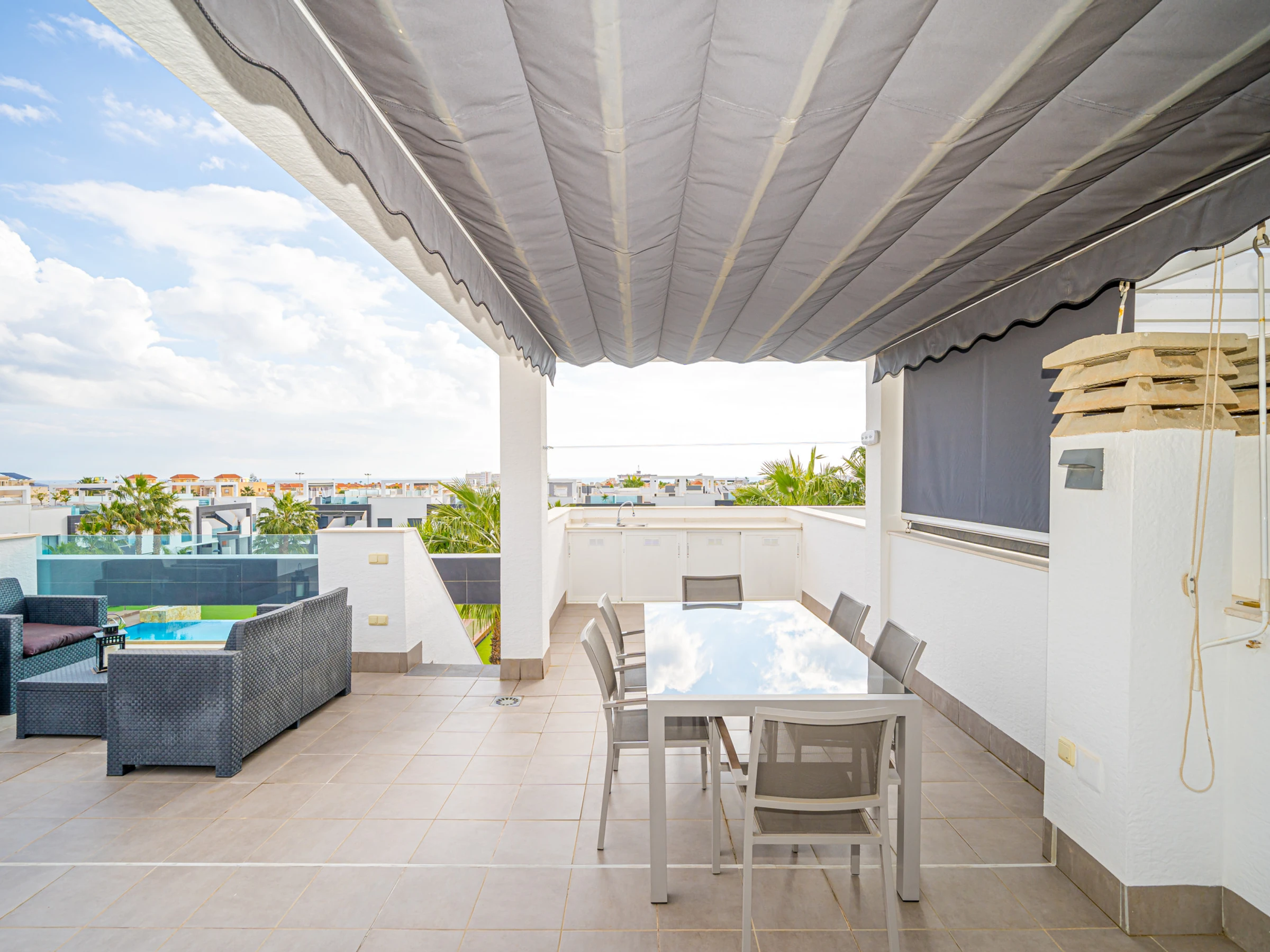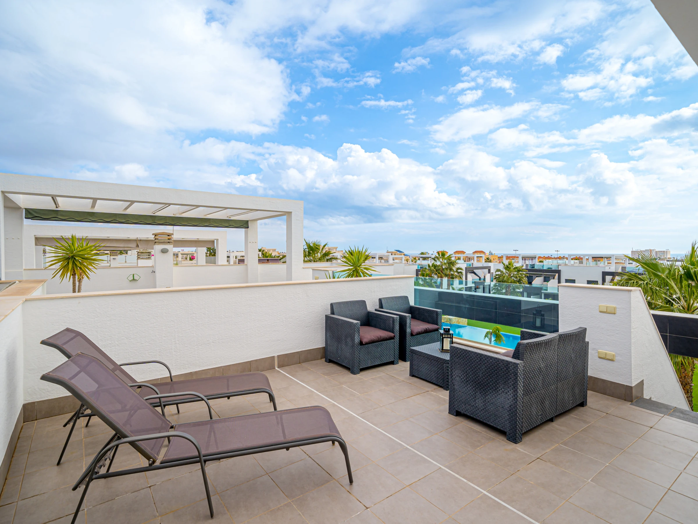 Elle dispose de mobilier de jardin, 60 m² de terrasse, lave-linge, fer à repasser, accès internet (wifi), zone pour les enfants, jacuzzi, chauffage pompe à chaleur, climatisation dans tout le logement, piscine collective, parking couvert même bâtiment, 1 Télévision, tv satellite (Langues: Espagnol, Français).