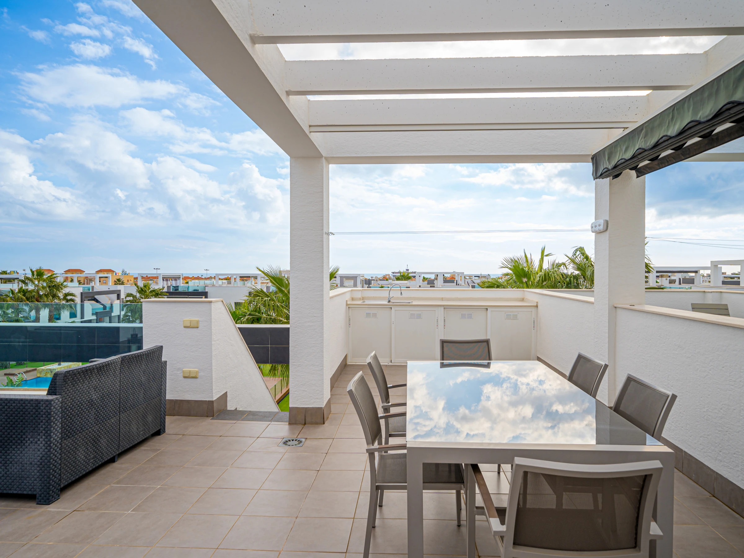 La location se trouve à 0 m de la ville, 50 m du super-marché, 50 m du restaurant, 1 km de la plage de sable "Playa La Zenia", 3 km du domaine de Golf "Golf Villamartin", 45 km de l'aéroport, 45 km de l'aéroport et il est situé dans une zone idéale pour familles zone et près de la mer.