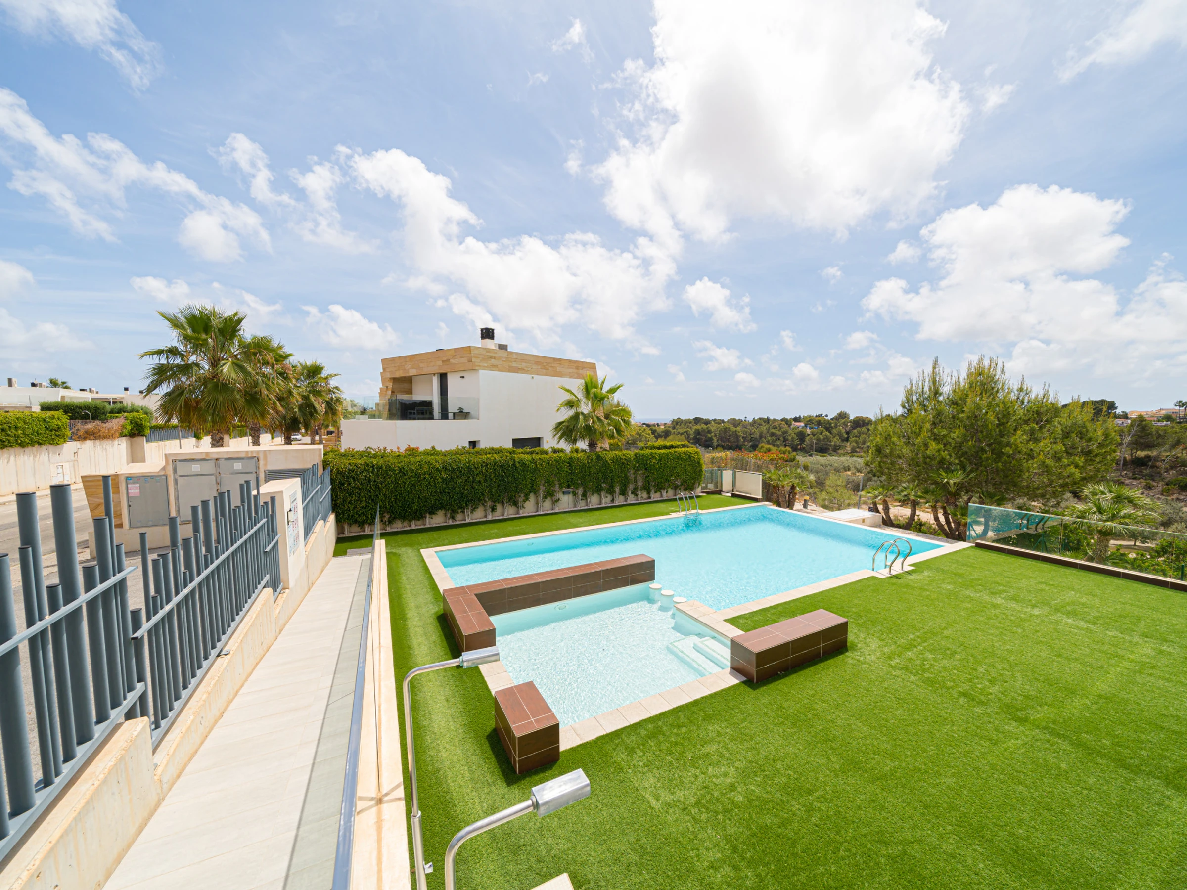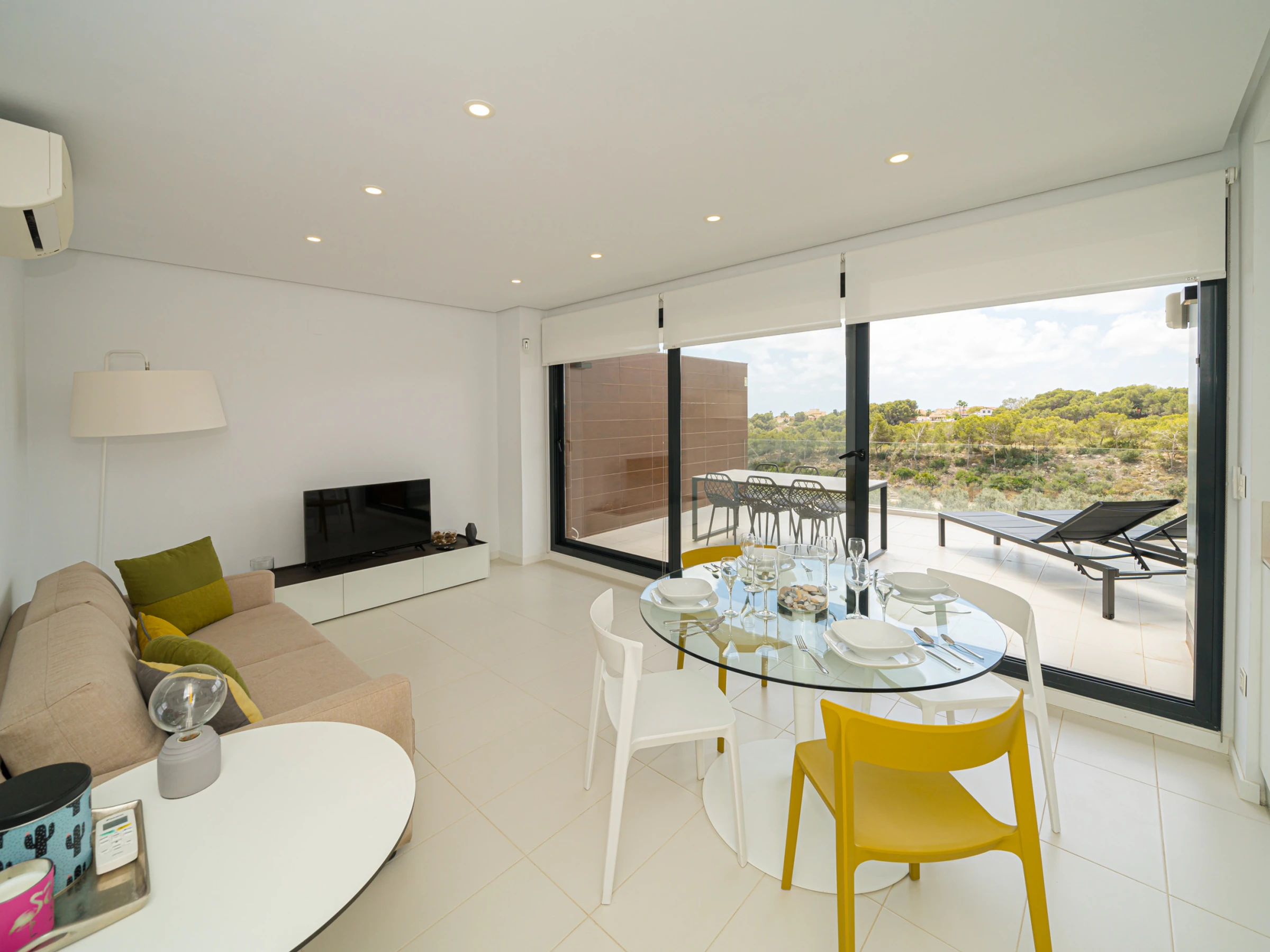 Elle dispose de mobilier de jardin, 30 m² de terrasse, lave-linge, fer à repasser, accès internet (wifi), sèche-cheveux, zone pour les enfants, chauffage central, climatisation dans tout le logement, piscine collective, parking extérieur même bâtiment, 1 Télévision, tv satellite (Langues: Espagnol, Anglais, Allemand, Hollandais, Français, Russe, Suédois, Norvégien).
