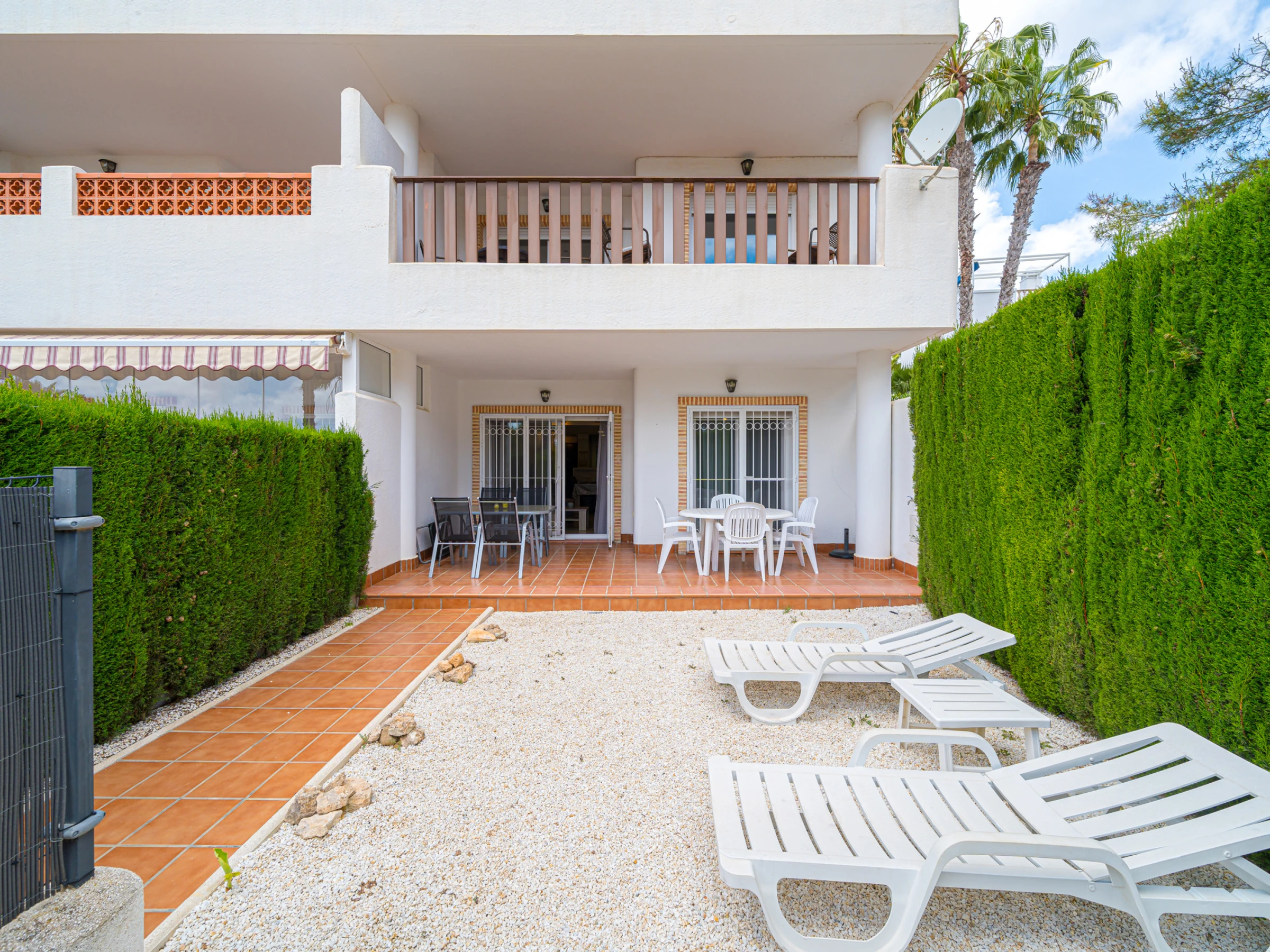La location se trouve à 500 m de la ville, 500 m du super-marché, 500 m du restaurant, 1 km du domaine de Golf, 5 km de la plage de sable, 45 km de l'aéroport "Alicante", 55 km de l'aéroport "Murcia" et il est situé dans une zone idéale pour familles zone et près de la mer.