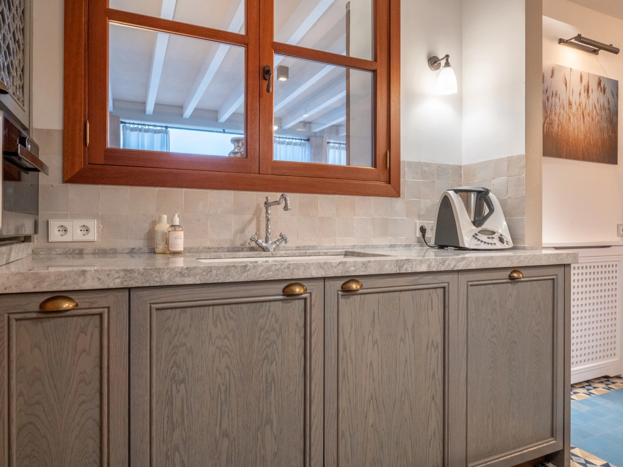 La cuisine, est équipée avec réfrigérateur, four, lave-vaisselle et cafetière.