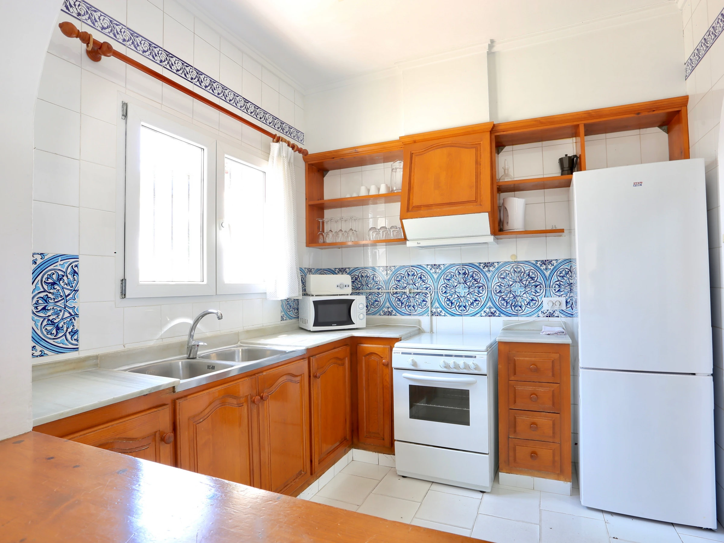 La cuisine, est équipée avec réfrigérateur, micro-ondes, four, congelateur, lave-linge, vaisselle/couvert, ustensiles/cuisine, cafetière, grille pain, bouilloire et presse-agrumes.