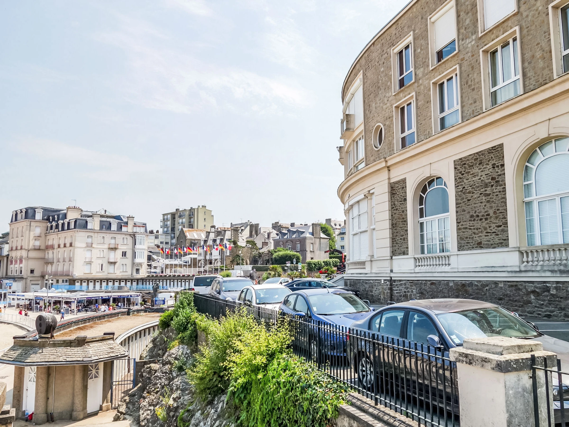 Résidence "La Plage". Au centre de Dinard, situation centrale, à 20 m de la mer, accès direct à la plage. Parking public possible dans la rue. Magasins 100 m, magasin d'alimentation 270 m, supermarché 450 m, centre commercial 4 km, restaurant 80 m, bar 80 m, boulangerie 280 m, café, zone piétonne 10 m, location de bicyclettes 300 m, arrêt de bus "Le Gallic" 180 m, gare ferroviaire "SNCF de Saint Malo" 12.7 km, ferry "gare maritime du Naye" 12.4 km, plage de sable "L'Ecluse" 20 m, piscine 300 m, piscine couverte 200 m, centre thermal "Thalasso de Dinard" 1.9 km. Port plaisance 1.5 km, terrain de golf (18 trous) 7 km, ecole de voile 600 m, tennis 2 km, tennis couvert 2 km, golf miniature 2.7 km, centre équestre 2.5 km, centre sportif 2.2 km, chemins de randonnées pédestres depuis la maison 10 m. Attractions à proximité: Saint Malo 12 km, Dinan 22 km, Cancale 22 km, Cap Fréhel 35 km, Mont Saint Michel 60 km. La remise des clés a lieu à l’agence de Dinard, 1 km.