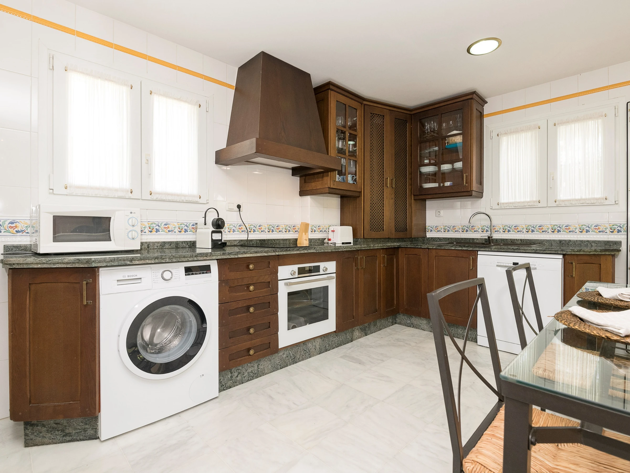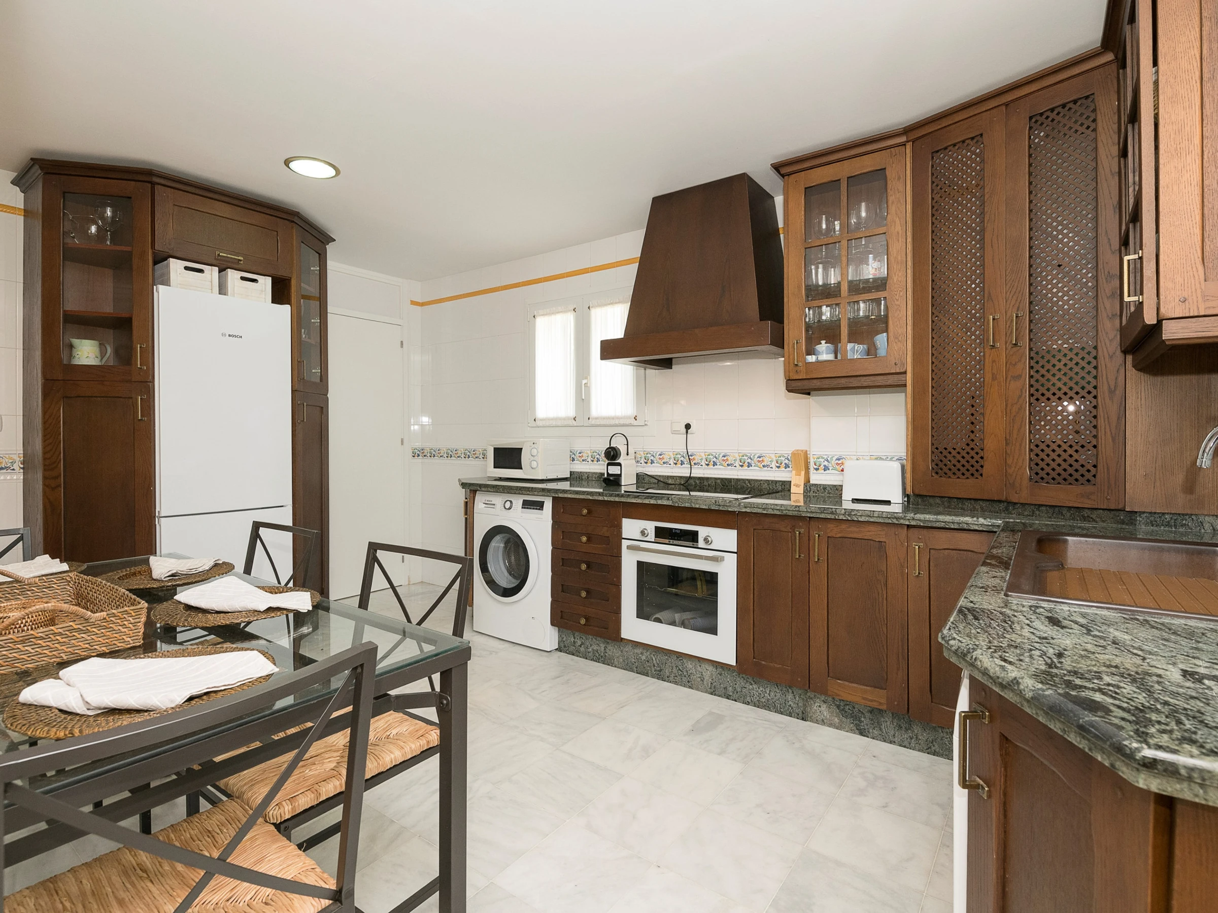 La cuisine, est équipée avec micro-ondes, lave-vaisselle, cafetière et grille pain.