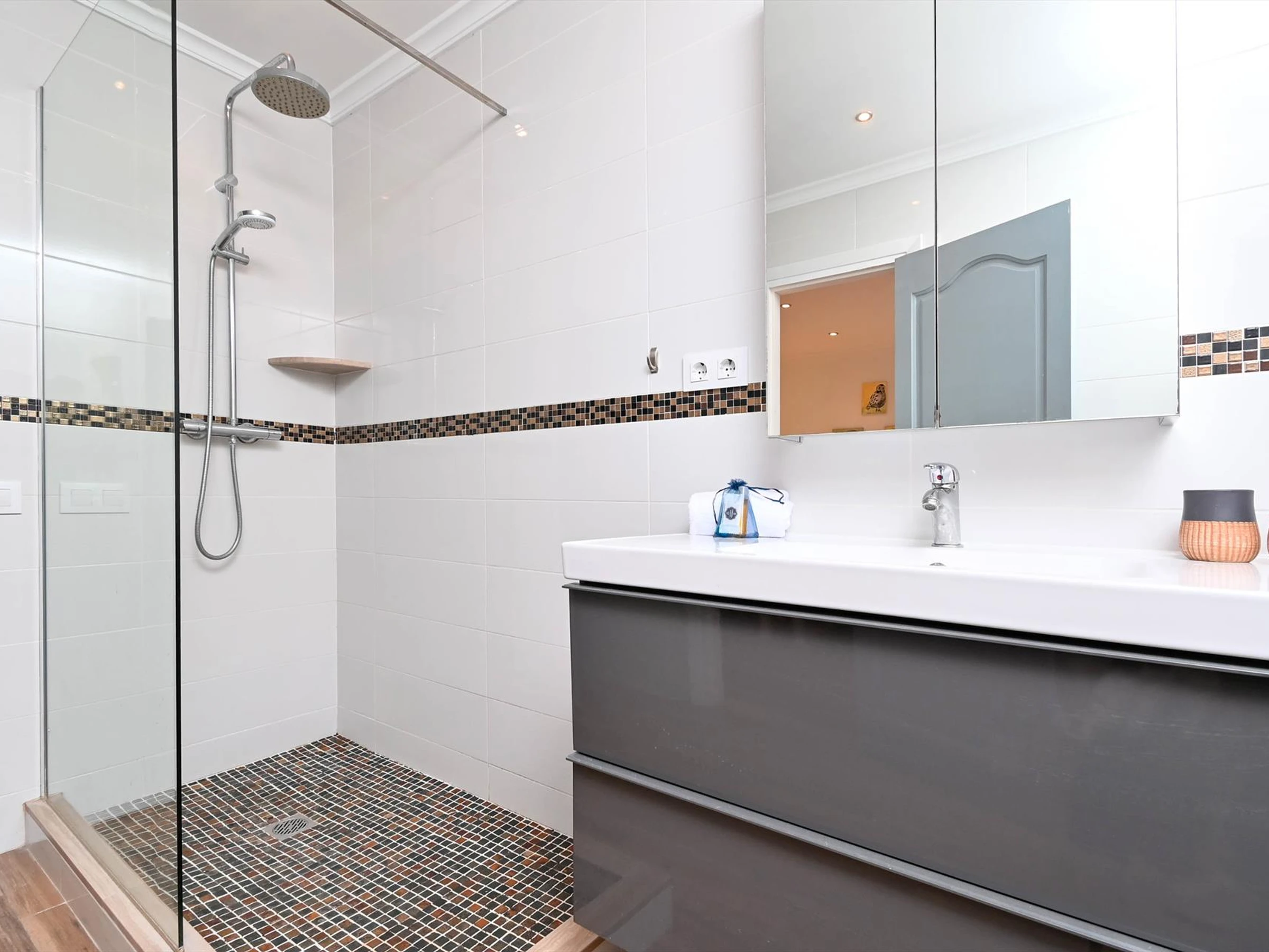 La cuisine, est équipée avec micro-ondes, four, congélateur, lave-vaisselle, cafetière et grille pain.