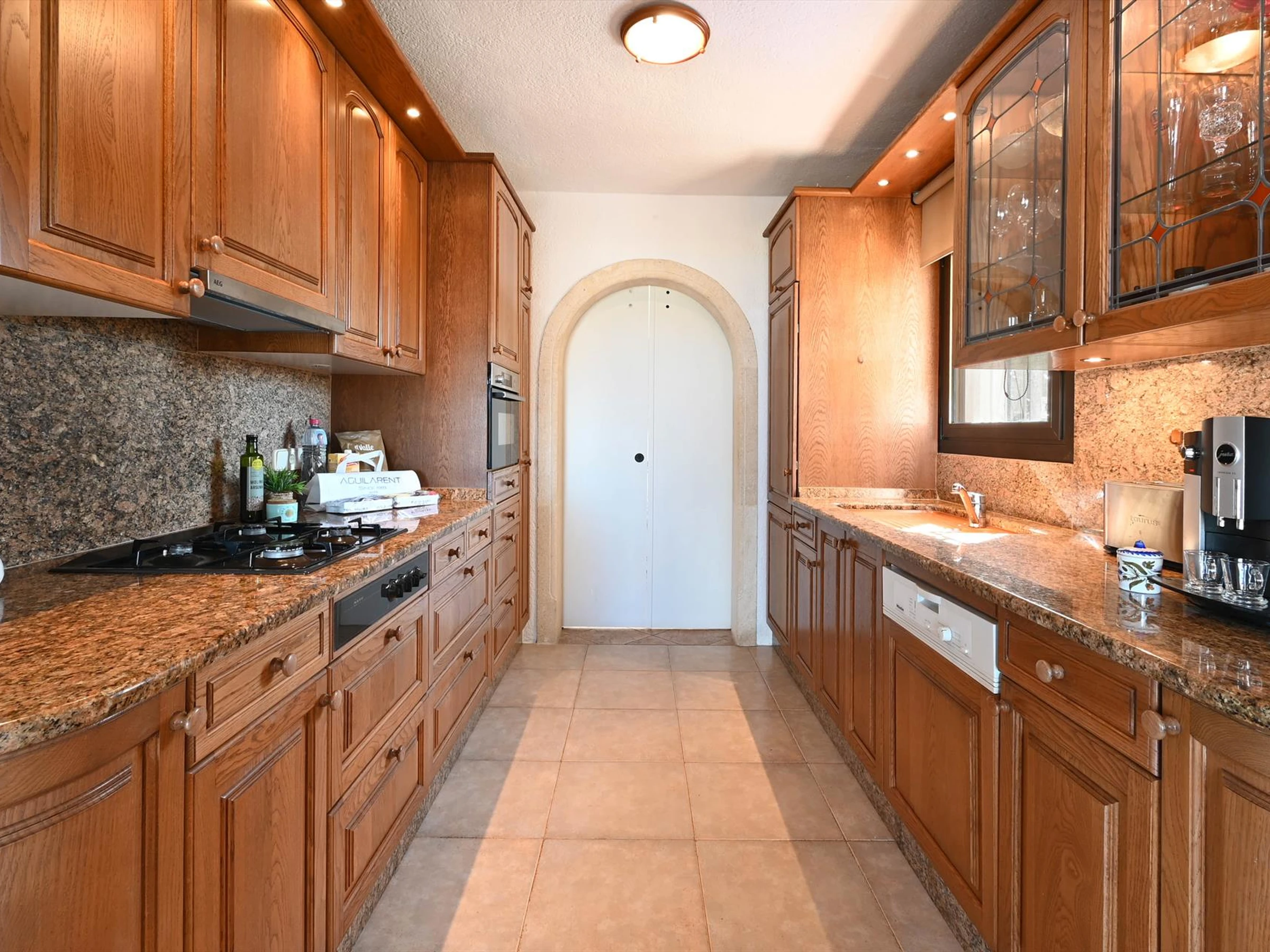 La cuisine, est équipée avec micro-ondes, four, congélateur, lave-vaisselle, cafetière et grille pain.