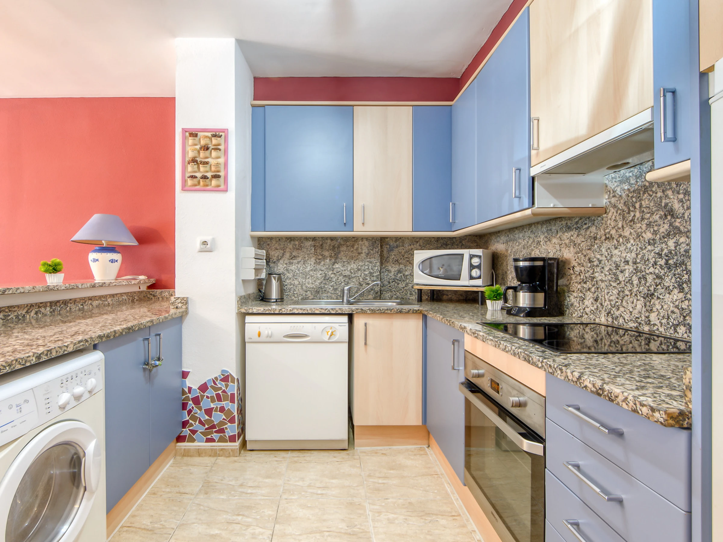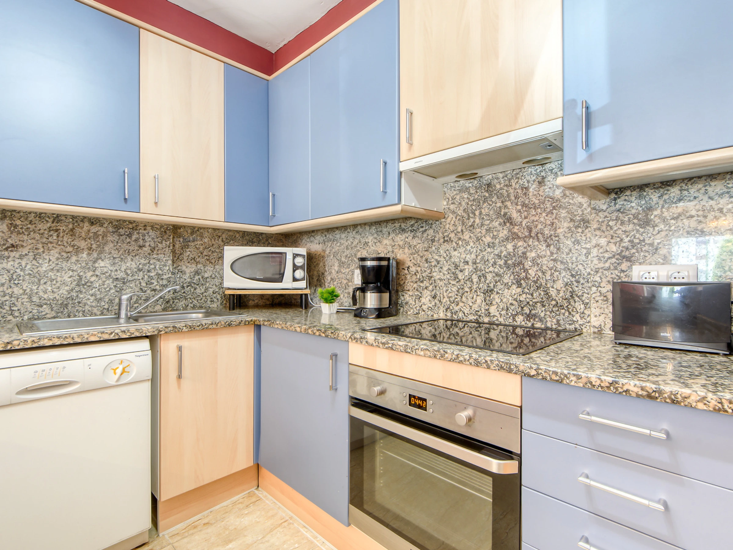 L'appartement est entièrement équipé de toutes les commodités modernes dont vous pourriez avoir besoin. Il dispose d'une kitchenette entièrement équipée avec appareils électriques, notamment un réfrigérateur, un four micro-ondes, un four, un lave-linge et un lave-vaisselle. De plus, le salon est équipé d'une télévision et offre un accès Internet Wi-Fi pour vous garder connecté pendant votre séjour.