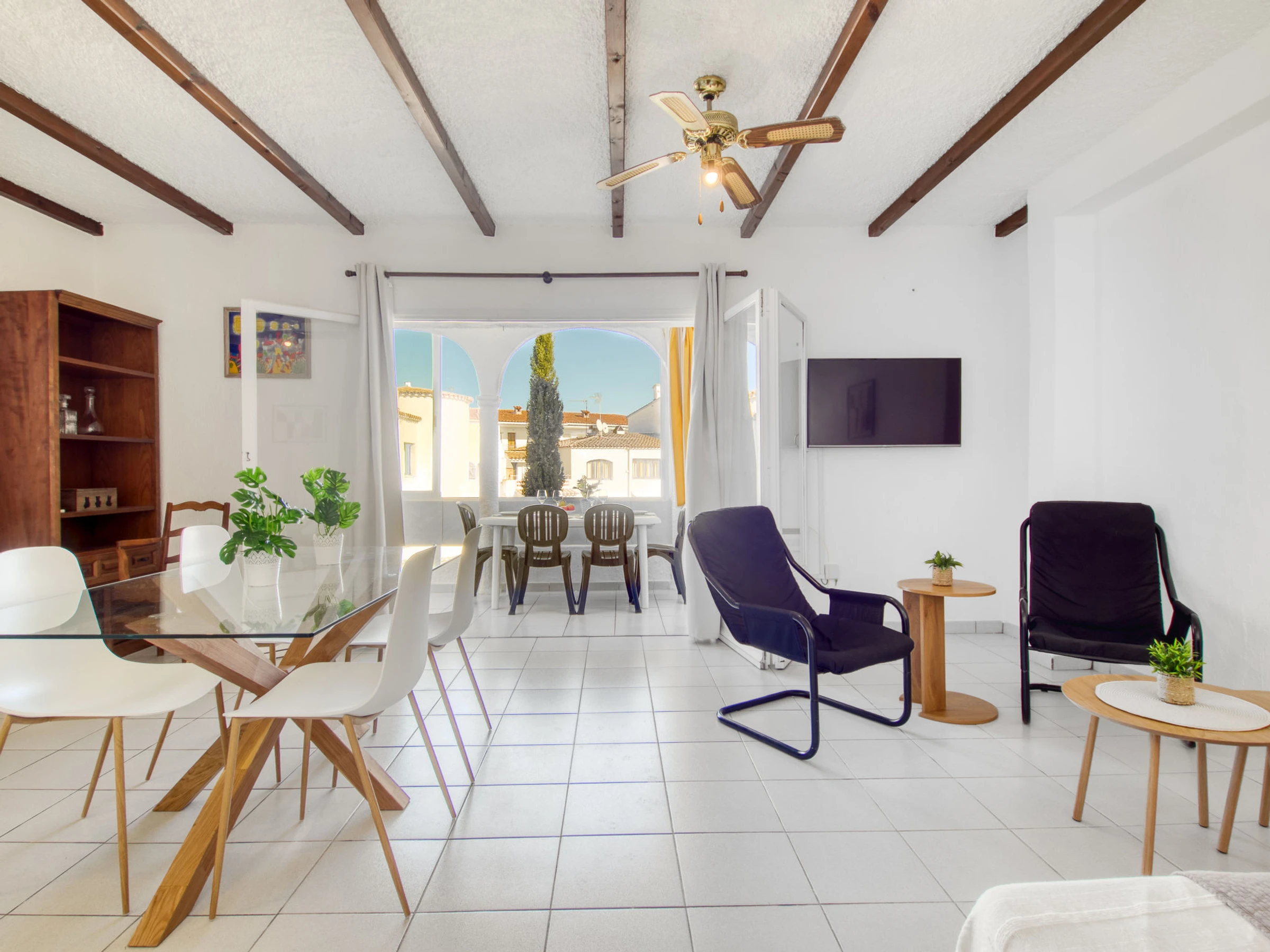 Petite résidence "Las Chabolas", de 3 étages. Dans le quartier de Puerto Deportivo, à 300 m du centre d'Empuriabrava, situation ensoleillée, excellente situation: centrale mais tranquille, à 600 m de la mer, à 800 m de la plage, juste au bord du canal, route à traverser. En commun: piscine rectangulaire cloturée (7 x 10 m, profondeur 180 cm, disponibilité saisonnière: [hidden] - [hidden] Douche extérieure. Infrastructures de la résidence: réduit pour bicyclettes. Magasin d'alimentation, supermarché, centre commercial 300 m, restaurant 50 m, bar 100 m, boulangerie 200 m, café 100 m, arrêt de bus "Empuriabrava Cruïlla" 3.4 km, gare ferroviaire "Figueres Renfe Adif" 16 km, plage de sable "Empuriabrava" 800 m. Port plaisance 100 m, terrain de golf (18 trous) 16 km, ecole de surf 1.3 km, ecole de voile 1.3 km, tennis 3 km, golf miniature 800 m, centre équestre 4 km, piste cyclable 1 km. Attractions à proximité: Centro paracaidismo y túnel del viento 2 km, Parque Acuático Aquabrava Roses 6 km, Museo Dalí Figueres 15 km, Casino y castillo de Peralada 12 km, Ruïnas de St. Martí d'Empúries 21 km, Monasterio de Sant Pere de Rodes 23 km. Veuillez noter: sans ascenseur. La remise des clés a lieu à l’agence .