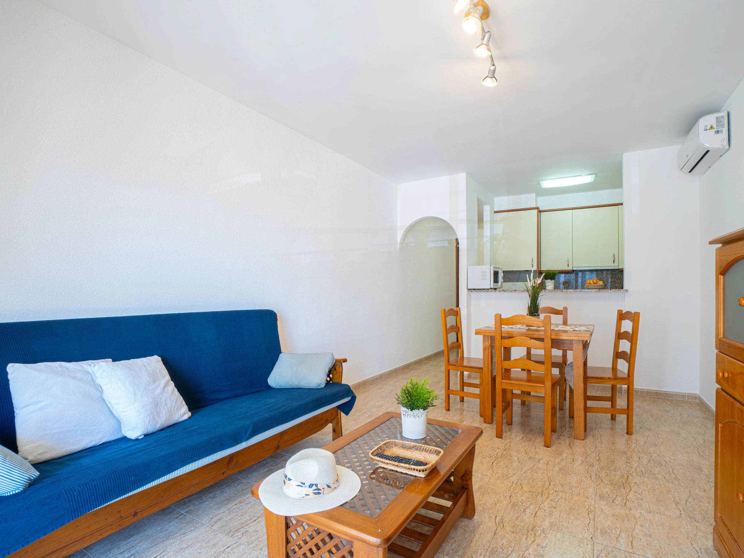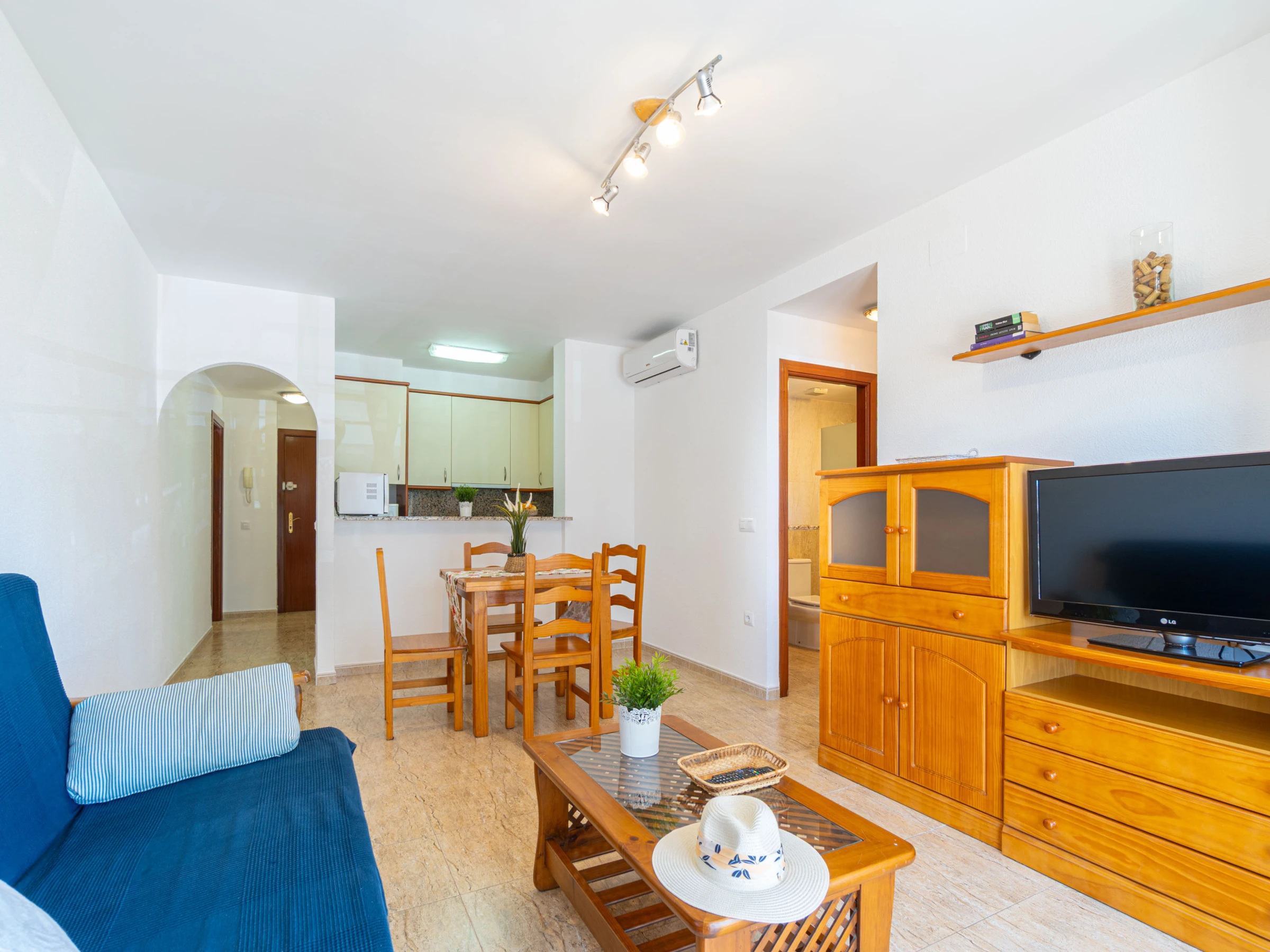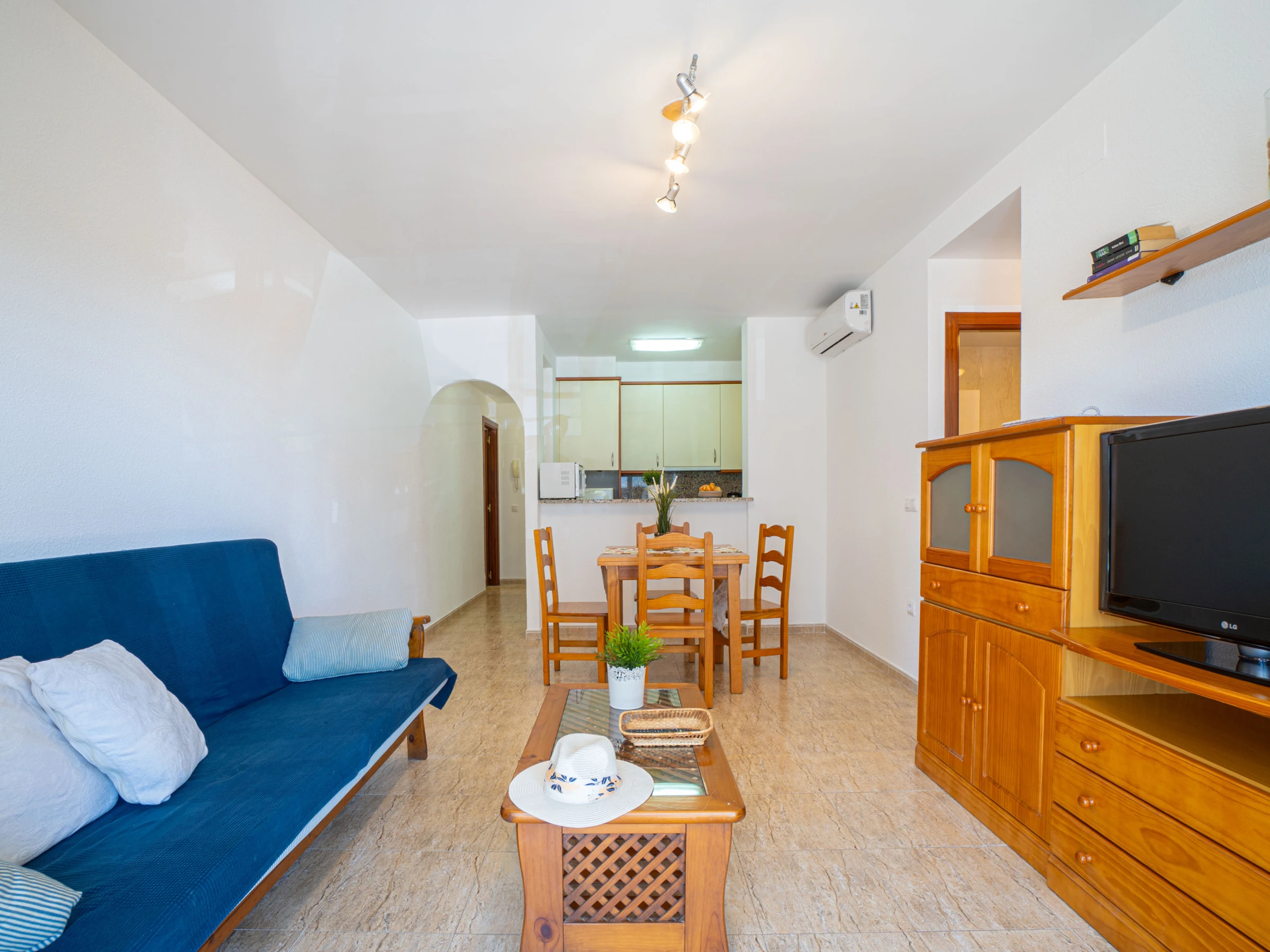 Le logement dispose d’un ascenseur, mobilier de jardin, terrasse, lave-linge, accès internet (wifi), chauffage par pompe à chaleur, climatisation dans le salon et certaines chambres, piscine communautaire et télévision par satellite.
