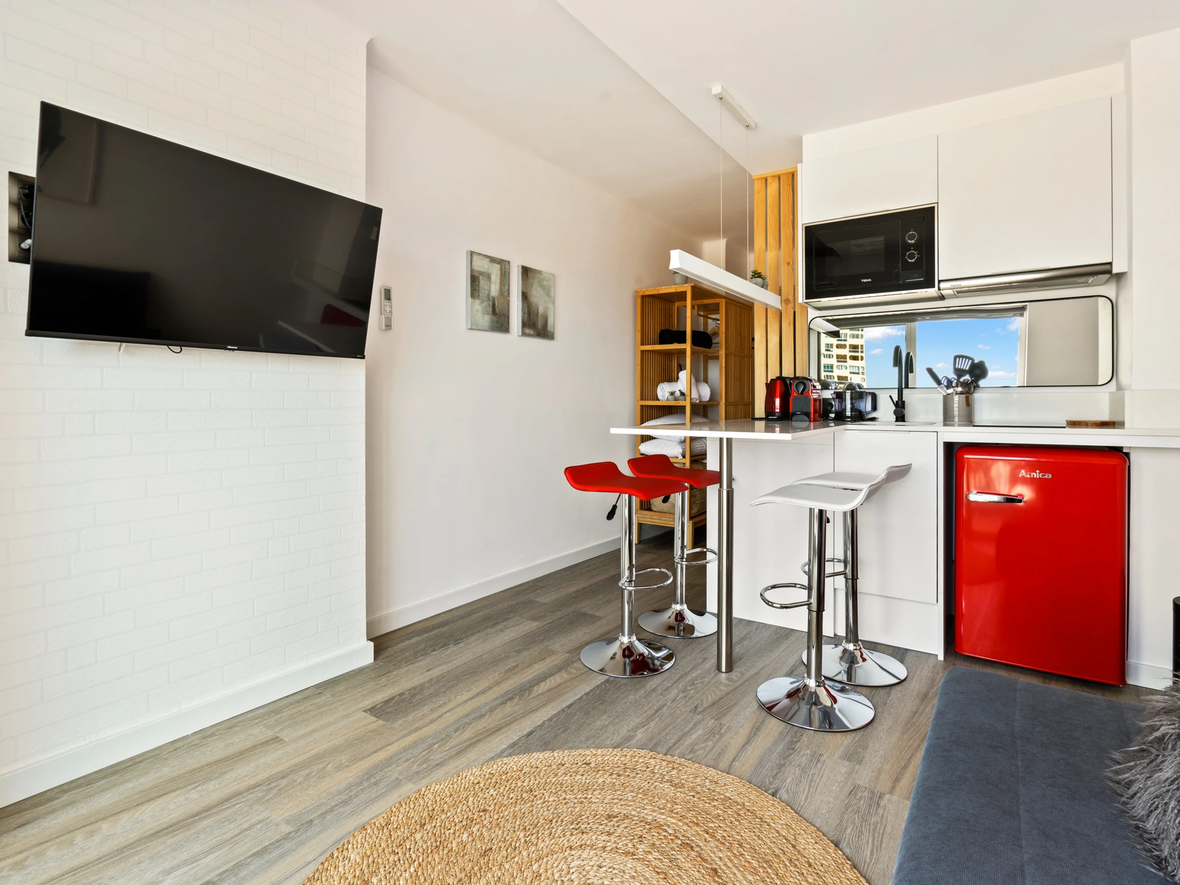Pouvant accueillir quatre personnes, cet appartement est idéal pour ceux qui souhaitent découvrir et profiter de tout ce que la célèbre ville d'Empuriabrava a à offrir. Son emplacement privilégié en première ligne de plage, ainsi que son accueillant salon-salle à manger et une terrasse avec vue sur la mer, en font l'option parfaite pour des vacances inoubliables. La cuisine est équipée de plaques de cuisson, d'un réfrigérateur et d'un micro-ondes, offrant tout le nécessaire pour votre confort.