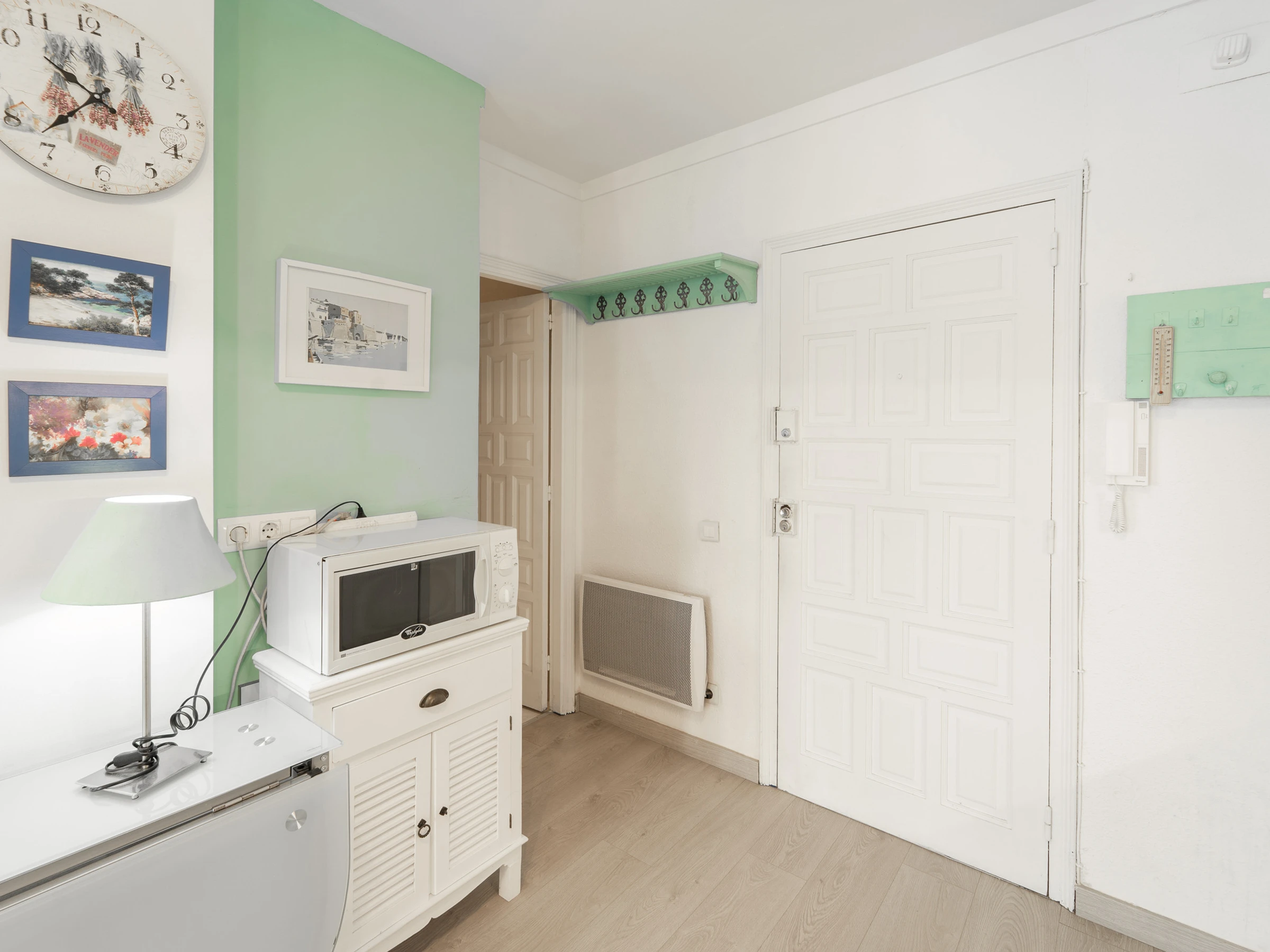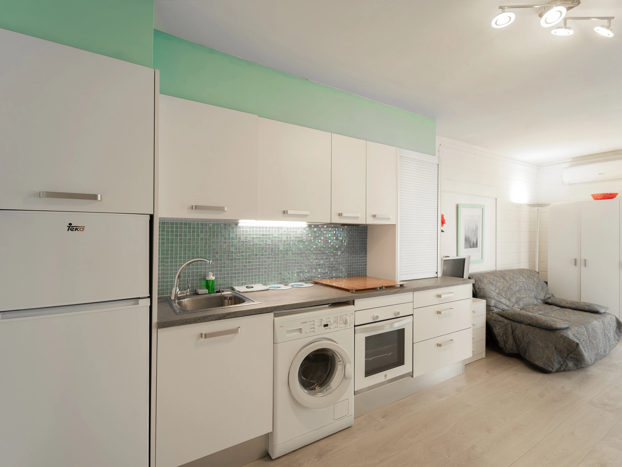 Cet appartement dispose d'une cuisine entièrement équipée avec réfrigérateur, four, micro-ondes, cafetière et grille-pain, parfait pour préparer vos plats préférés. Le studio est doté d'un lit double, d'un canapé, d'une Smart TV et de la climatisation, garantissant votre confort pendant votre séjour.