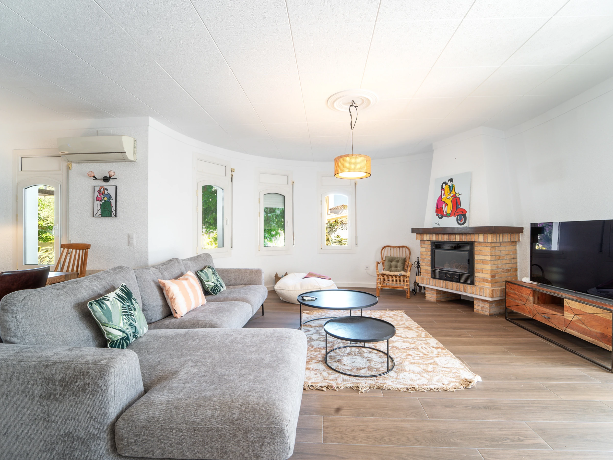 La villa dispose d'un salon spacieux et lumineux avec un canapé confortable, des meubles de qualité et une zone de repas. Quatre chambres ont été conçues pour votre confort : la première et la deuxième chambres ont un lit double, la troisième chambre a également un lit double, et la quatrième chambre dispose de deux lits simples. De plus, la villa possède trois salles de bains entièrement équipées, la climatisation et la Smart TV.