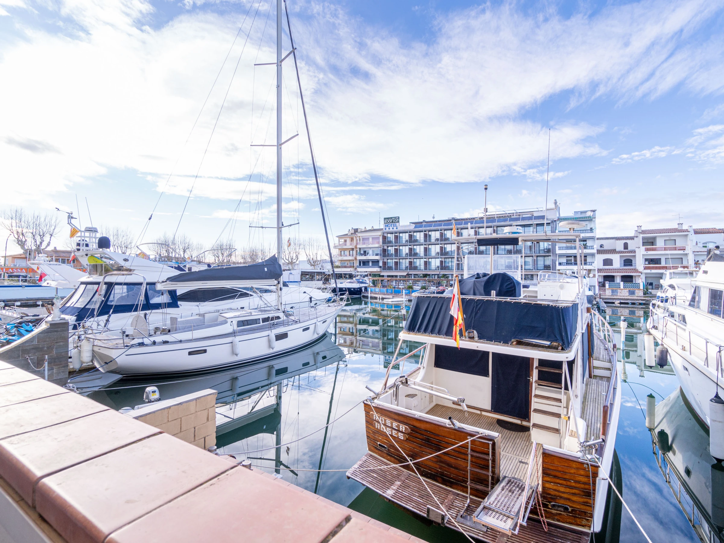 Appartement à Empuriabrava qui possède 1 chambre et capacité pour 4 personnes. Logement de 40 m² confortable. La location se trouve à 150 m du super-marché, 200 m de la plage de sable, 16 km du domaine de Golf "Peralada", 20 km de la gare "Ave/Tgv Figueres", 65 km de l'aéroport "Girona" et il est situé dans une zone idéale pour familles zone et proche du commerce et des restaurants.Elle dispose de mobilier de jardin, terrasse, lave-linge, fer à repasser, accès internet (wifi), climatisation dans le salon et certaines chambres, TV, tv satellite (Langues: Espagnol, Allemand, Français).La cuisine américaine, à vitrocéramique, est équipée avec réfrigérateur, micro-ondes, four, congélateur, lave-vaisselle, vaisselle/couverts, ustensiles/cuisine, cafetière, grille pain et bouilloire.