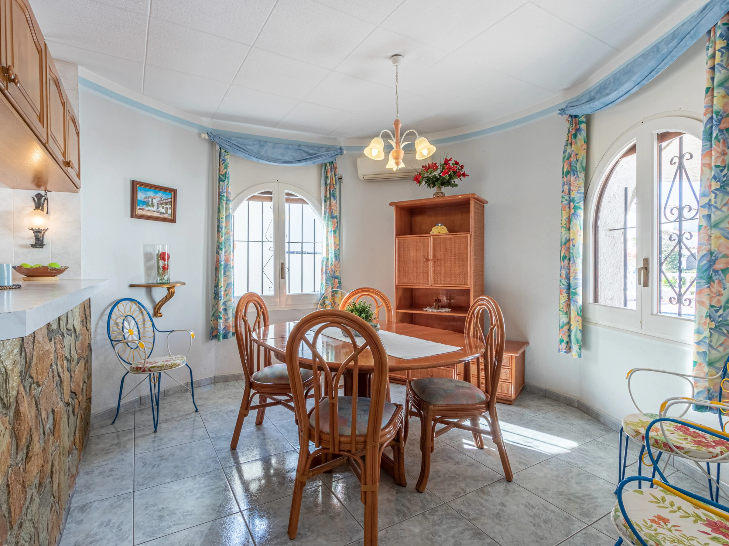 Elle se situe à 2 km de la plage de sable “Empuriabrava”, 2 km du supermarché, 16 km du parcours de golf “Peralada”, 20 km de la gare “AVE/TGV Figueres” et 65 km de l’aéroport de Gérone. La villa est située dans un quartier familial, au sein d’une urbanisation.