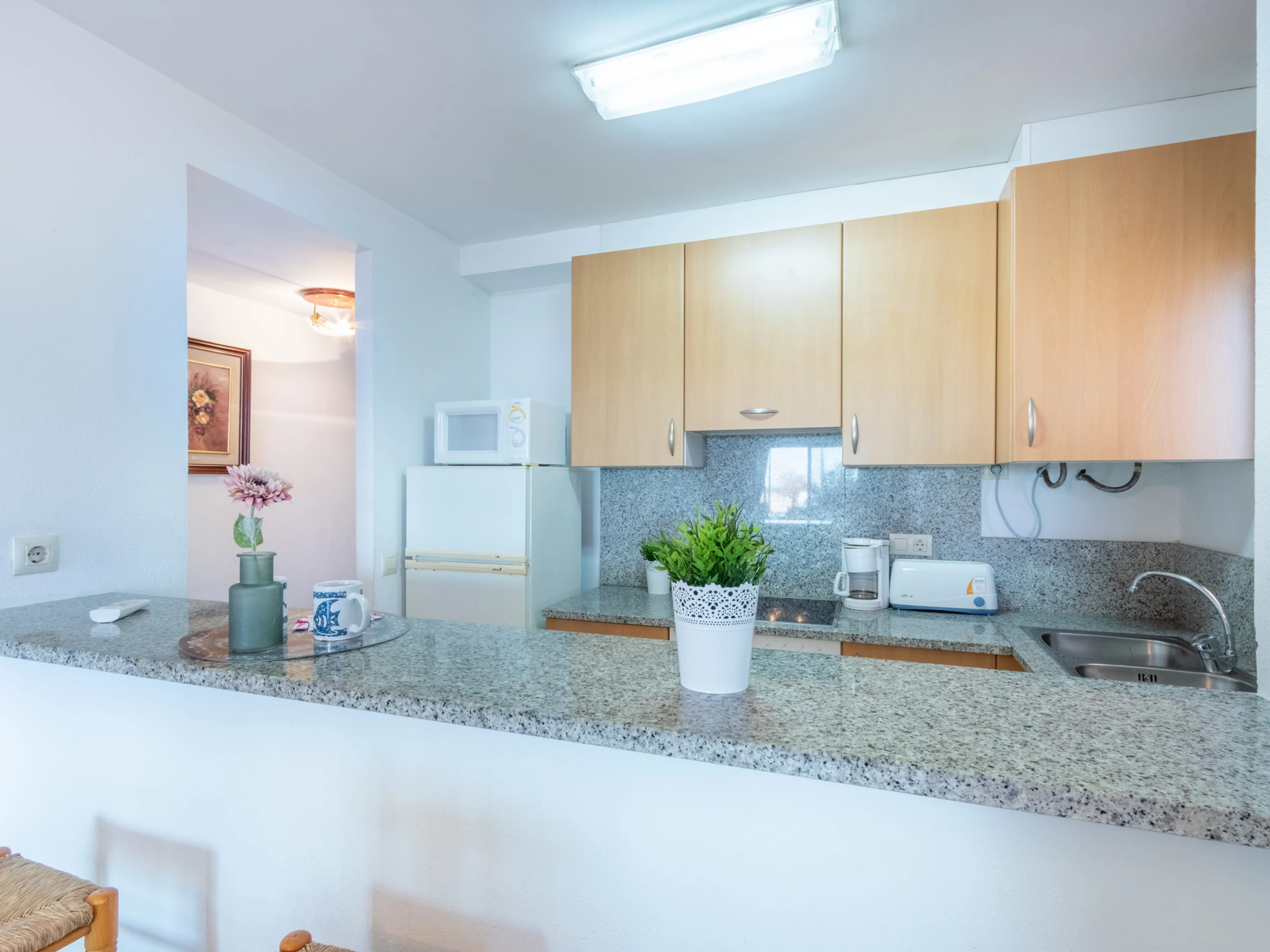 Elle dispose de ascenseur, mobilier de jardin, terrasse, fer à repasser, accès internet (wifi), chauffage pompe à chaleur, climatisation dans le salon et certaines chambres, piscine collective, parking couvert même bâtiment, TV, tv satellite (Langues: Espagnol, Allemand, Français).