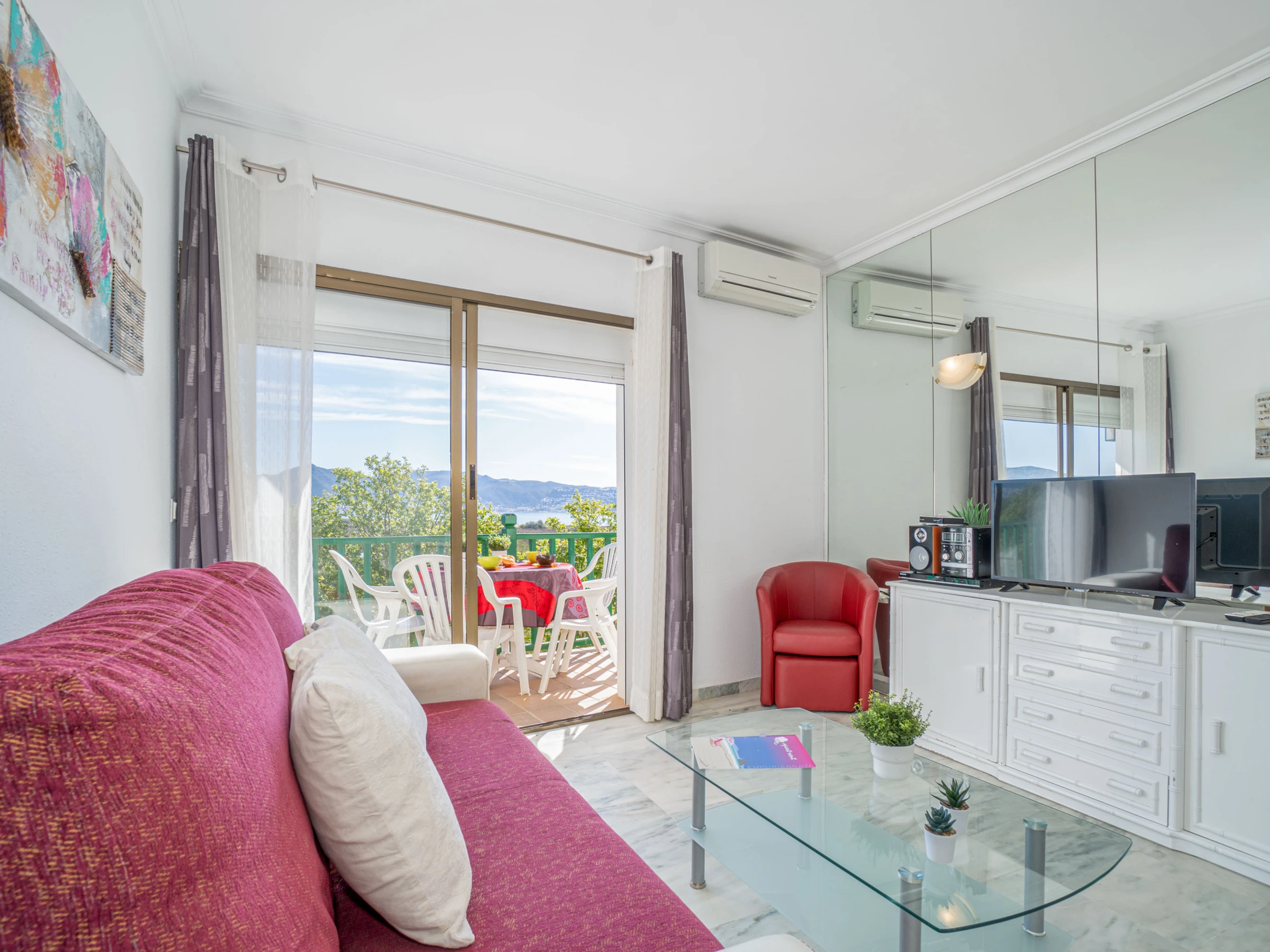Appartement à Empuriabrava avec 1 chambre et capacité pour 4 personnes. Logement de 35 m² confortable et extérieur, avec vue sur la mer et la montagne. La location se trouve à 300 m de la plage de sable, 2 km du super-marché, 16 km du domaine de Golf "Peralada", 20 km de la gare "Ave/Tgv Figueres", 65 km de l'aéroport "Girona" et il est situé dans une zone idéale pour familles zone et dans la zone urbaine.Elle dispose de ascenseur, mobilier de jardin, terrasse, lave-linge, fer à repasser, accès internet (wifi), chauffage pompe à chaleur, climatisation dans le salon, TV, tv satellite (Langues: Espagnol, Allemand, Français), radio, [hidden] cuisine américaine, à vitrocéramique, est équipée avec réfrigérateur, micro-ondes, congélateur, vaisselle/couverts, ustensiles/cuisine et cafetière.