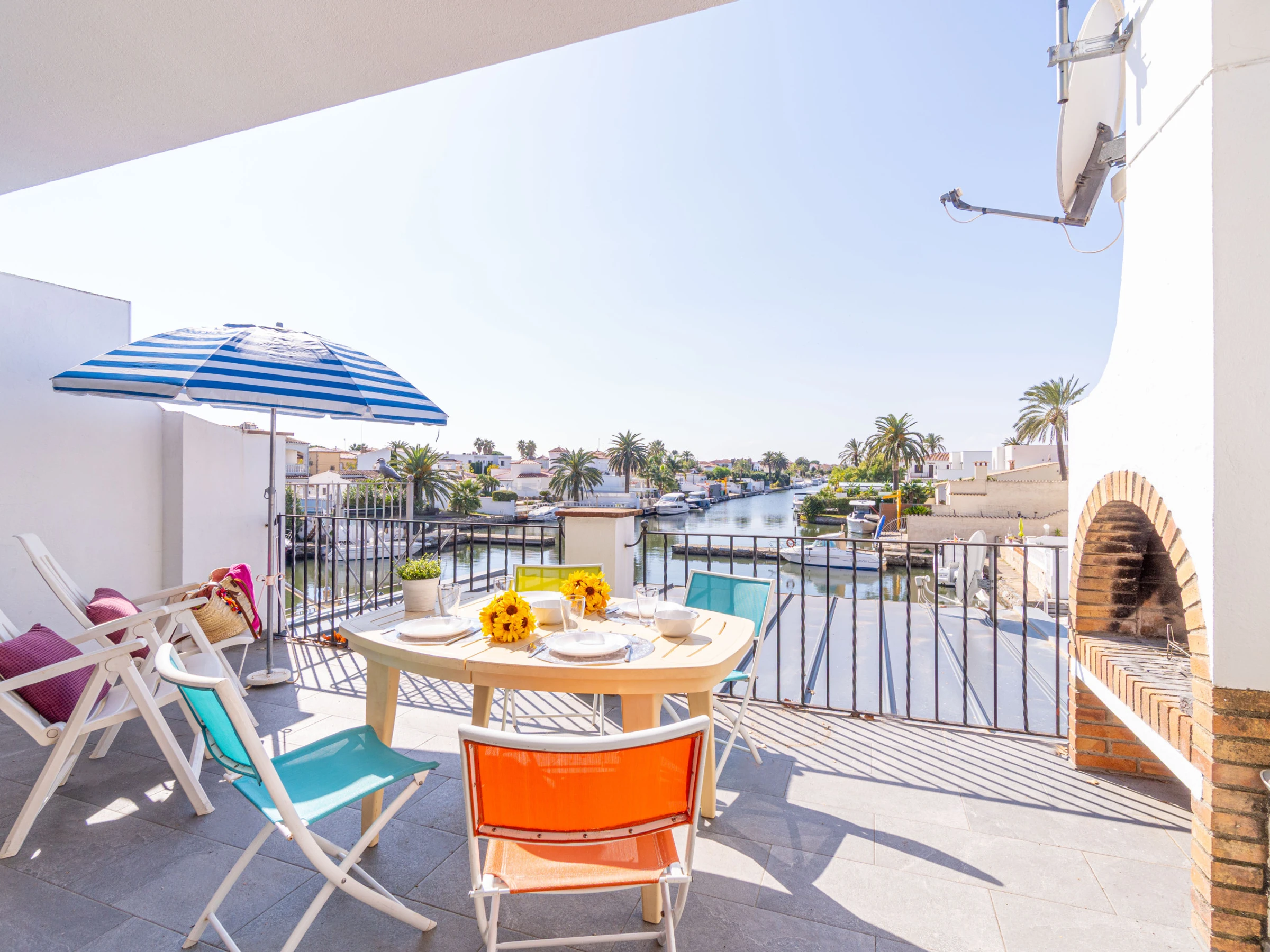 Appartement à Empuriabrava avec 2 chambres et capacité pour 6 personnes. Logement de 60 m² confortable et extérieur. La location se trouve à 1 km du super-marché, 2 km de la plage de sable, 16 km du domaine de Golf "Peralada", 20 km de la gare "Ave/Tgv Figueres", 65 km de l'aéroport "Girona" et il est situé dans une zone idéale pour familles zone et dans la zone urbaine.Elle dispose de mobilier de jardin, terrasse, barbecue, fer à repasser, accès internet (wifi), chauffage pompe à chaleur, climatisation dans le salon, TV, tv satellite (Langues: Espagnol, Allemand, Français).La cuisine américaine, à gaz, est équipée avec réfrigérateur, micro-ondes, four, congélateur, vaisselle/couverts, ustensiles/cuisine, cafetière, grille pain et bouilloire.