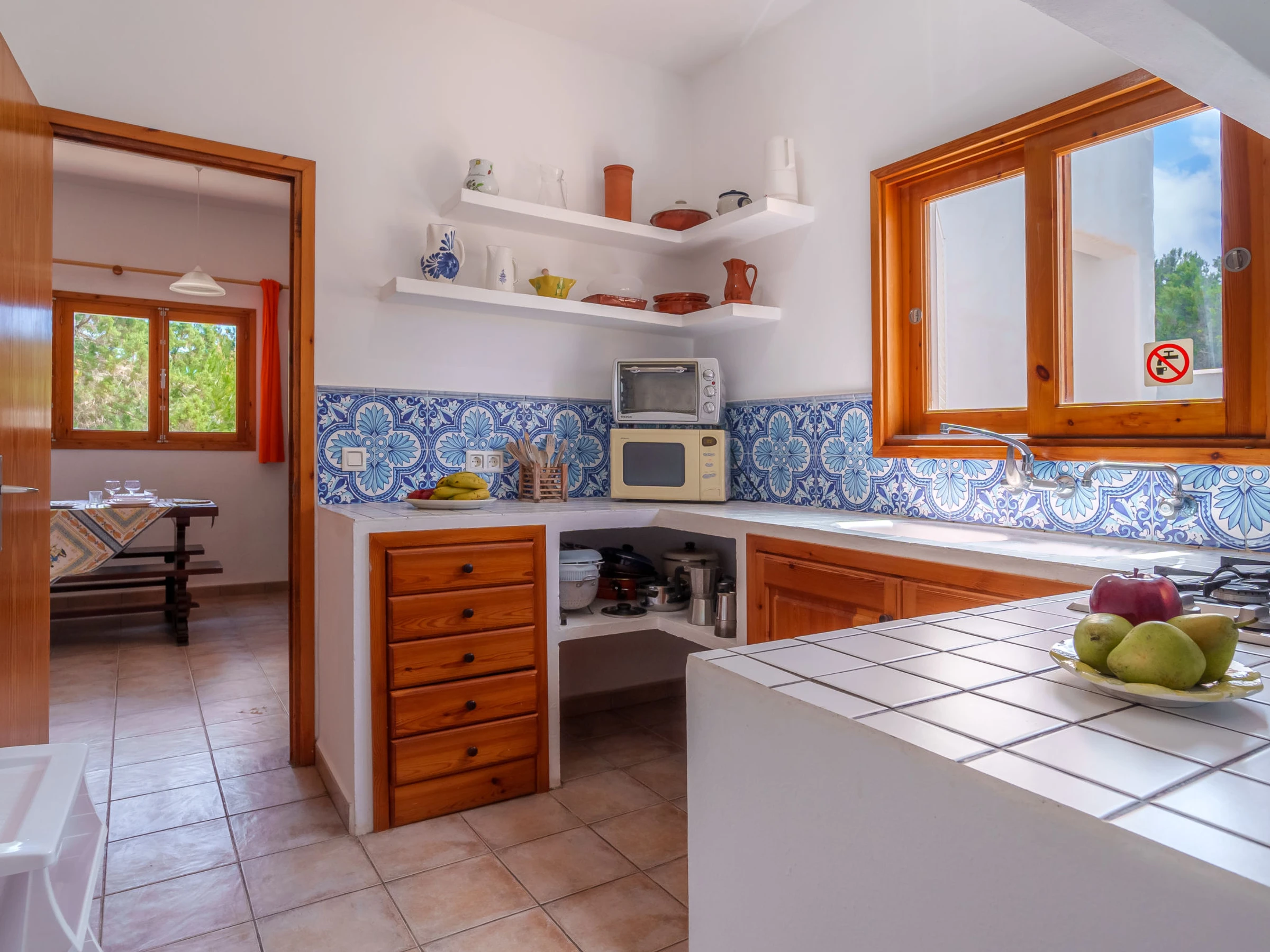 "Es Pujols", maison 5 pièces 100 m2. Logement idéal pour 6 adultes. Aménagement fonctionnel et plaisant: grande salle à manger ouverte avec table pour les repas, Télévision numérique et ventilateur. Sortie sur le jardinet. 1 grande chambre double avec 1 grand-lit (150 cm, longueur 200 cm), ventilateur. 1 grande chambre double avec 2 lits (90 cm, longueur 200 cm), ventilateur. 1 grande chambre double avec 1 grand-lit (150 cm, longueur 200 cm), ventilateur. Cuisine (3 plaques de cuisson, four, lave-vaisselle, grille-pain, bouilloire électrique, micro-ondes, congélateur, cafetière électrique). 2 douches/WC. Vue sur la mer, le jardin, les alentours, la localité et la forêt. A disposition: lave-linge, fer à repasser, chaise haute pour enfant, lit bébé jusqu'à 2 ans, sèche-cheveux. Internet (Connexion WIFI, gratuit). Adapté(e) aux familles. [hidden] // Reg. Nr.: ESFCTU0000070370000283240000000000000000000000[hidden]2