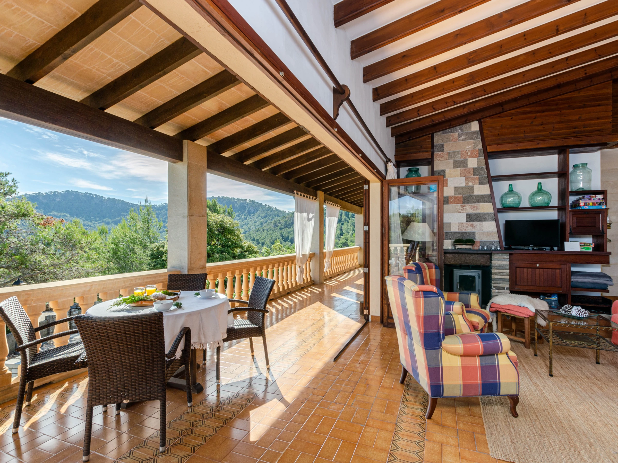 La région de Tramuntana est un paradis pour les randonneurs, les cyclistes et les amateurs d'une Majorque différente, tranquille et en pleine nature. Le monastère de Lluc est un lieu emblématique et en même temps un point de départ pour de nombreux itinéraires de randonnée. Dans les environs, vous pourrez visiter des villages pittoresques comme Valldemossa, Sóller et Fornalutx et profiter des criques de montagne comme Sa Calobra et Cala Deià. À une demi-heure de route, vous atteindrez Inca, une ville avec de nombreux services, supermarchés et bars. Une voiture est nécessaire.