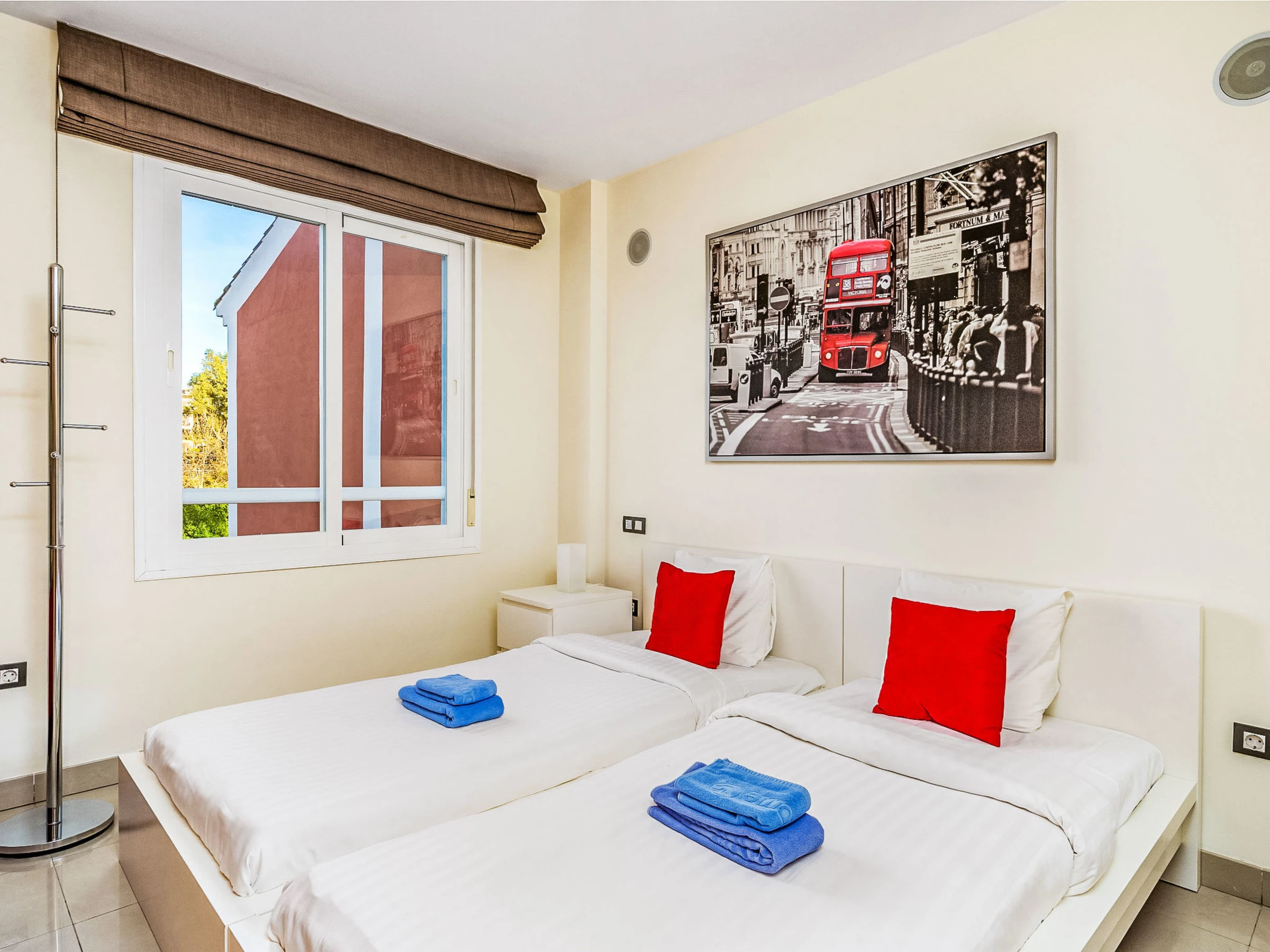 "Cortijo del Mar - Coral Nest", apt 4 pièces 129 m2 sur 2 niveaux, sous le toit. Spacieux et clair, aménagement confortable et agréable: séjour/salle à manger avec Télévision numérique. Sortie sur la terrasse. 1 chambre avec 2 lits (90 cm, longueur 200 cm). 1 chambre avec 1 grand-lit (180 cm, longueur 200 cm). Cuisine (four, lave-vaisselle, 4 plaques vitrocéramiques, grille-pain, bouilloire électrique, micro-ondes, congélateur, cafetière électrique). 2 bains/WC. À l'étage supérieur: 1 chambre avec 1 grand-lit (180 cm, longueur 200 cm), bain/WC (privé). Sortie sur la terrasse. Terrasse. Meubles de terrasse. Vue latérale sur la mer et la piscine. A disposition: lave-linge, fer à repasser, chaise haute pour enfant, lit bébé, sèche-cheveux. Internet (Connexion WIFI, gratuit). Place de parking No 68. Veuillez noter: logement non-fumeur. [hidden] // Reg. Nr.: ESFCTU0000290370004883280000000000000000[hidden]0