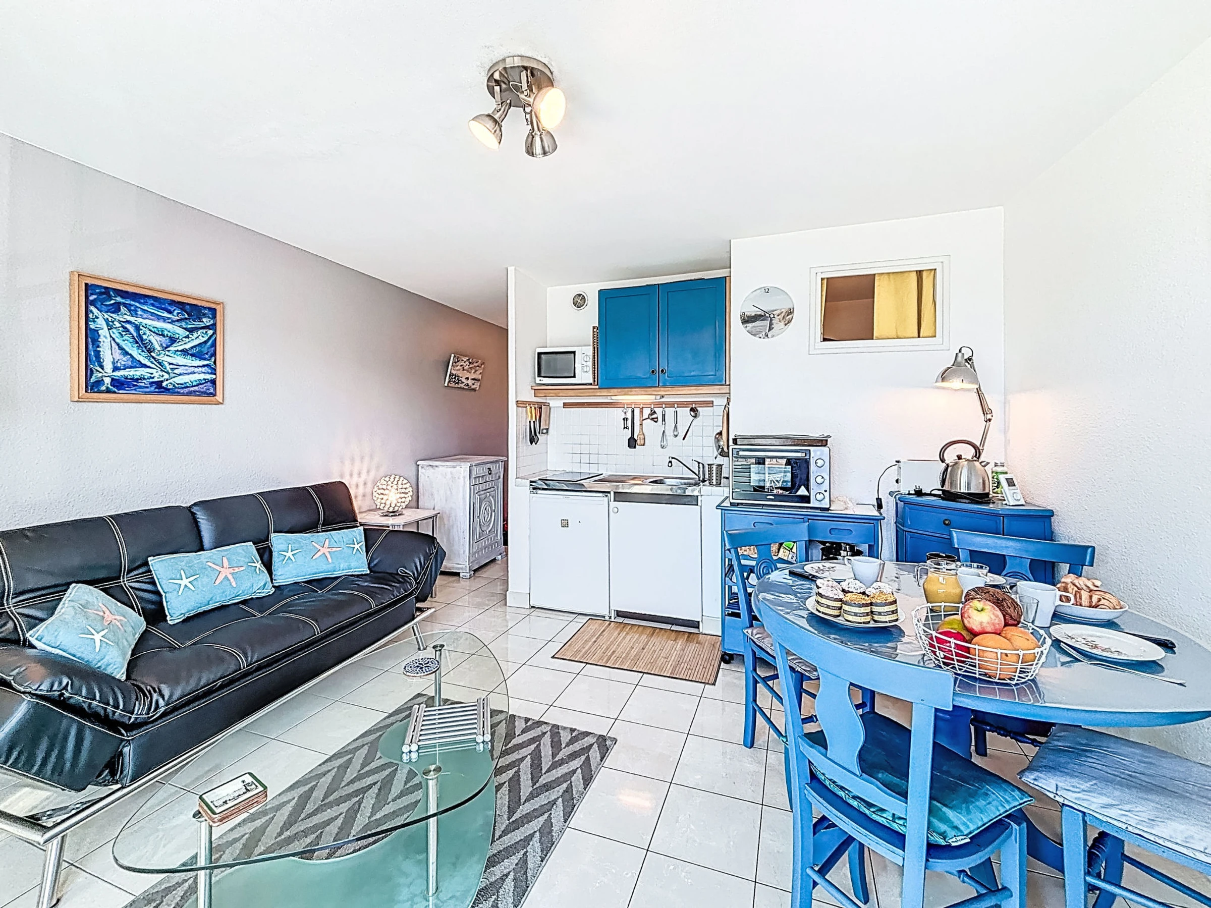 "Appartement La Frégate", studio 2 pièces 35 m2. Aménagement confortable: séjour/salle à manger avec 1 divan-lit (140 cm, longueur 190 cm), TV (écran plat). Cabine avec 1 lit (120 cm, longueur 190 cm). Cuisine (2 plaques de cuisson, four, grille-pain, micro-ondes, cafetière électrique). Bain/WC. Chauffage électrique. Vue sur la mer. A disposition: lave-linge. Veuillez noter: logement non-fumeur. Détecteur de fumée. Annonce d'un particulier (art 155, IV du CGI). [hidden]