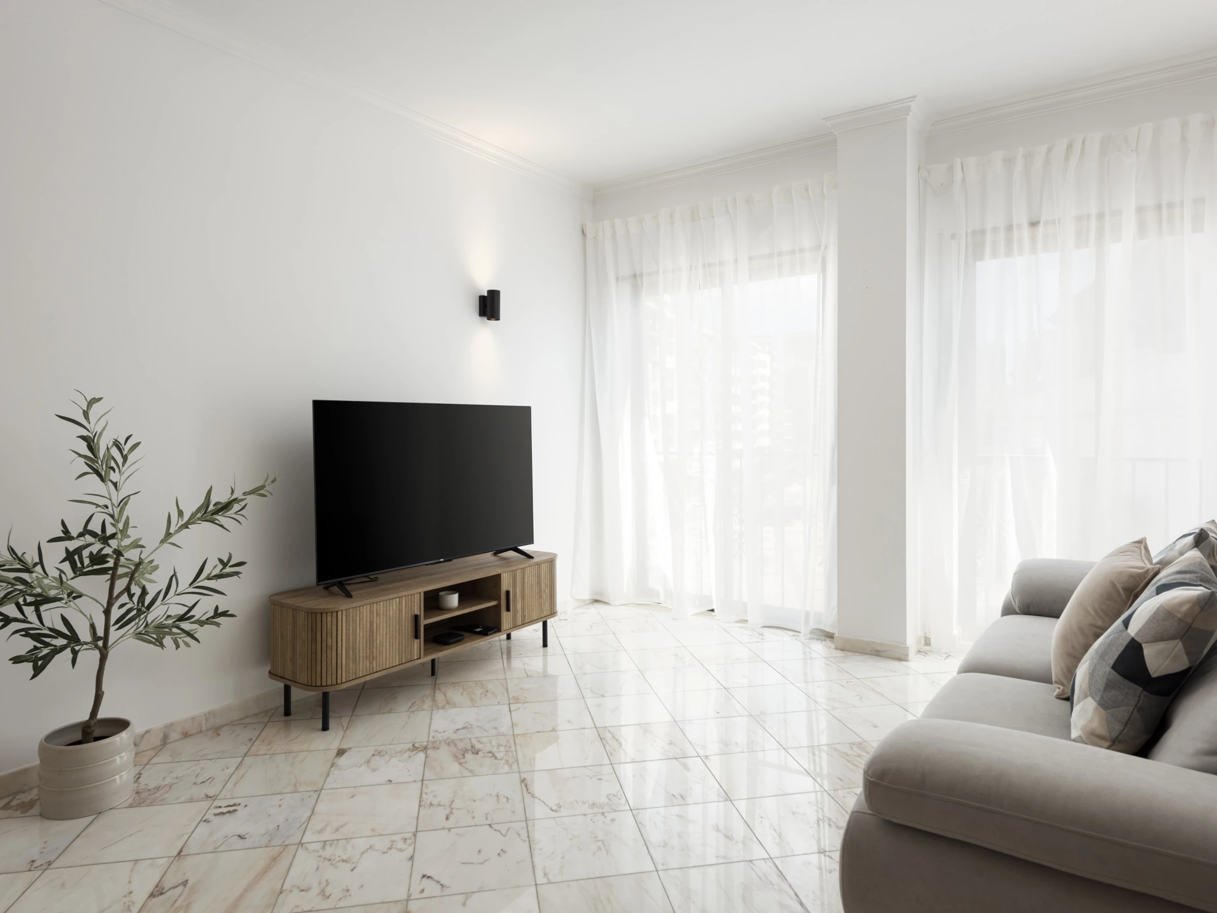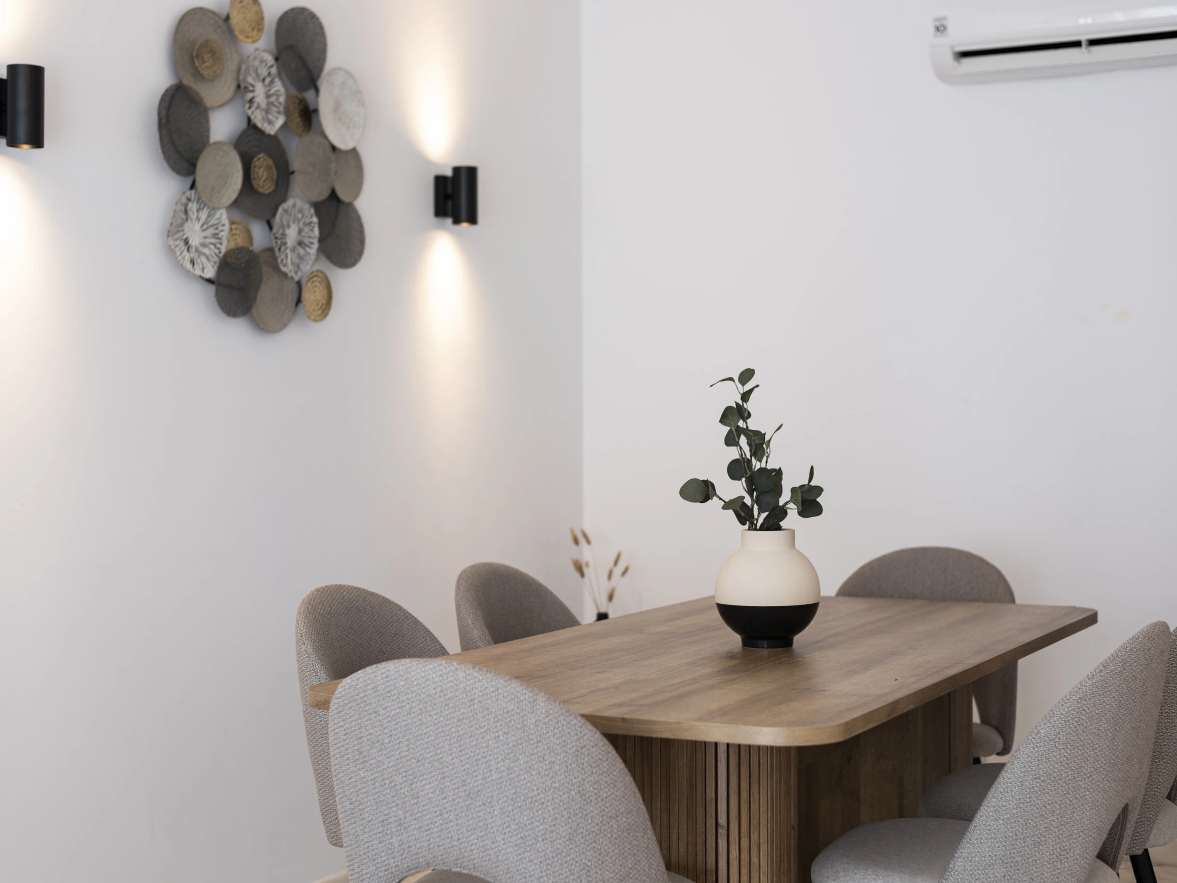 L'appartement dispose de 3 chambres confortables, comprenant 2 lits doubles et 2 lits simples, garantissant un repos paisible pour tous les invités. Le salon est équipé de la climatisation, créant une ambiance agréable même lors des journées les plus chaudes.