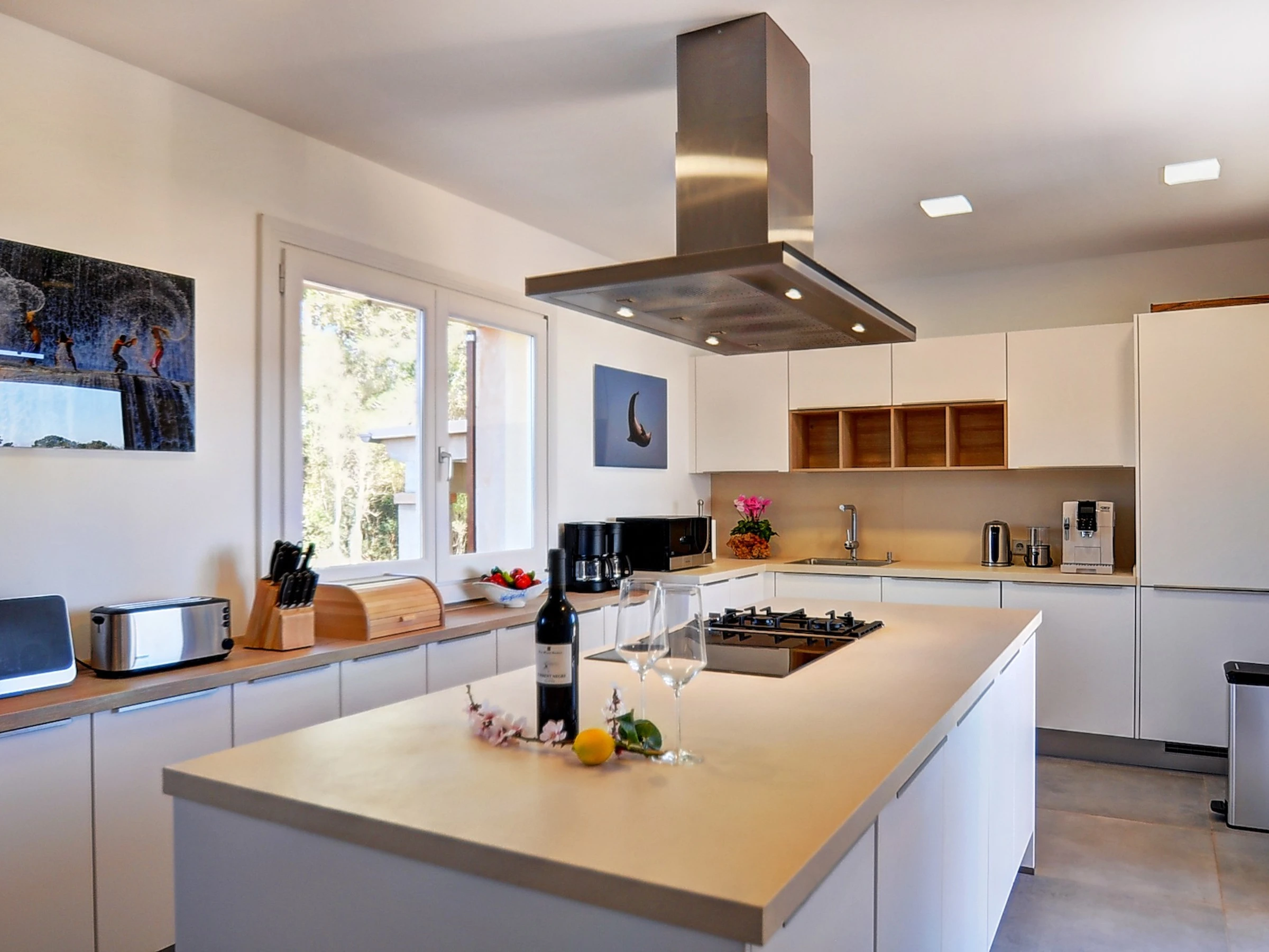 La cuisine, est équipée avec réfrigérateur, four, congélateur, lave-vaisselle et cafetière.