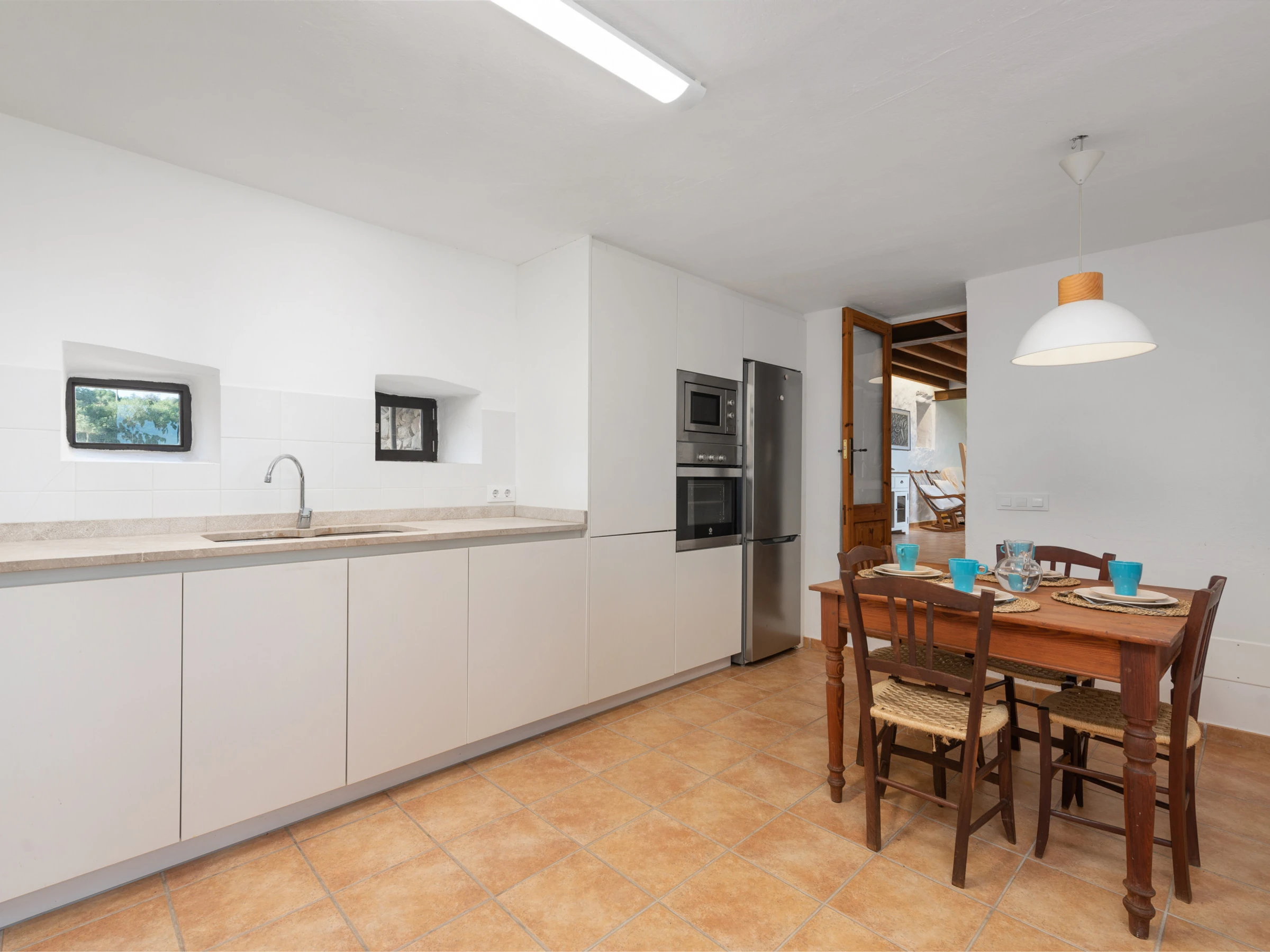 La cuisine, est équipée avec micro-ondes, congélateur, lave-vaisselle, cafetière et grille pain.