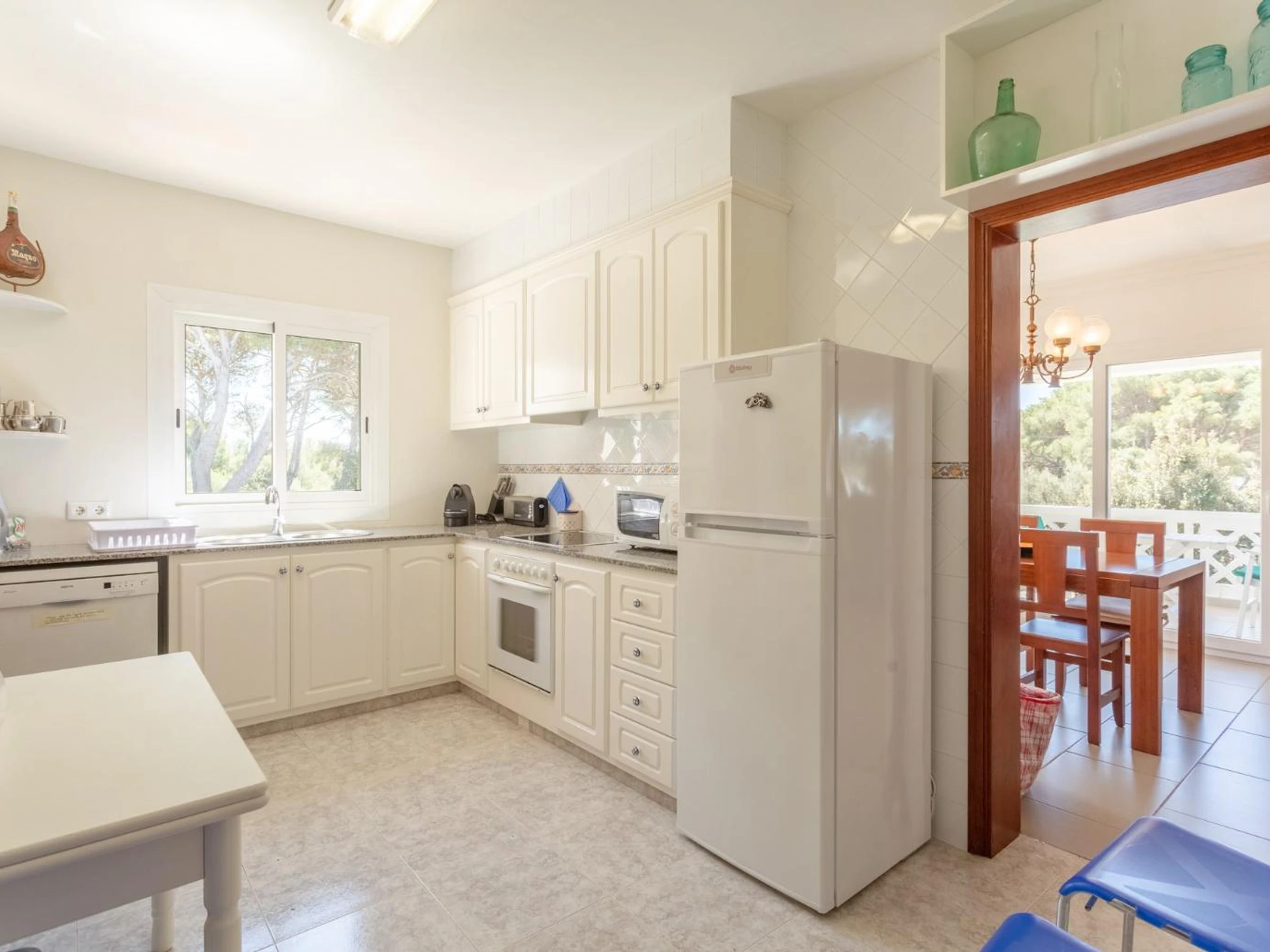 La cuisine, est équipée avec réfrigérateur, micro-ondes, four, congélateur, lave-vaisselle, cafetière et grille pain.